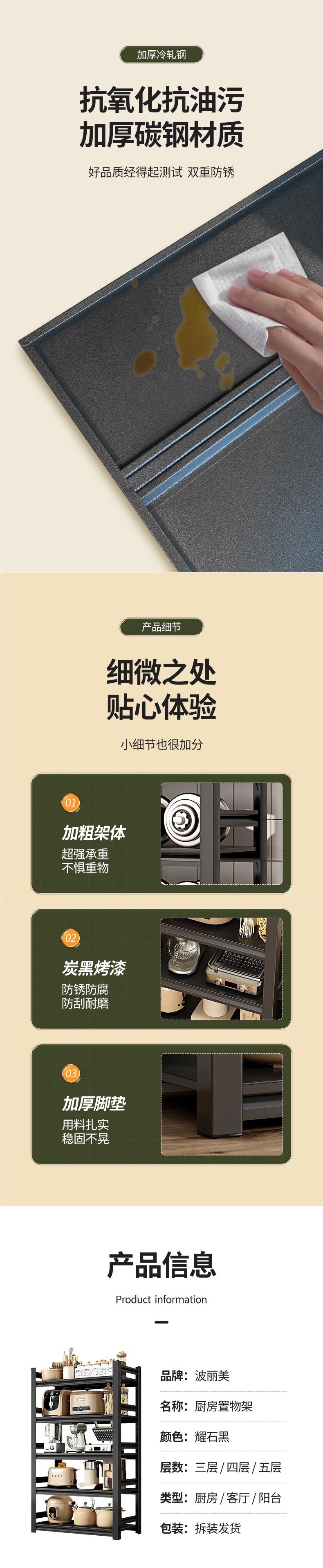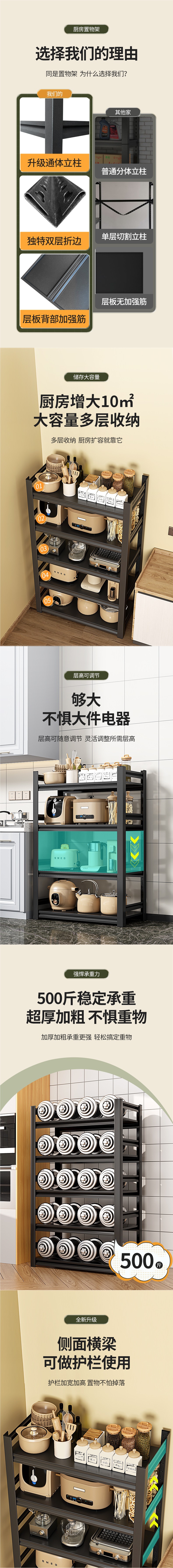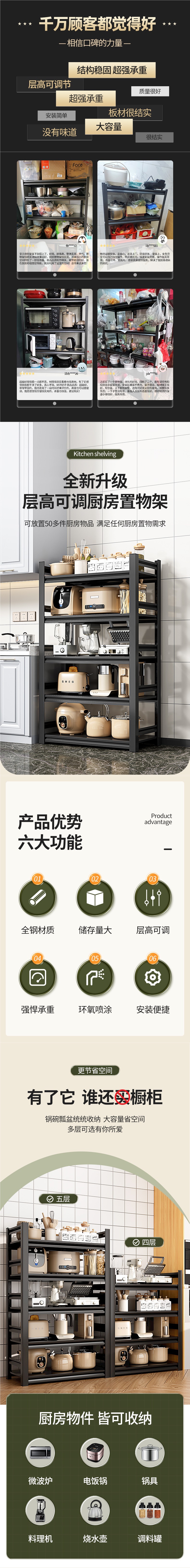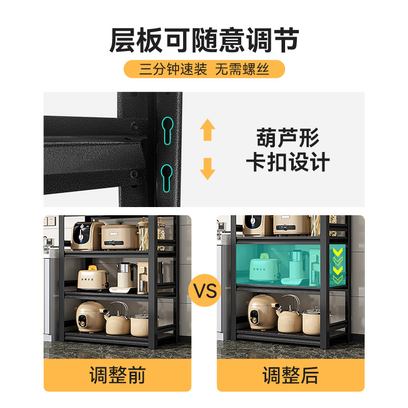 Polimei 주방 선반 바닥에서 천장까지 다층 다기능 보관 냄비 랙 가정용 선반 오븐 전자 레인지 금속