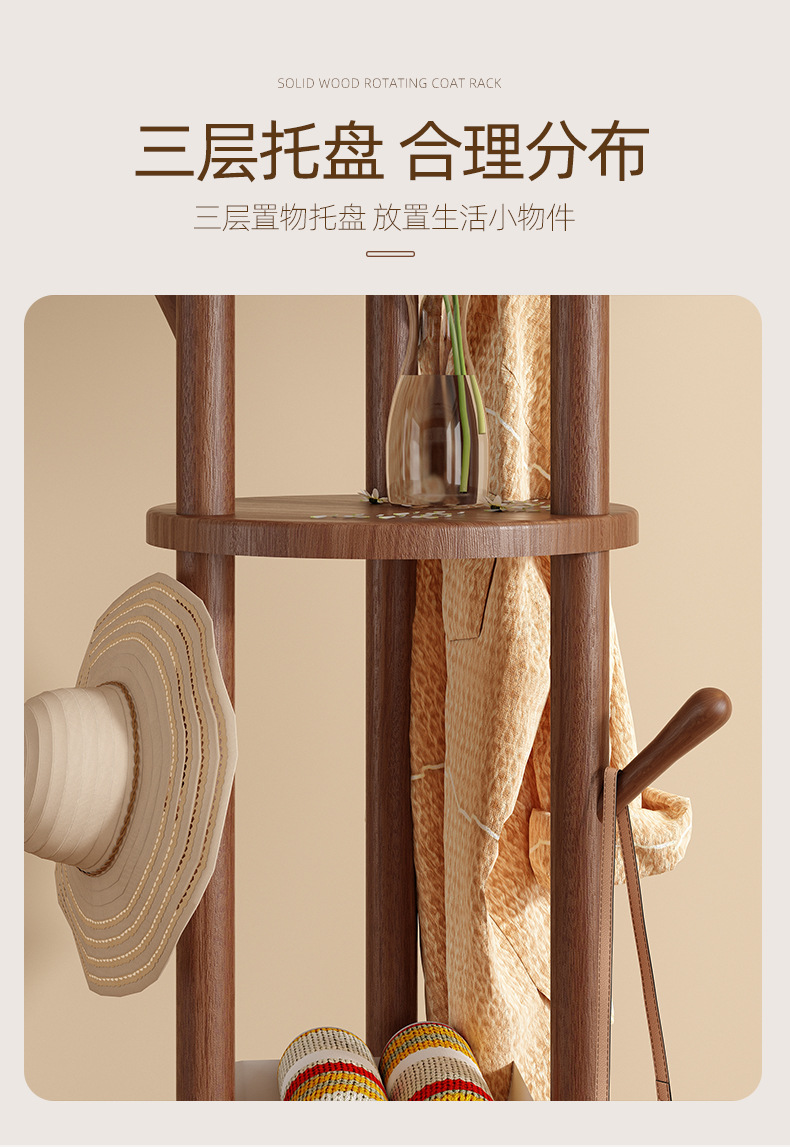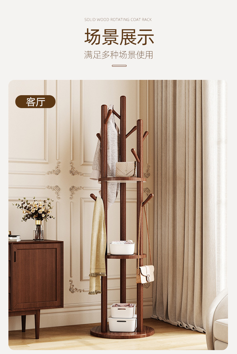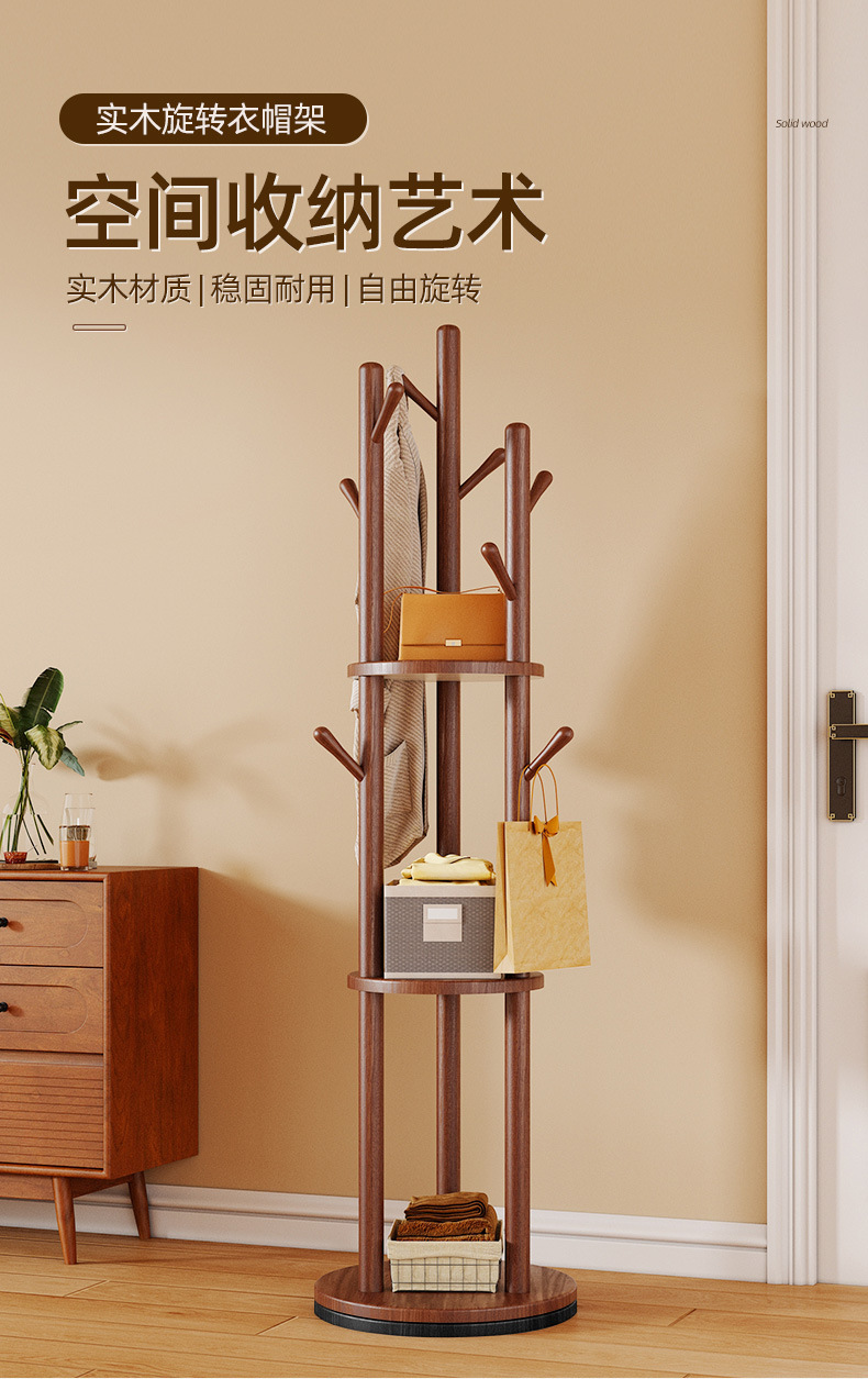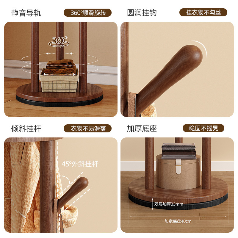 단단한 나무 회전 코트 랙 바닥 걸이 침실 가구 저장 랙 수직 옷 선반 거실 옷걸이