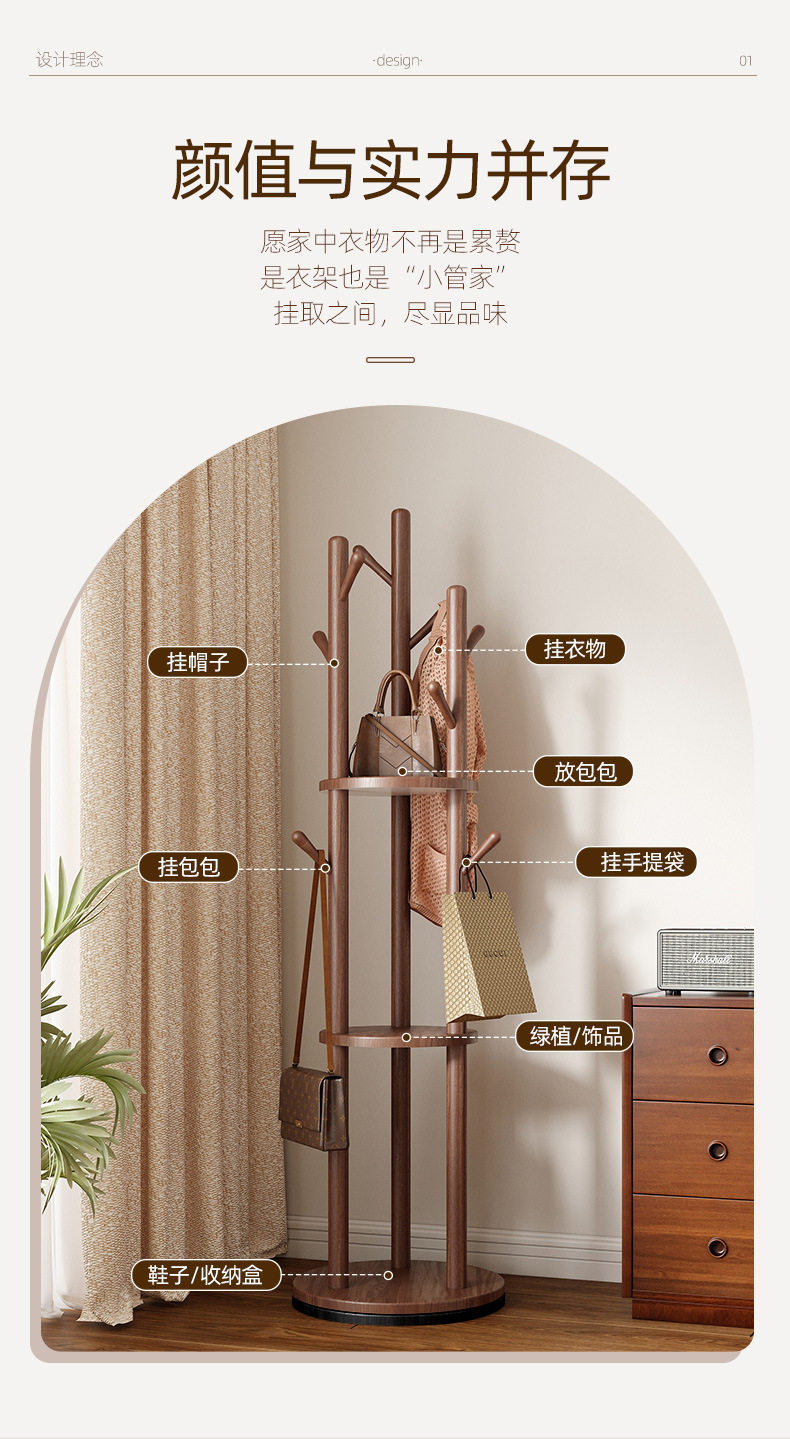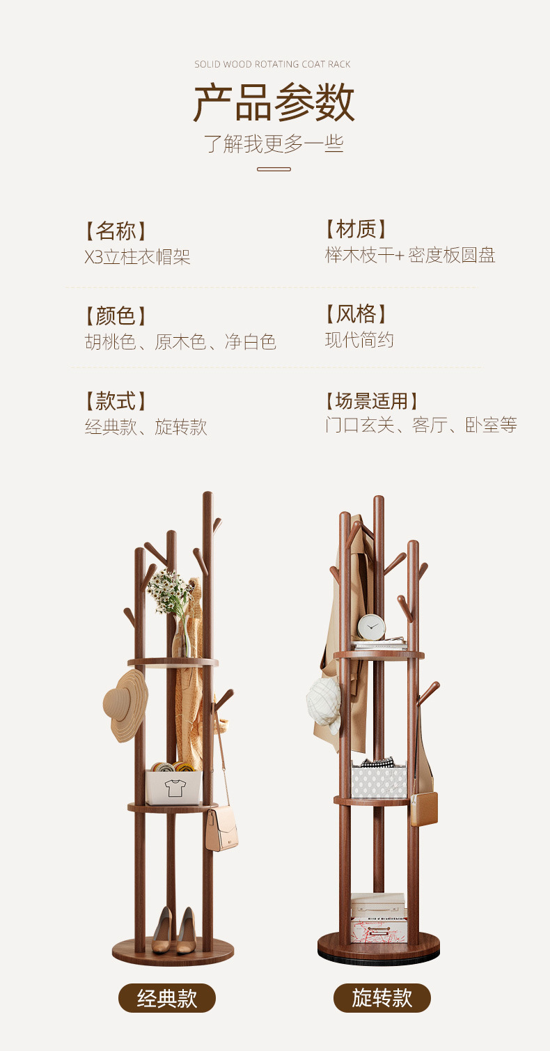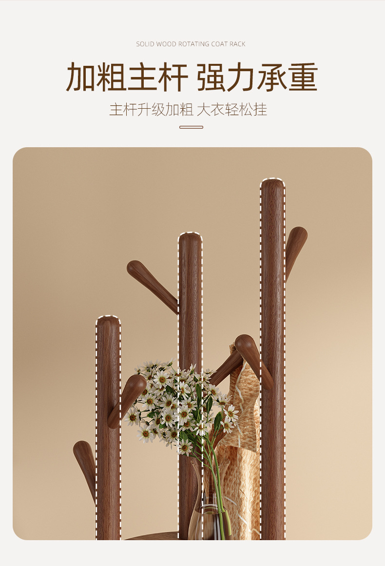 단단한 나무 회전 코트 랙 바닥 걸이 침실 가구 저장 랙 수직 옷 선반 거실 옷걸이