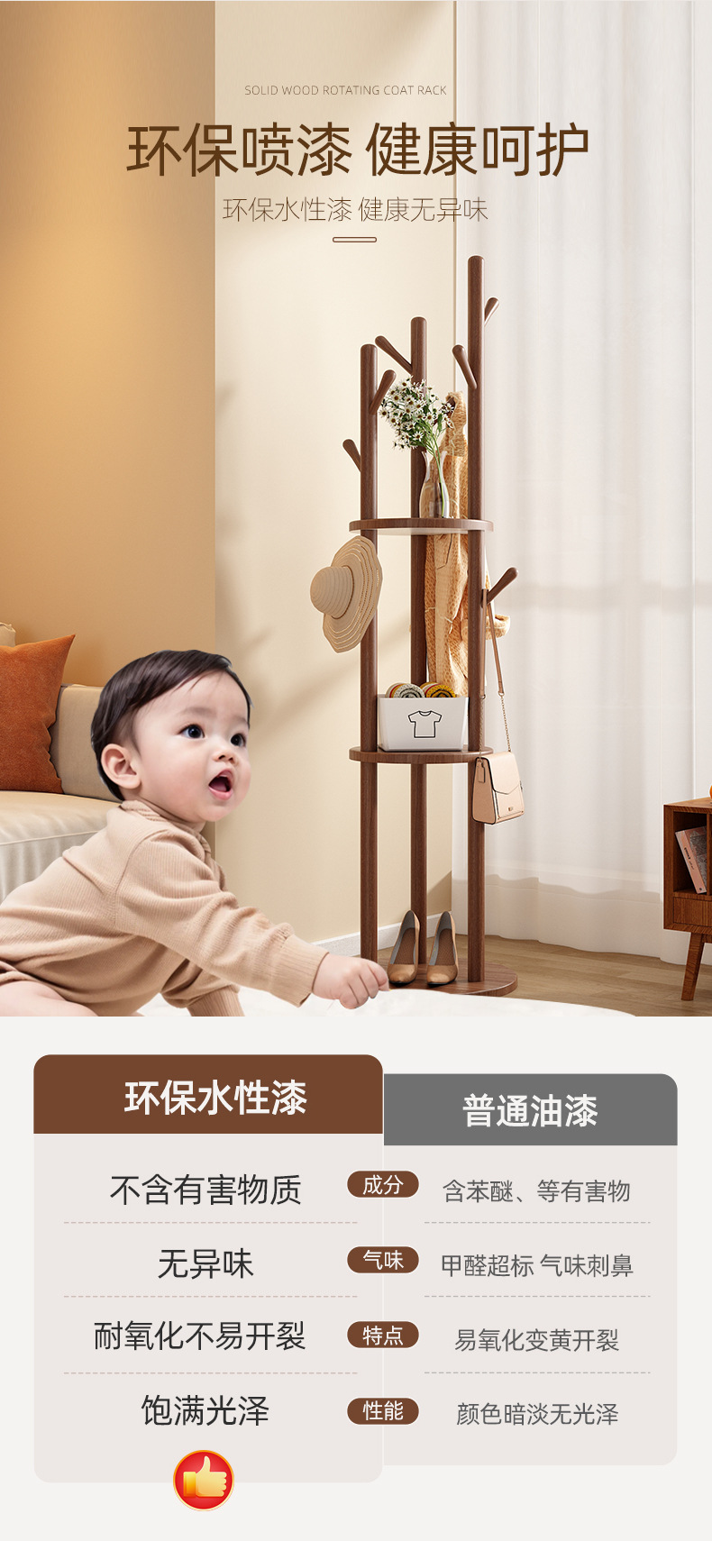 [업그레이드된 회전 모델] 호두색 [수입 너도밤나무, 안정적이고 흔들림이 두렵지 않음]