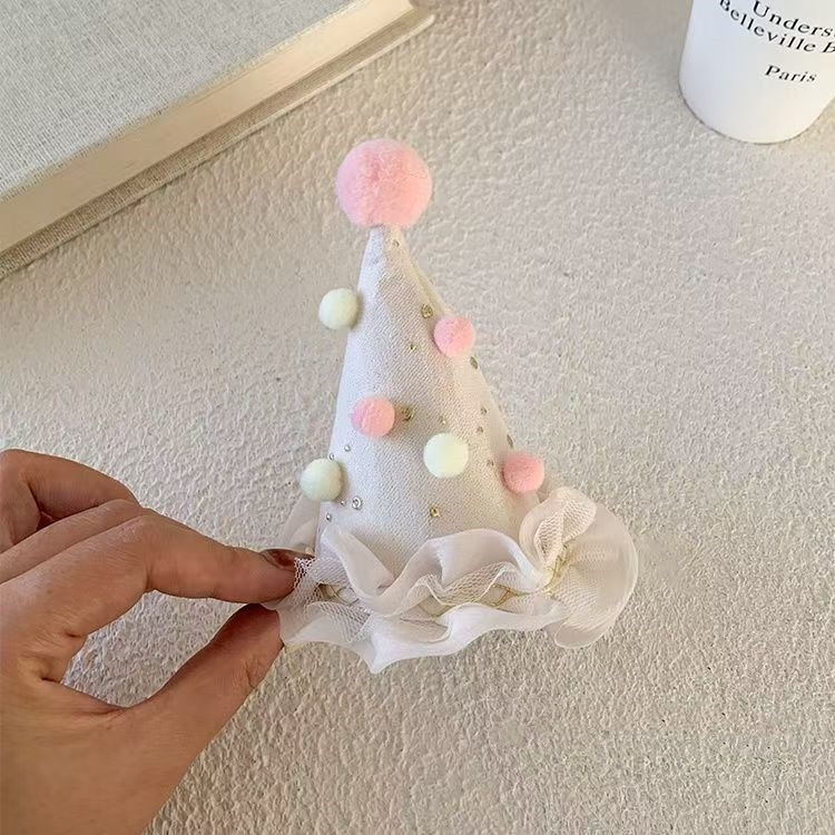 한국 귀여운 활 생일 모자 헤어핀 여성 홀리데이 파티 케이크 모자 뱅 클립 사진 헤어 액세서리