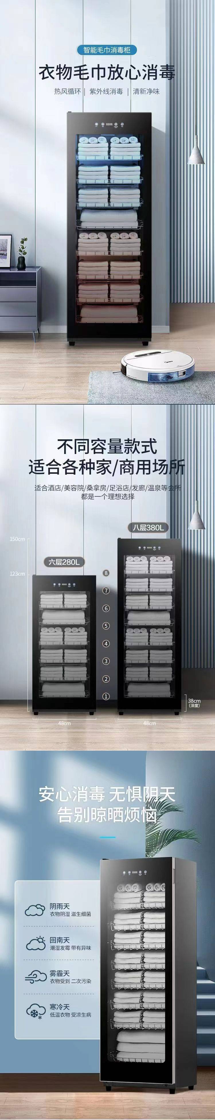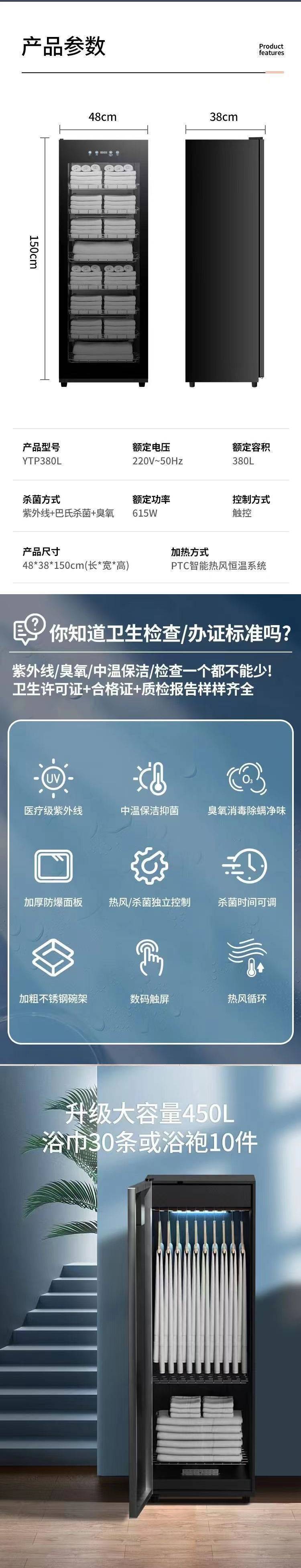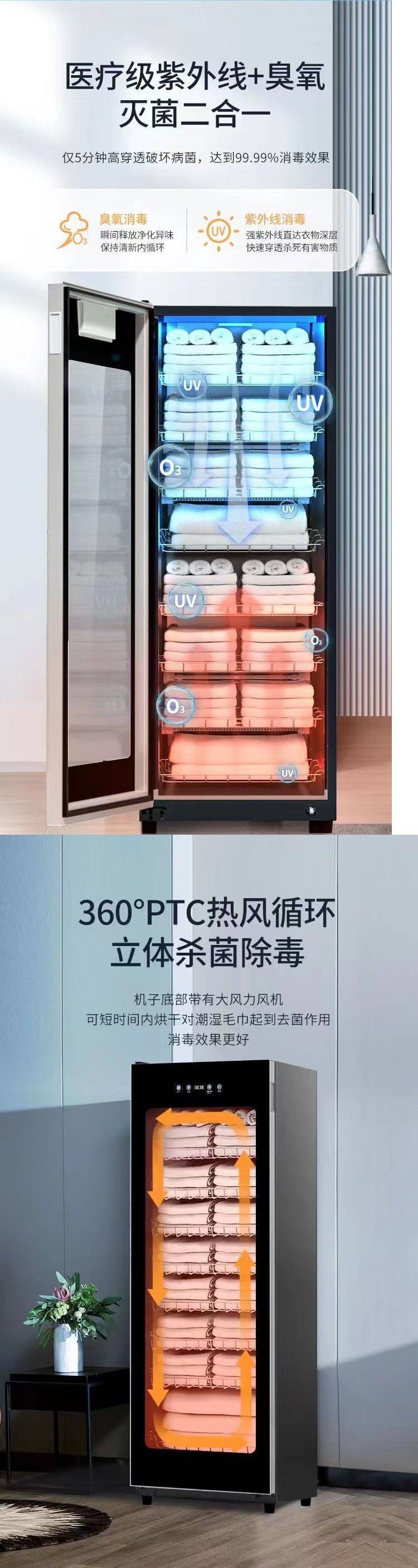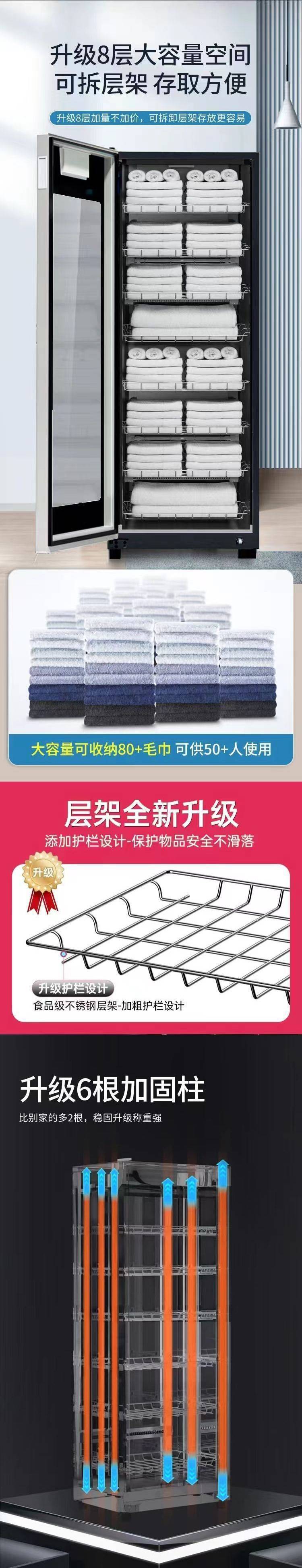 미용실용 수직 수건 소독 및 소독 캐비닛, 대용량 호텔 상업용 슬리퍼, UV 건조 및 살균