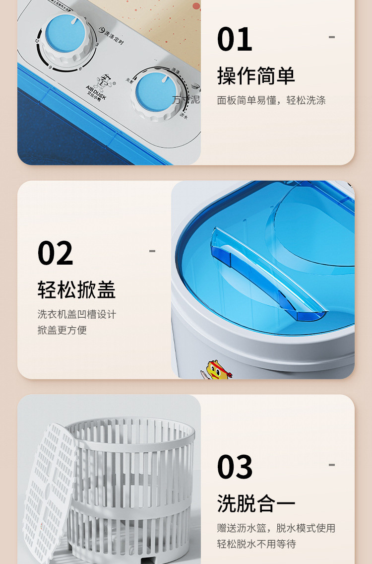 4.5kg 패셔너블한 화이트 - 강력한 세탁 + 블루라이트 물 빼기 --- 독창적인 선택