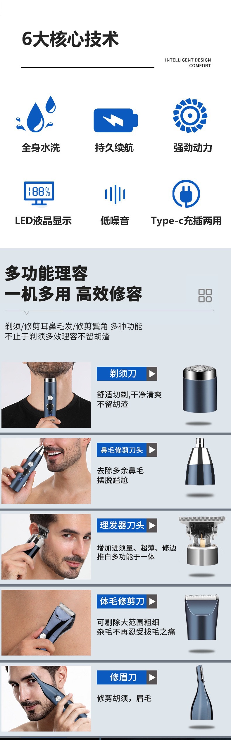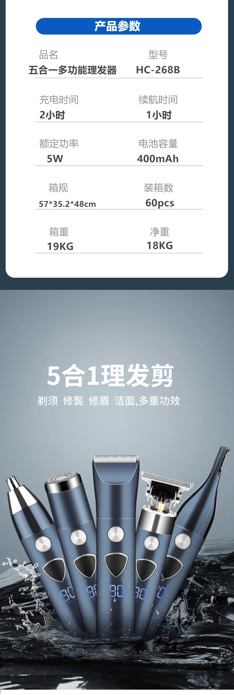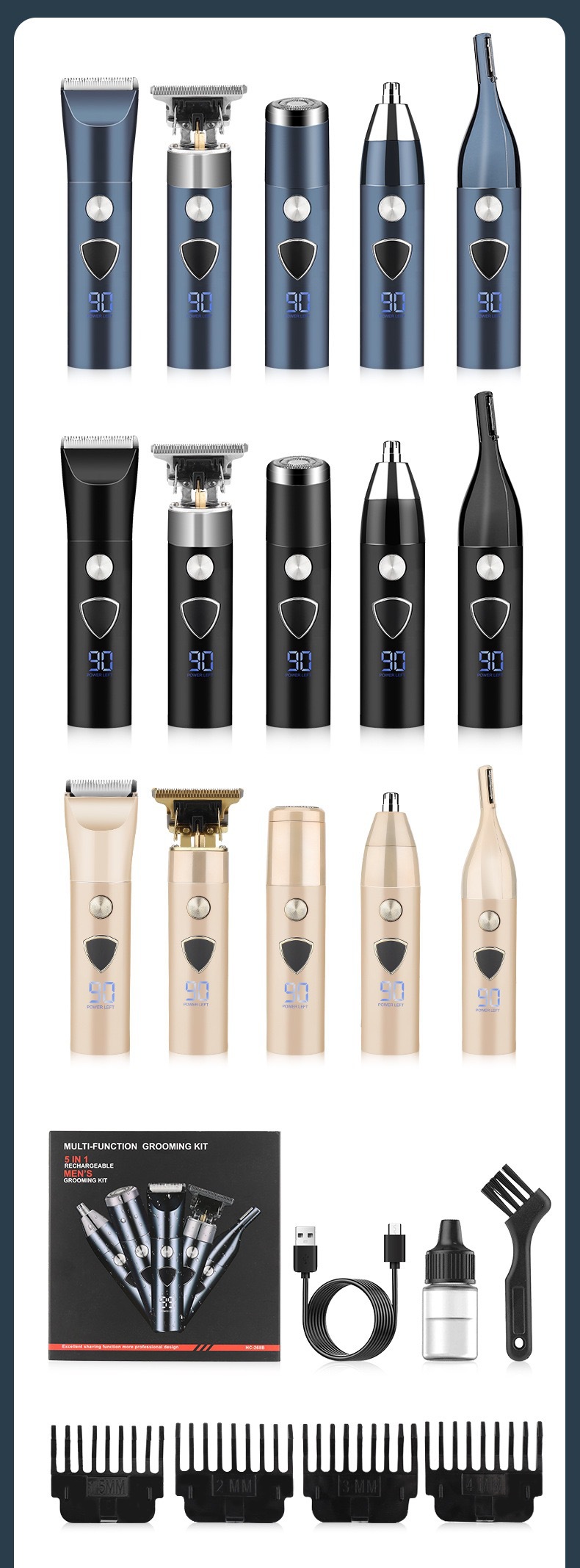 국경을 넘는 새로운 남성용 5-in-1 다기능 머리 깎기 눈썹 트리머 코 머리 면도기 세트 조각 전기 머리 깎기