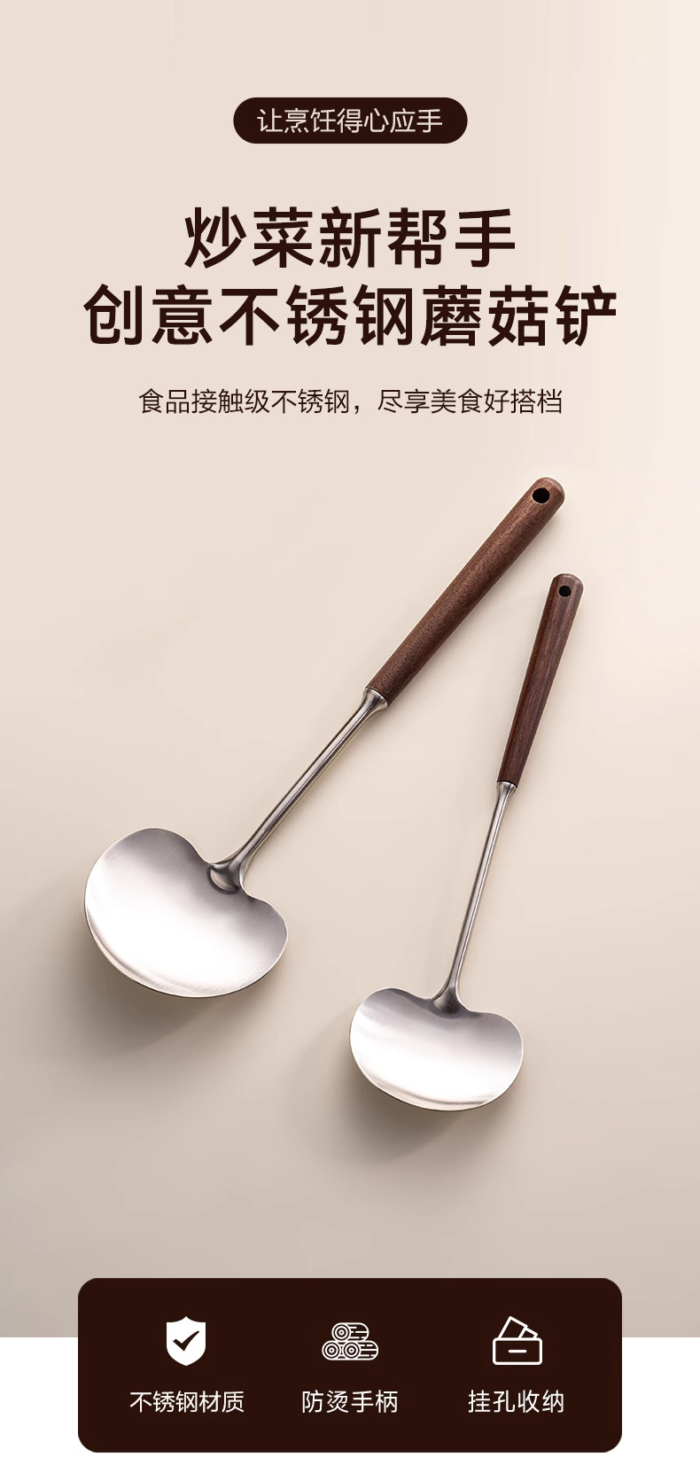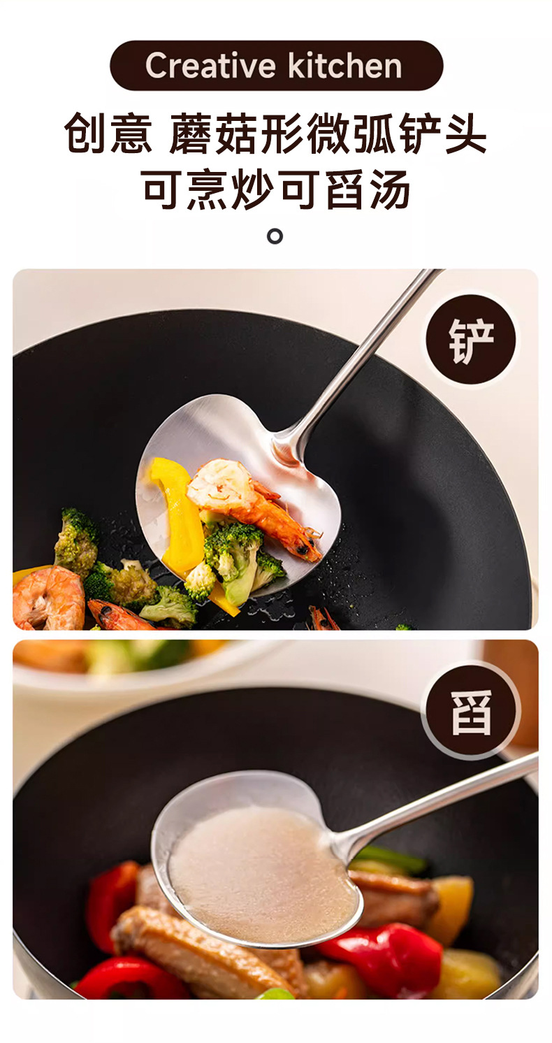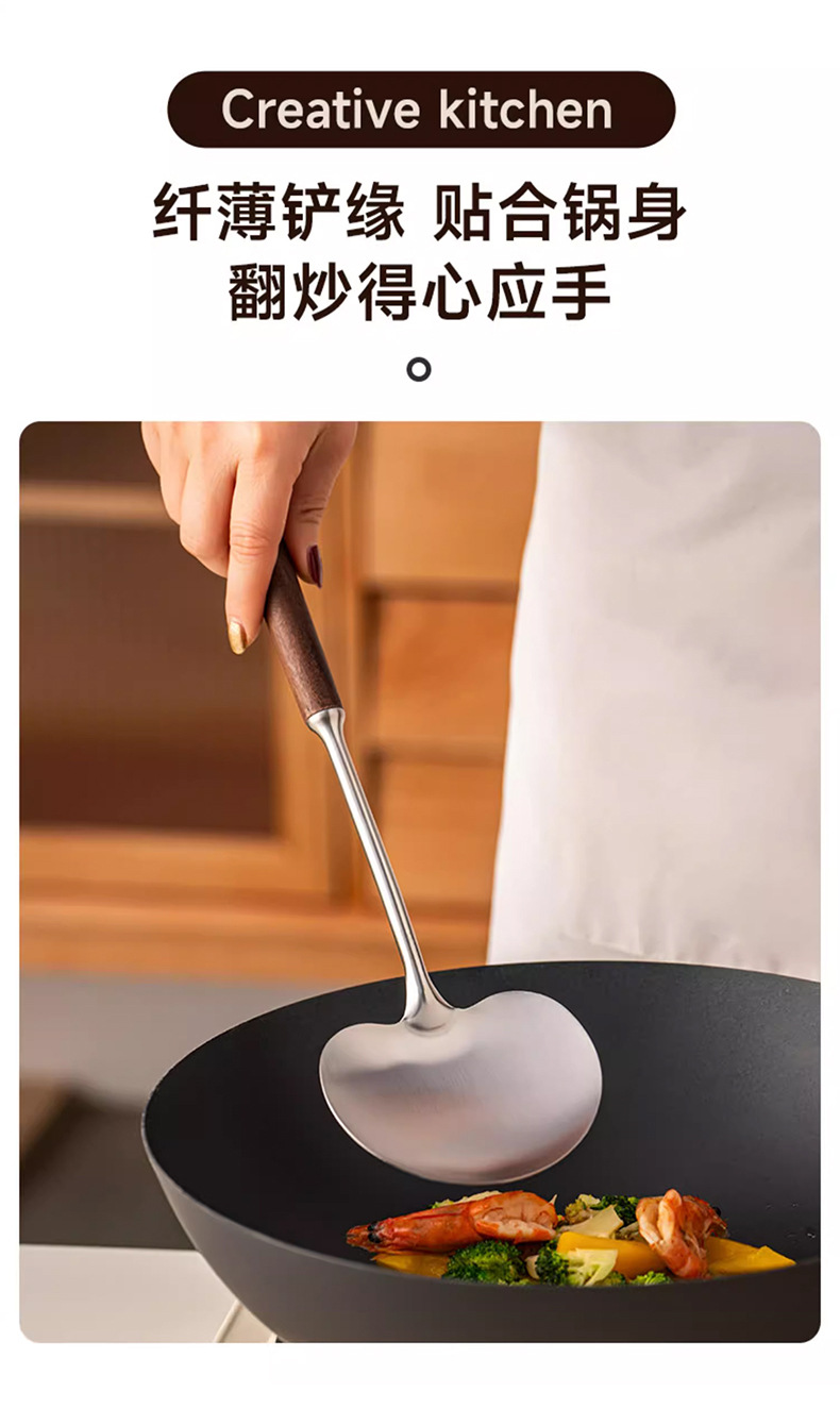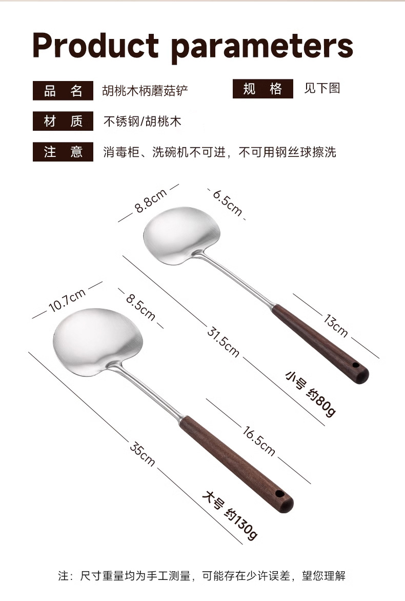 새로운 버섯 삽 호두 철 냄비 삽 가정용 볶음 숟가락 사과 삽 안티 스케일 냄비 삽 요리사 주방 볶음 삽
