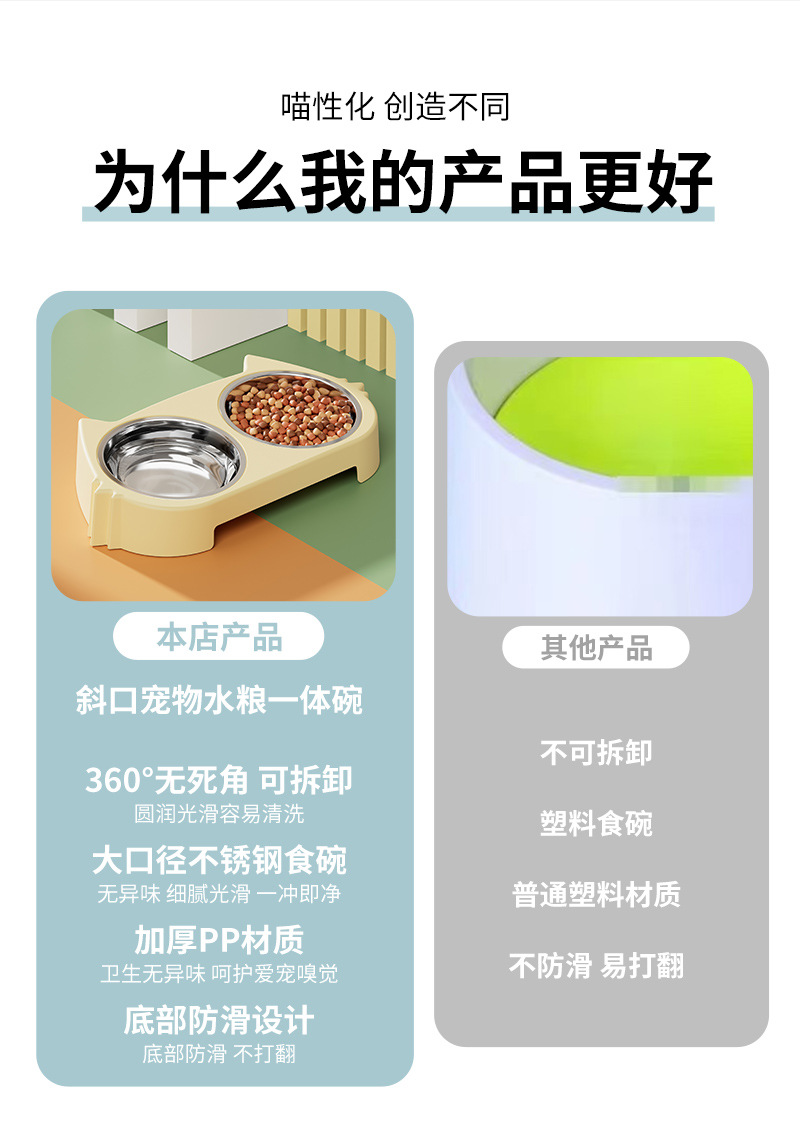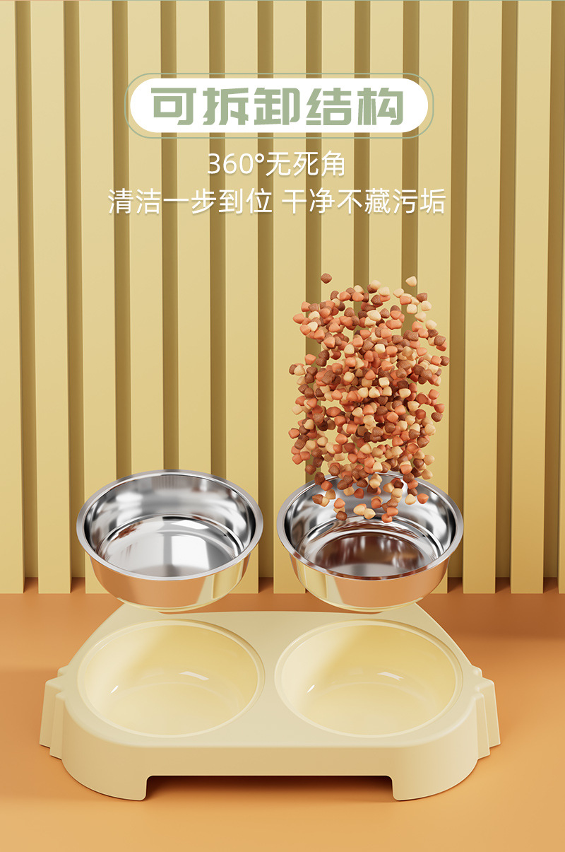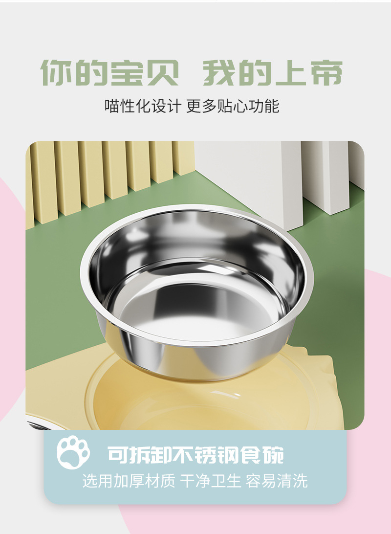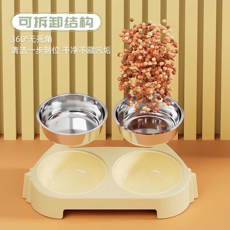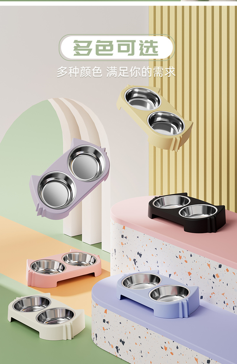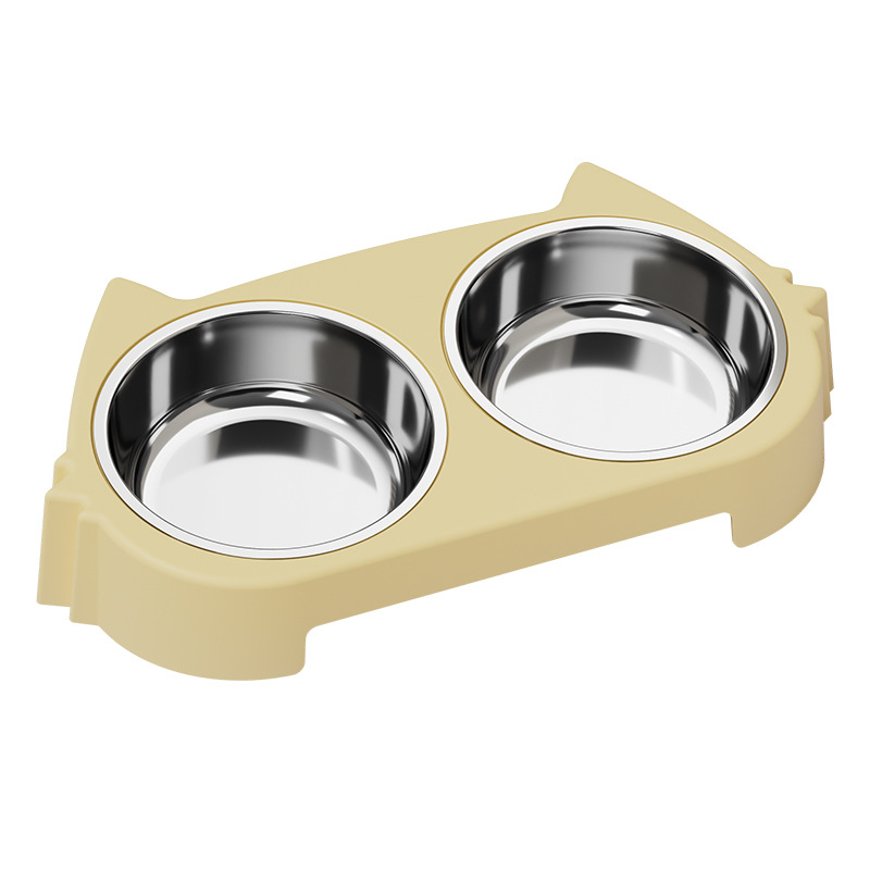 새로운 스테인리스 고양이 그릇, 이중 그릇 일체형 애완동물 그릇, 귀엽고 넘어지지 않는 2-in-1 급식 및 급수 고양이와 강아지 식기