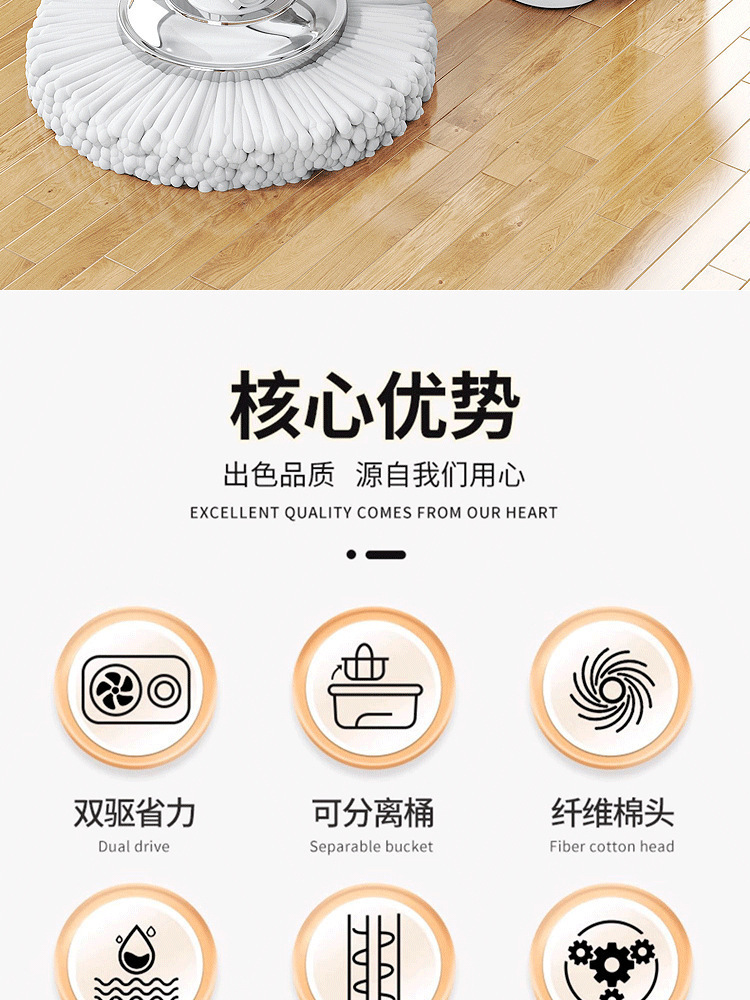 두꺼워진 업그레이드된 가정용 걸레, 버킷이 포함된 핸즈프리 자동 물걸레, 회전식 걸레, 가정용 걸레, 도매