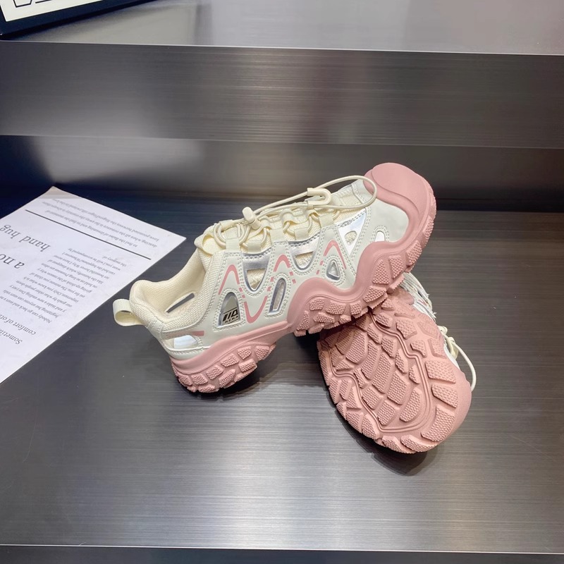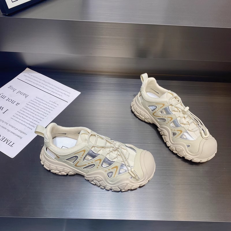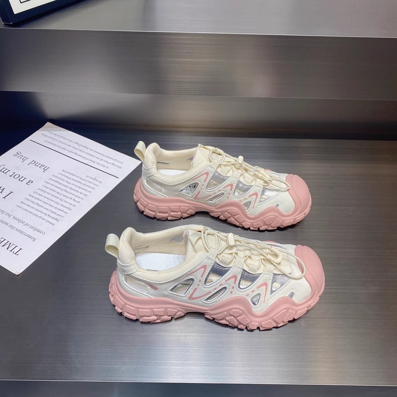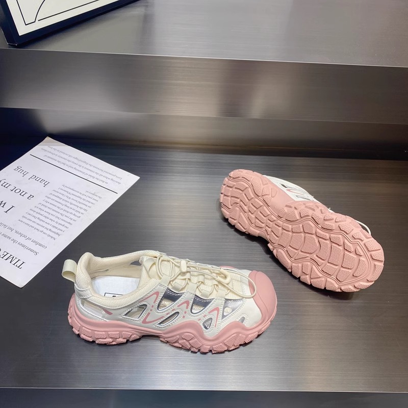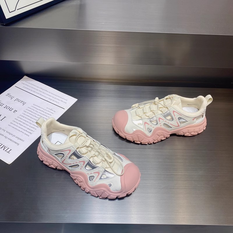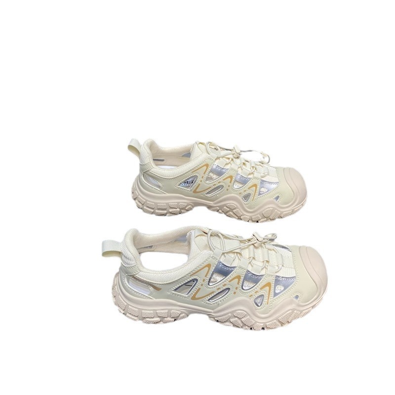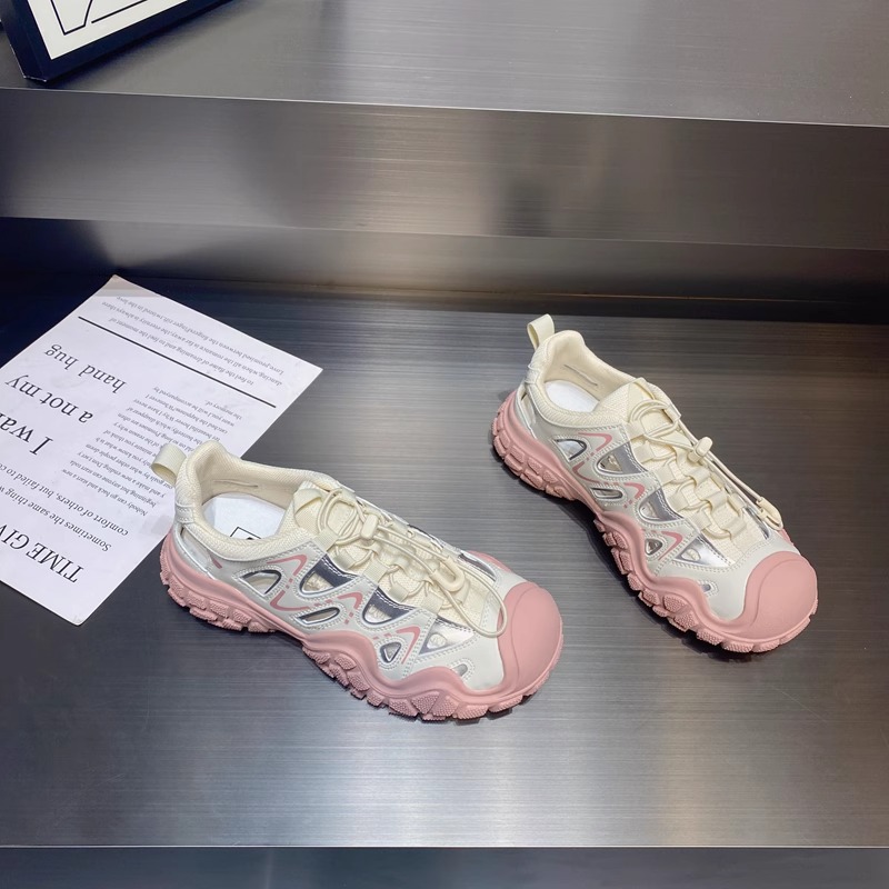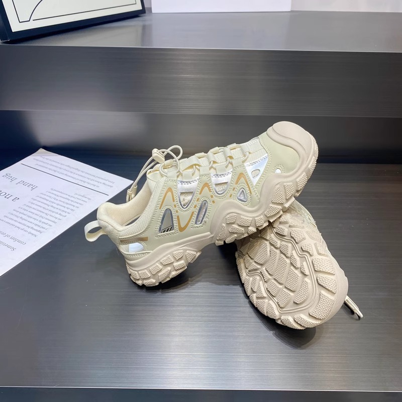 진짜 가죽으로 흰 사슴 못생긴 귀여운 신발 여성 신발 2024 봄 새로운 야외 하이킹 신발 아빠 스포츠 신발