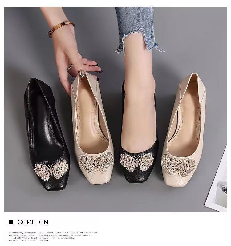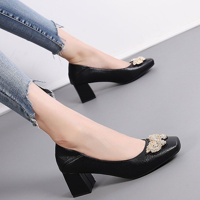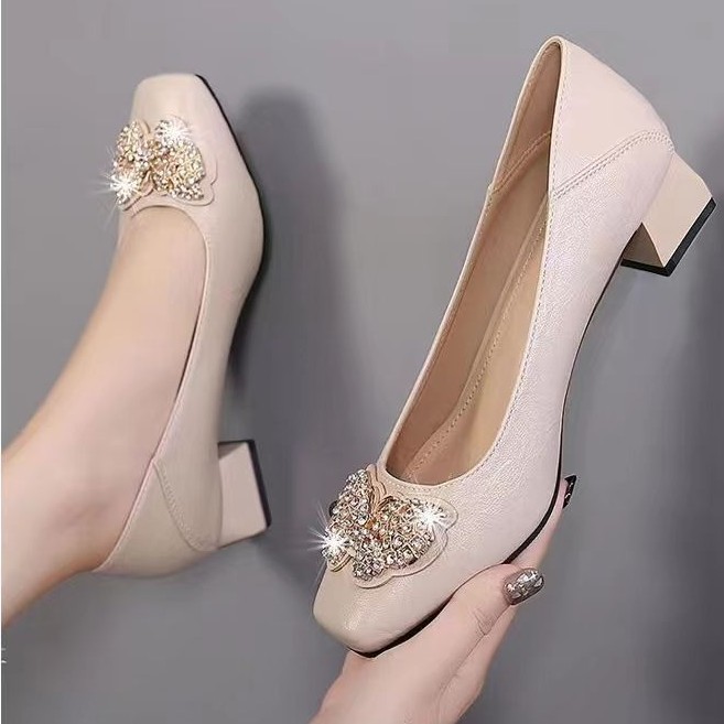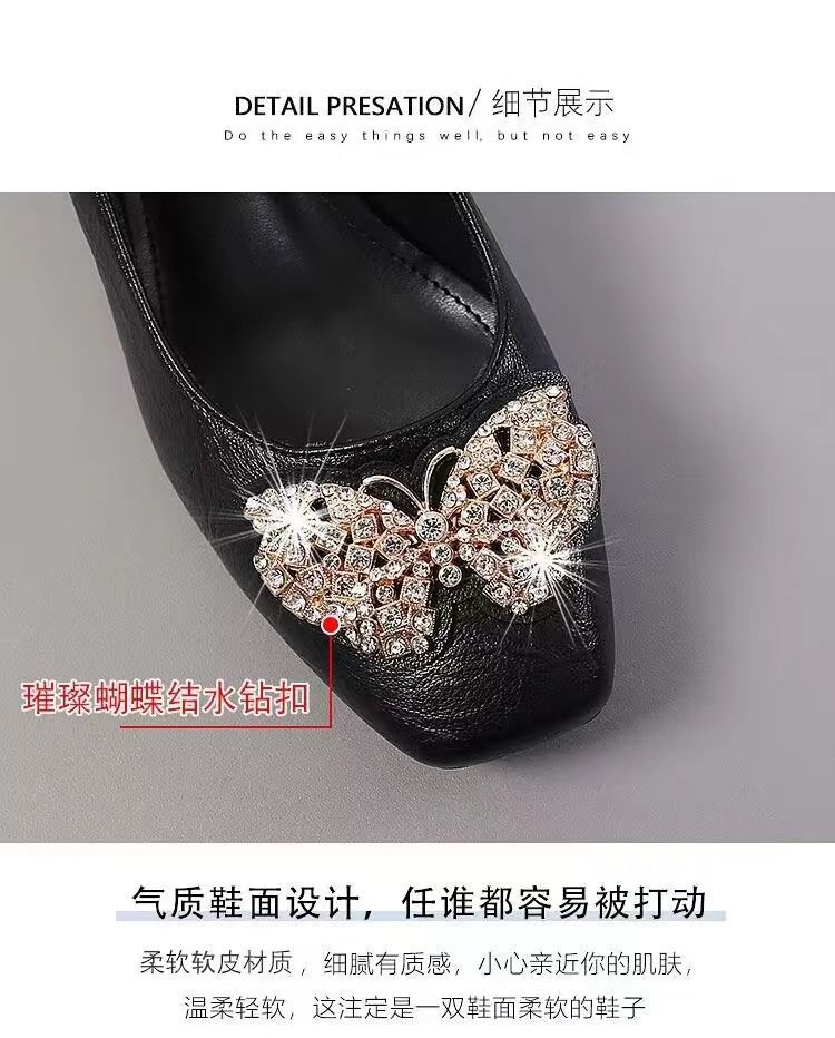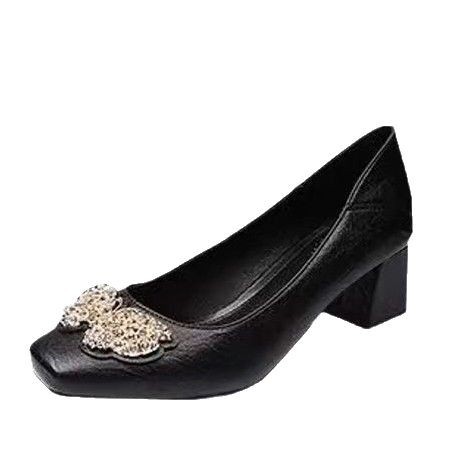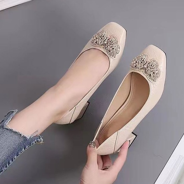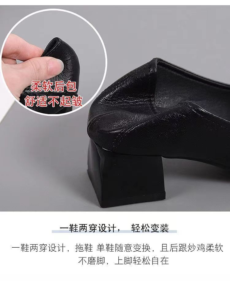 프랑스 스타일 스퀘어 발가락 신발 여성의 2025 년 봄과 가을 새로운 하이힐 여성 두꺼운 힐 얕은 입 가죽 신발 긴 작업 신발