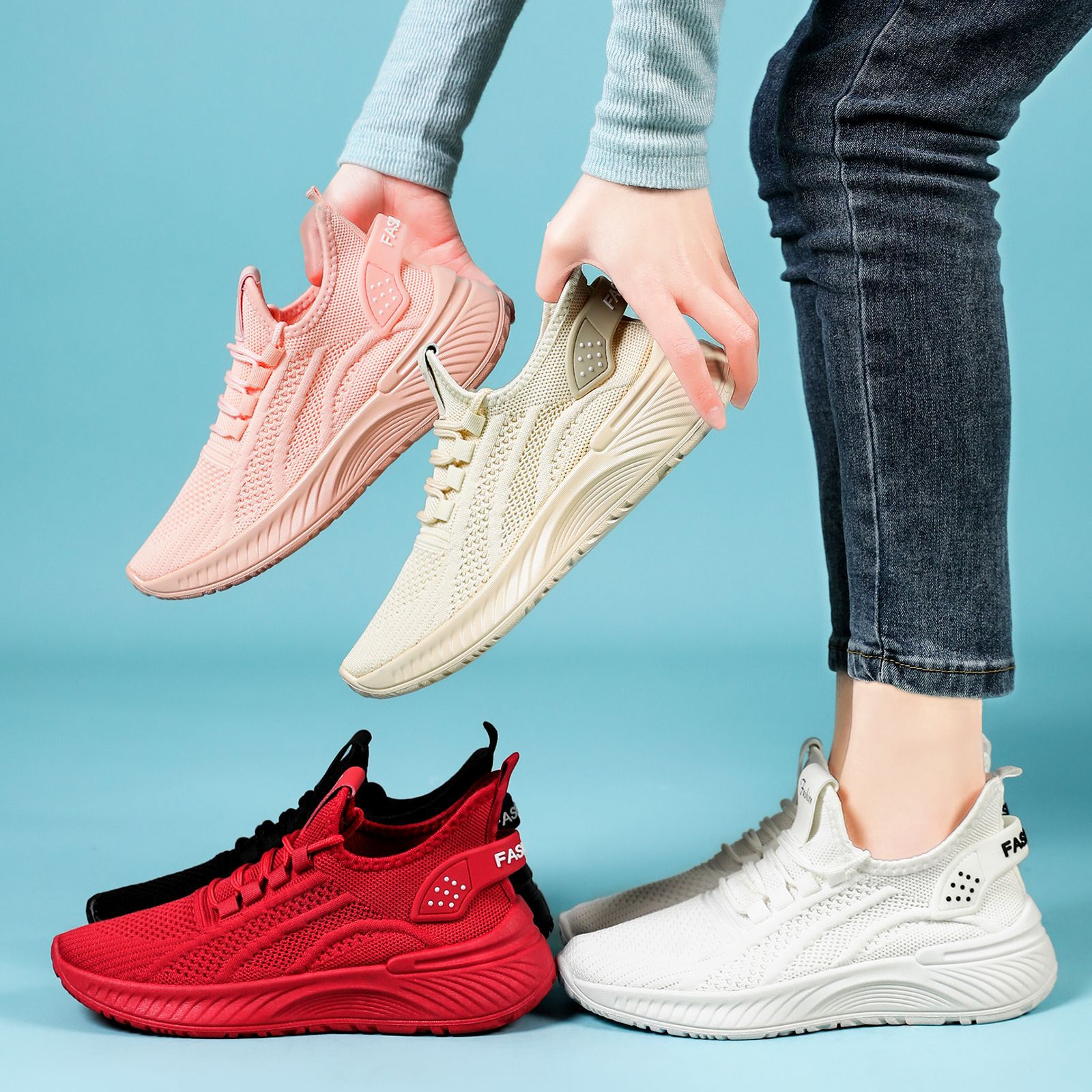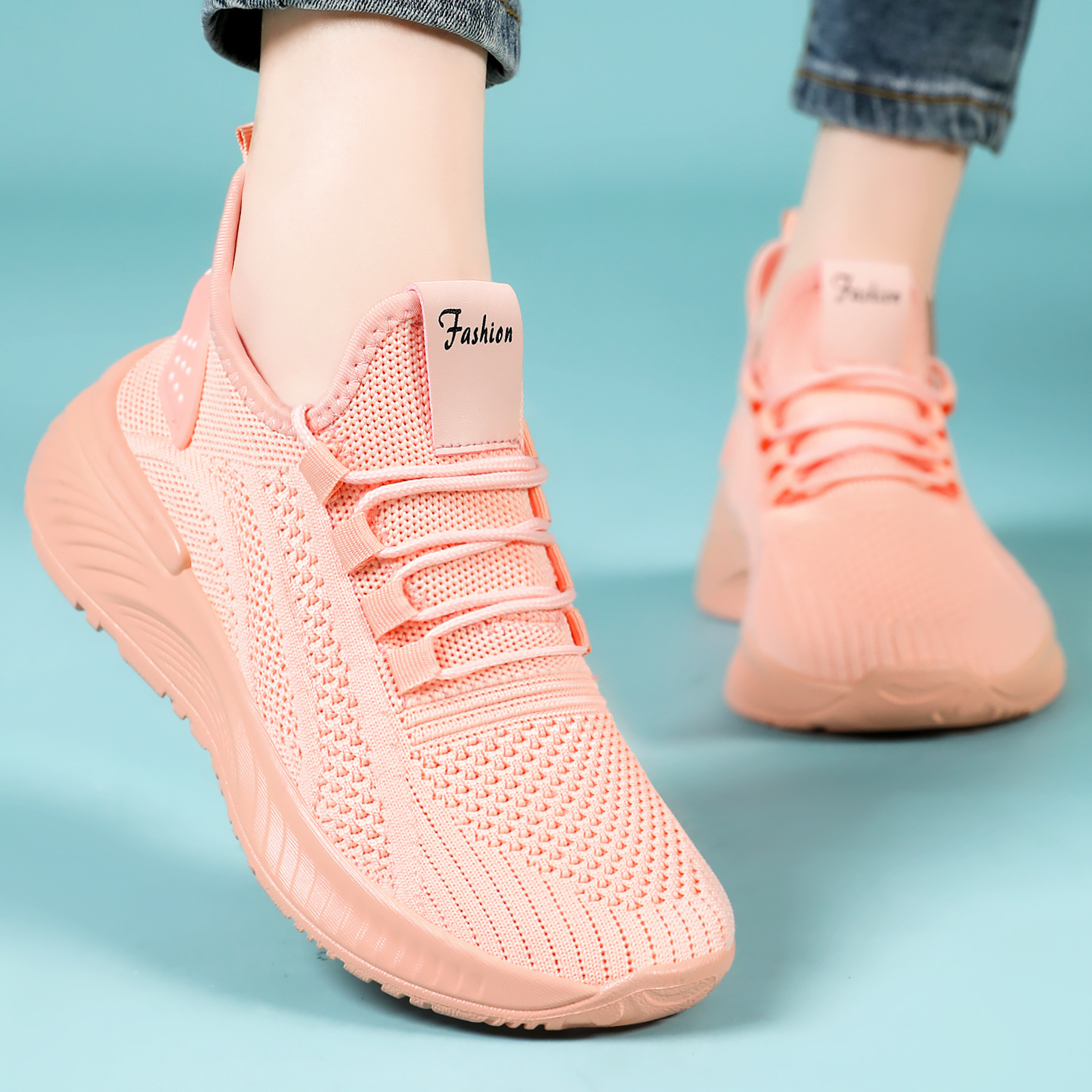 여성용 플라이 니트 봄 운동화, 얕은 입구의 가벼운 런닝화, 통기성과 편안함을 갖춘 메쉬 신발, 다용도 야외 신발