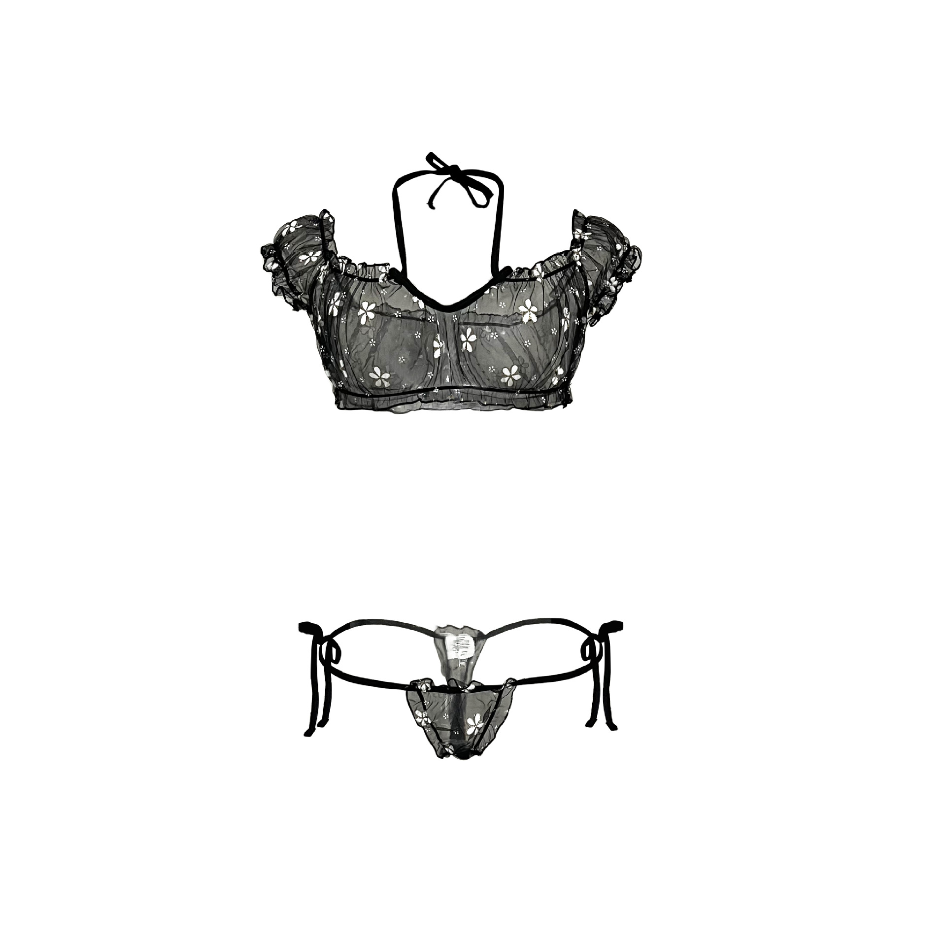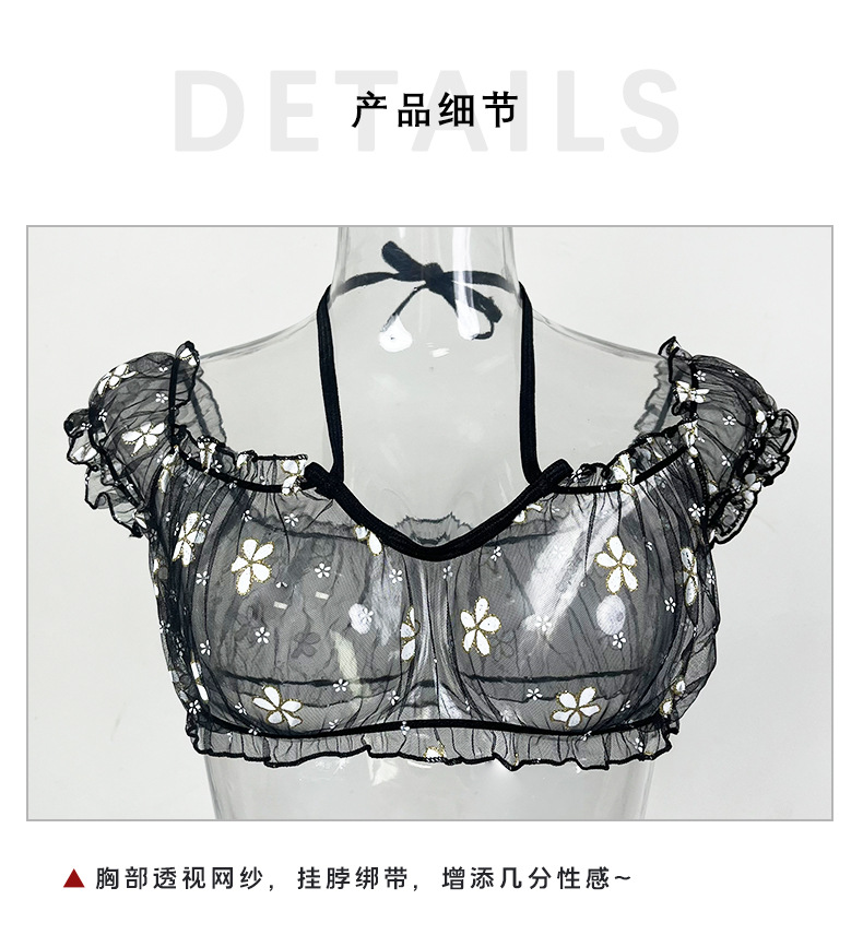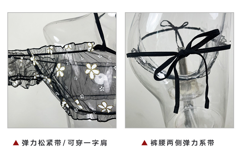 국경을 넘는 섹시한 속옷 세트 여름 원 숄더 튜브 탑 잠옷 여성 꽃 디자인 스트랩 메쉬 026