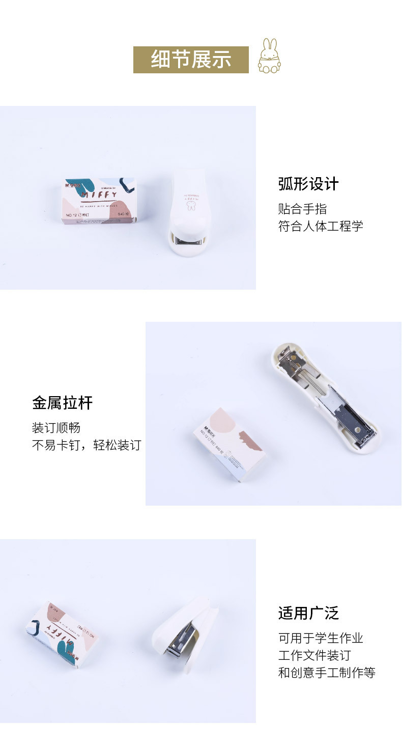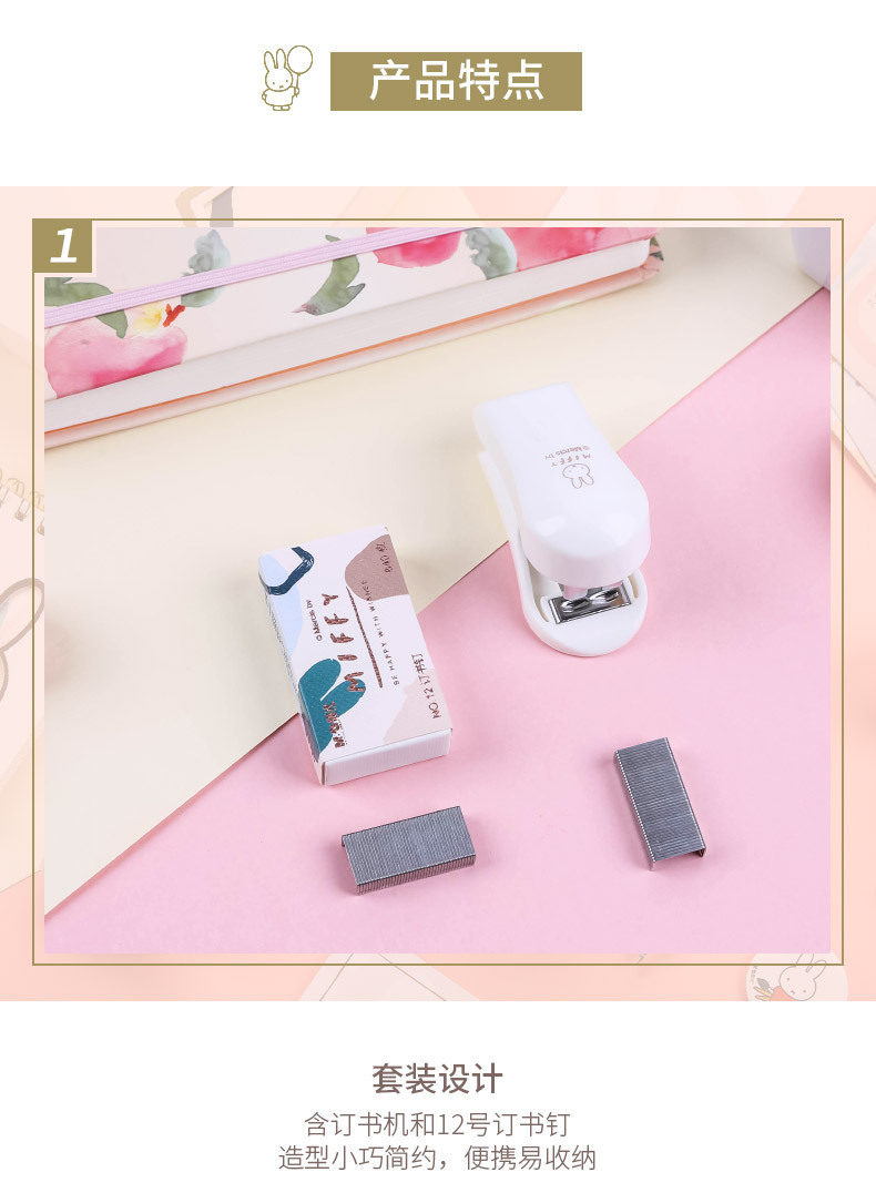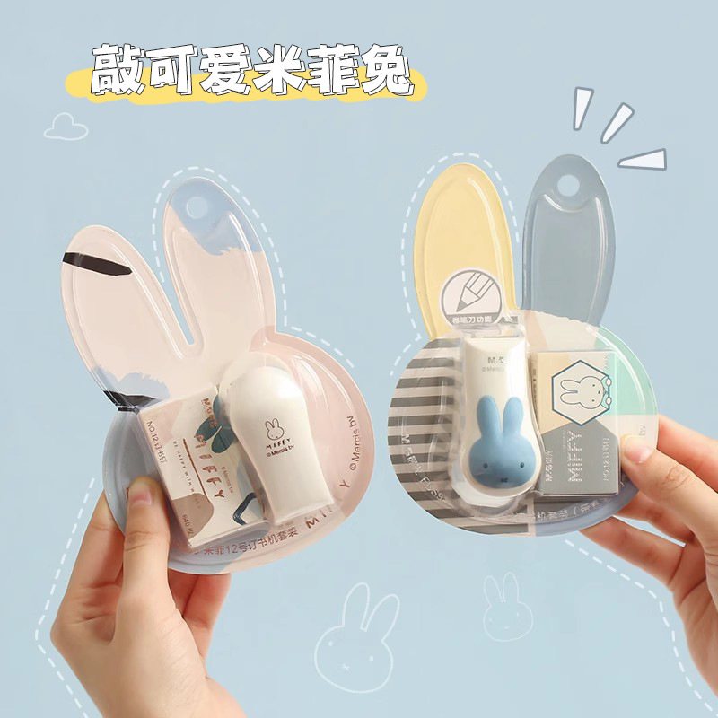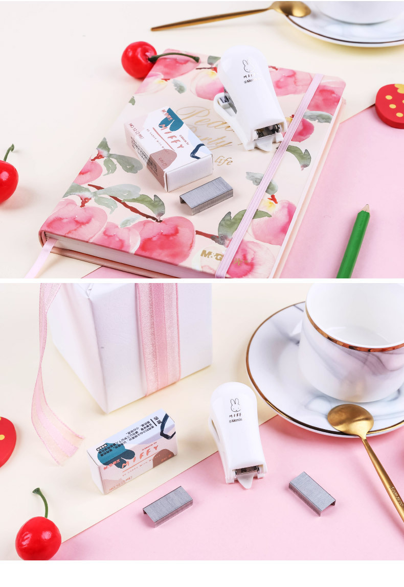 Miffy 시리즈 미니 스테이플러 스테이플 세트 학생 문구 만화 스테이플러 노동 절약형 사무실 바인딩 기계