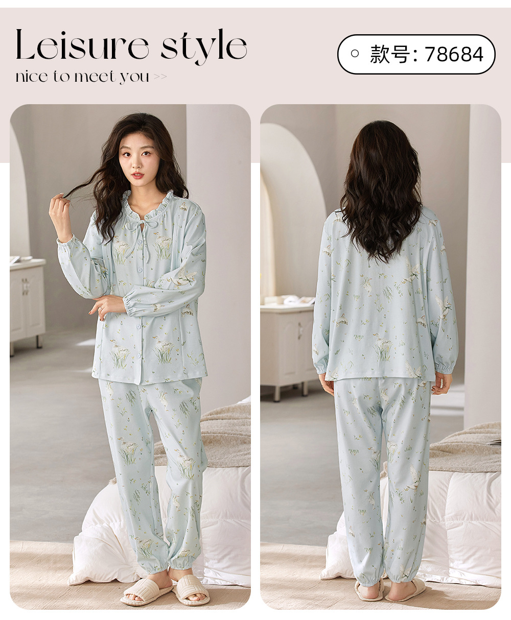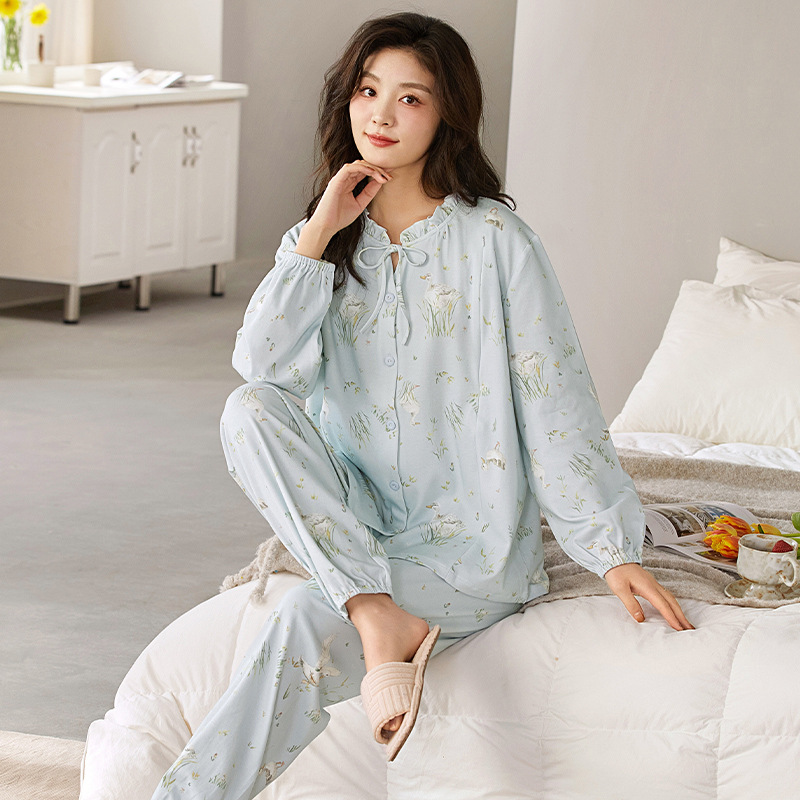 순면 산후 의류 클래스 A 얇은 봄 여름 새로운 임산부 땀 흡수 통기성 지퍼 수유 의류 잠옷 세트