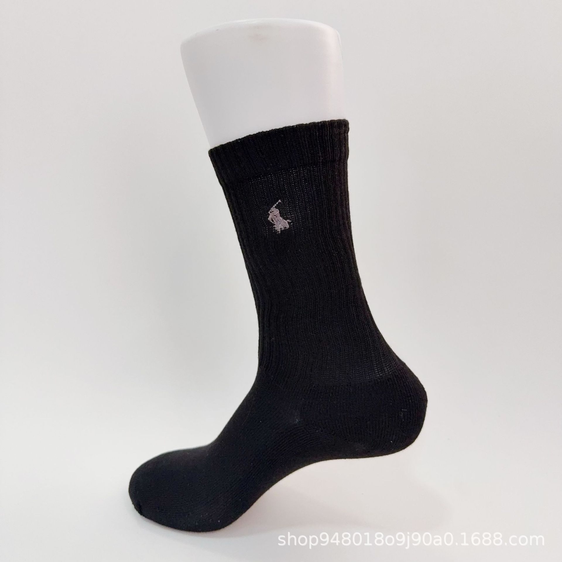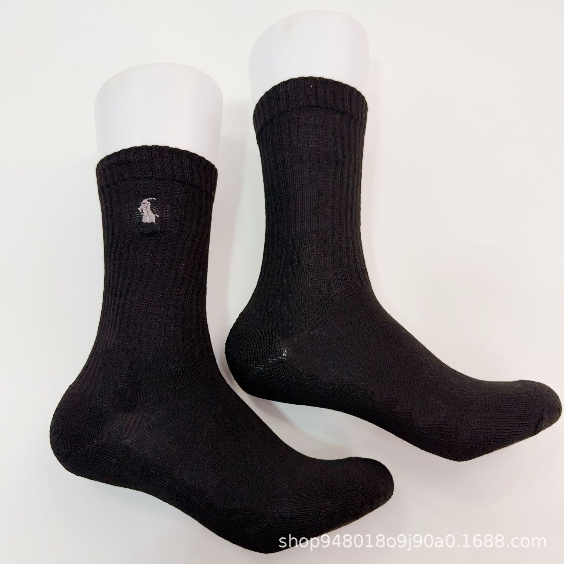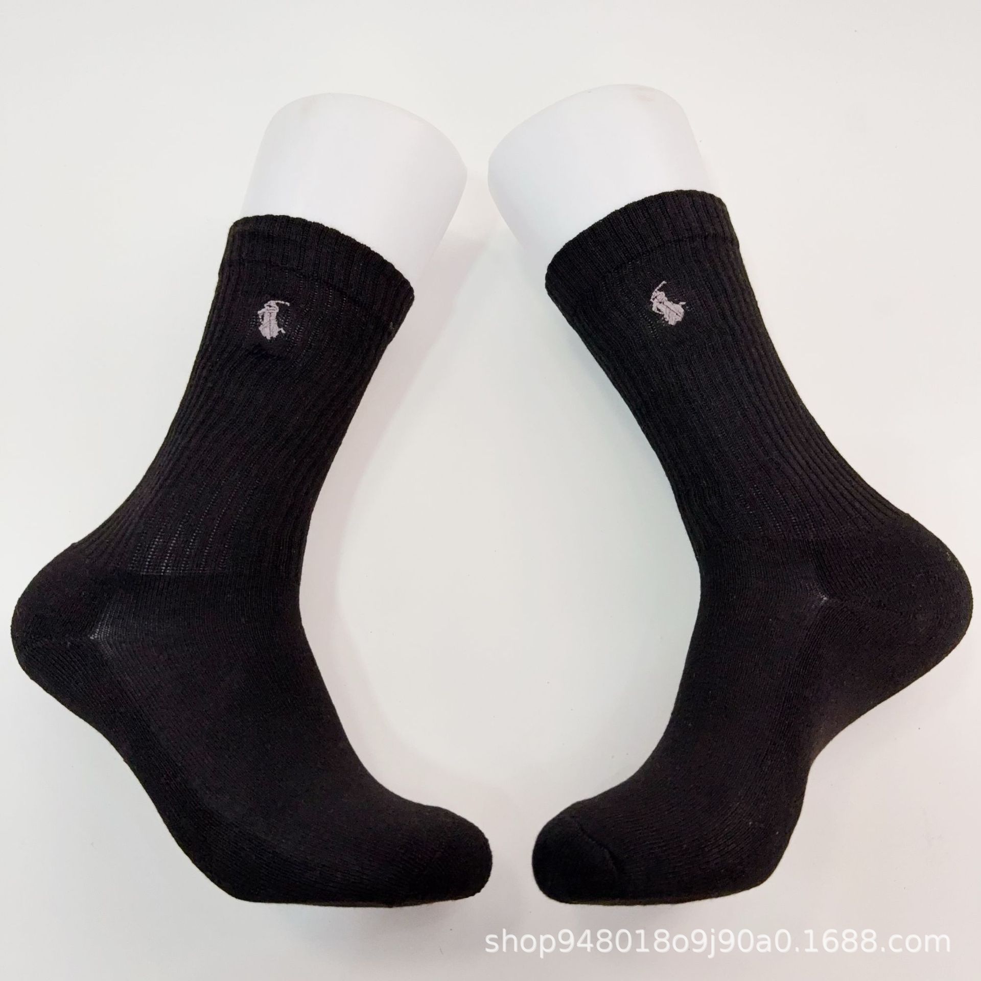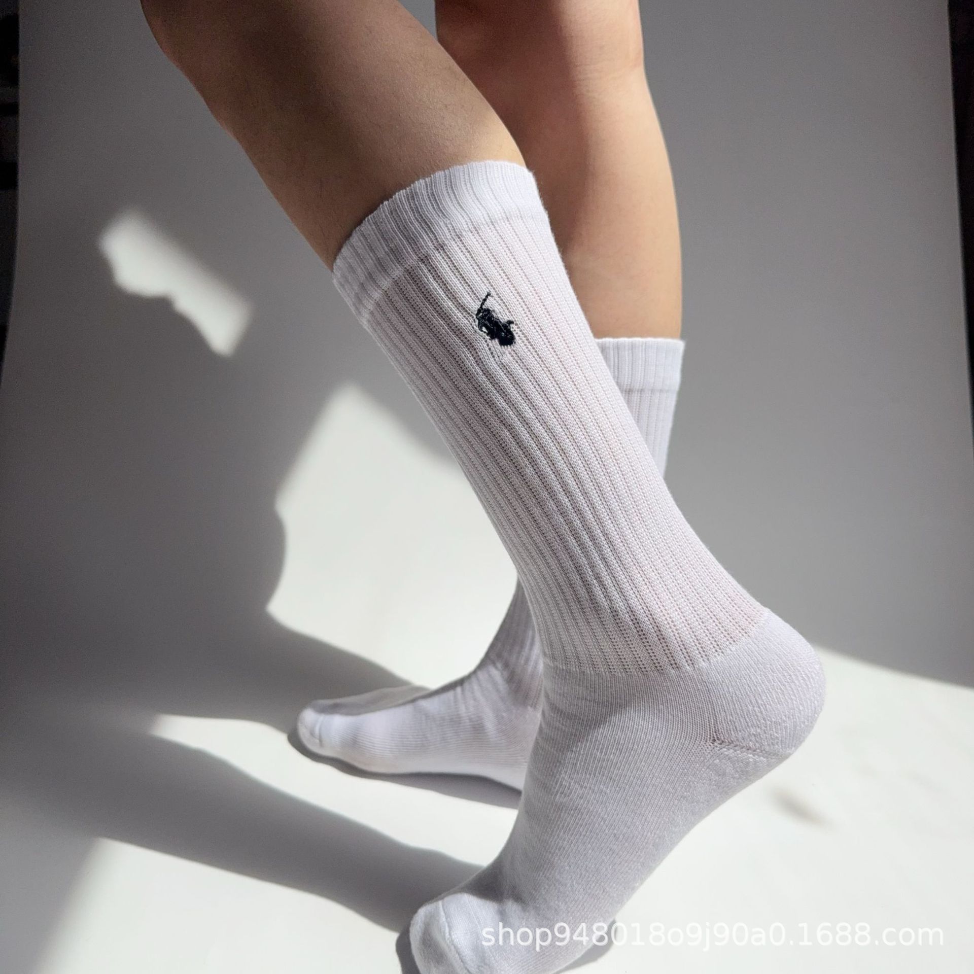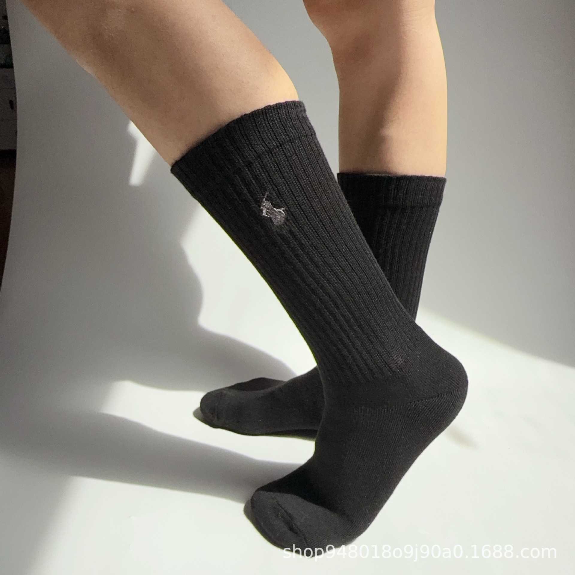 폴로 자수 긴 흑백 캐주얼 양말 비즈니스 스포츠 양말 남성용 통기성 테리 양말 국경 간 도매