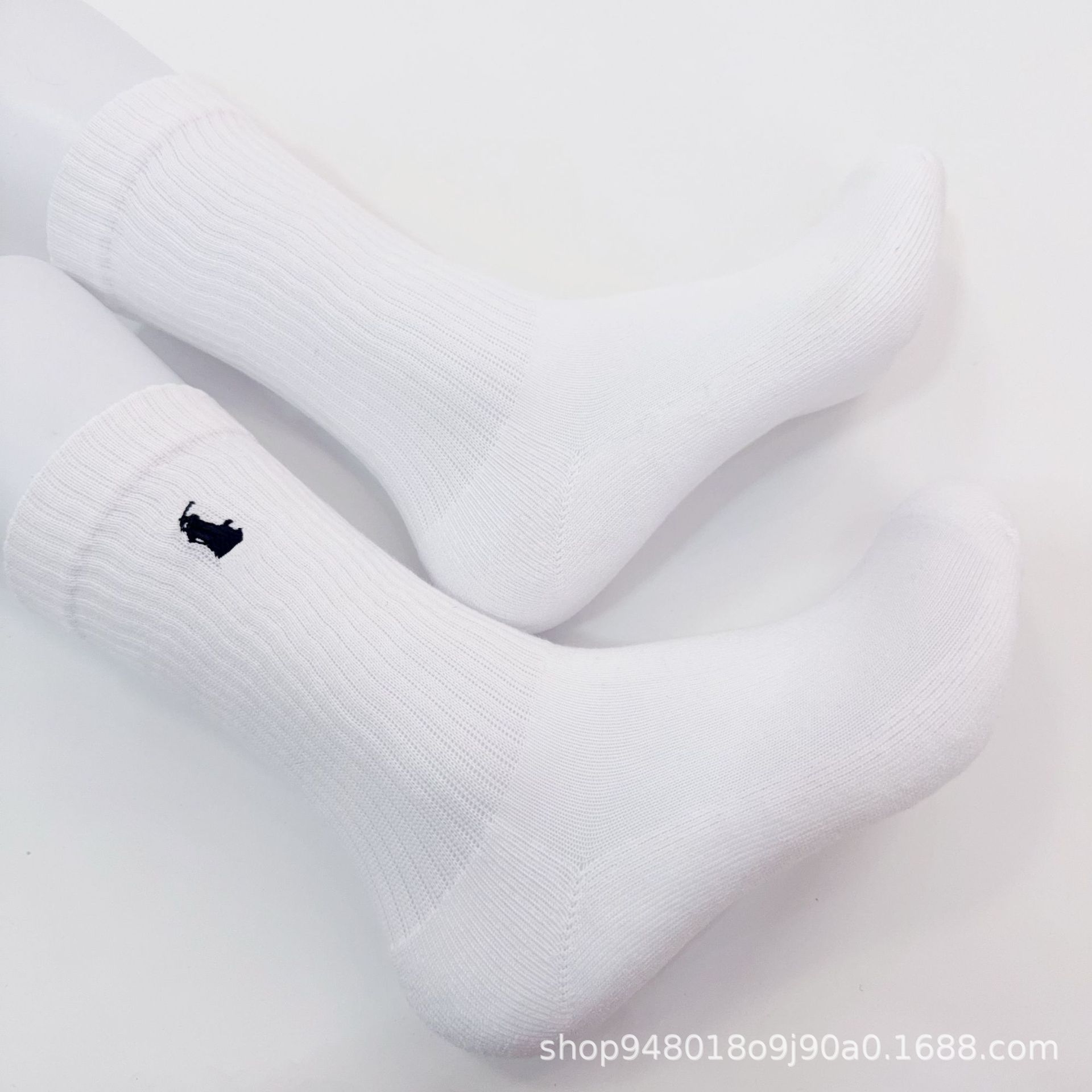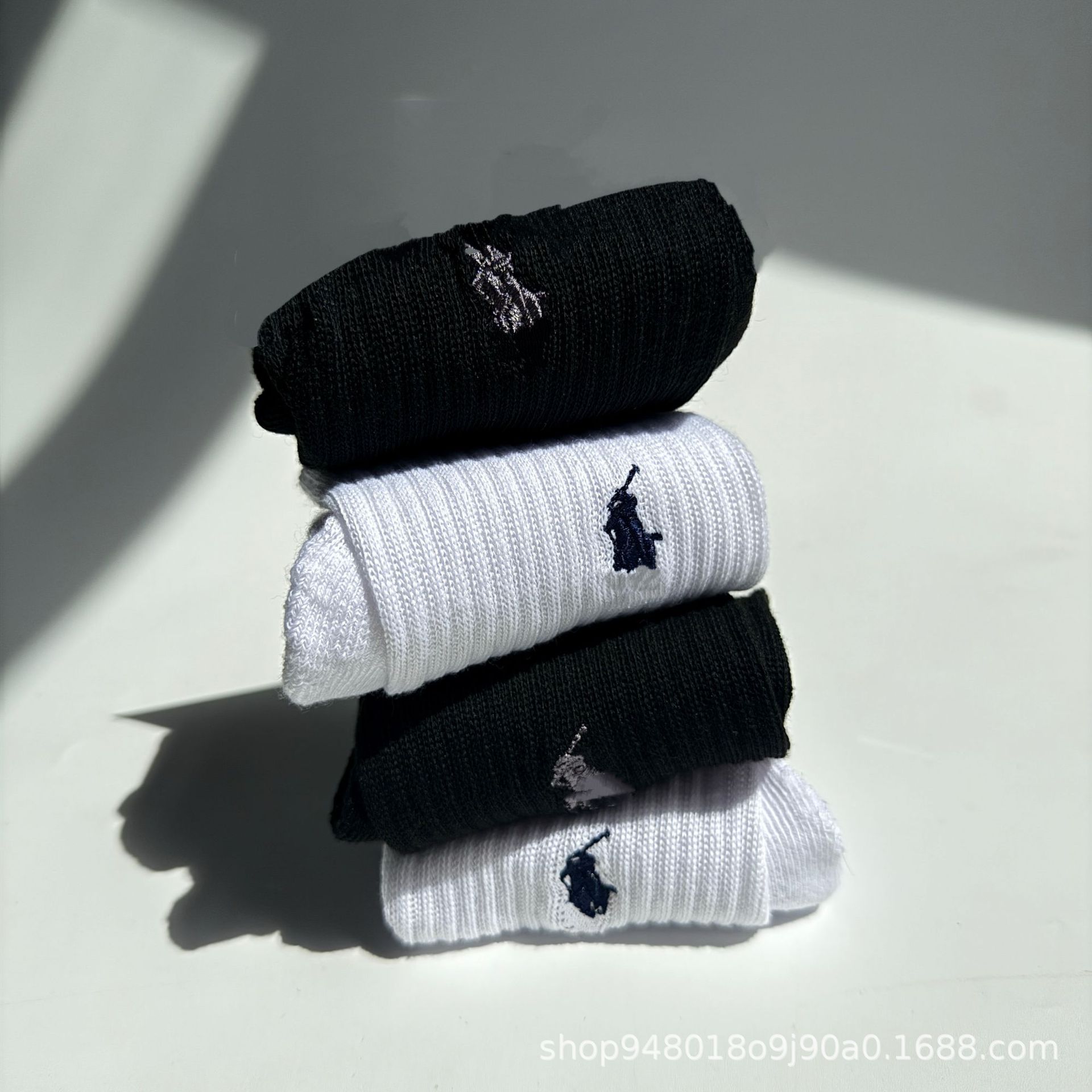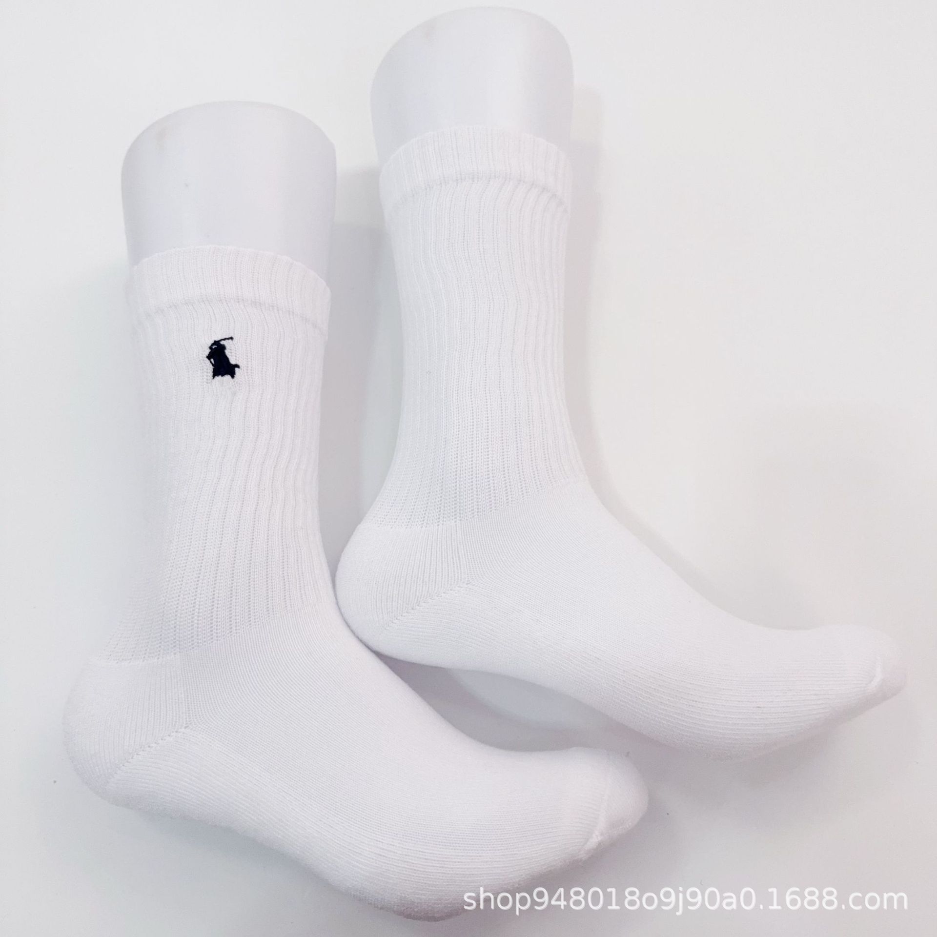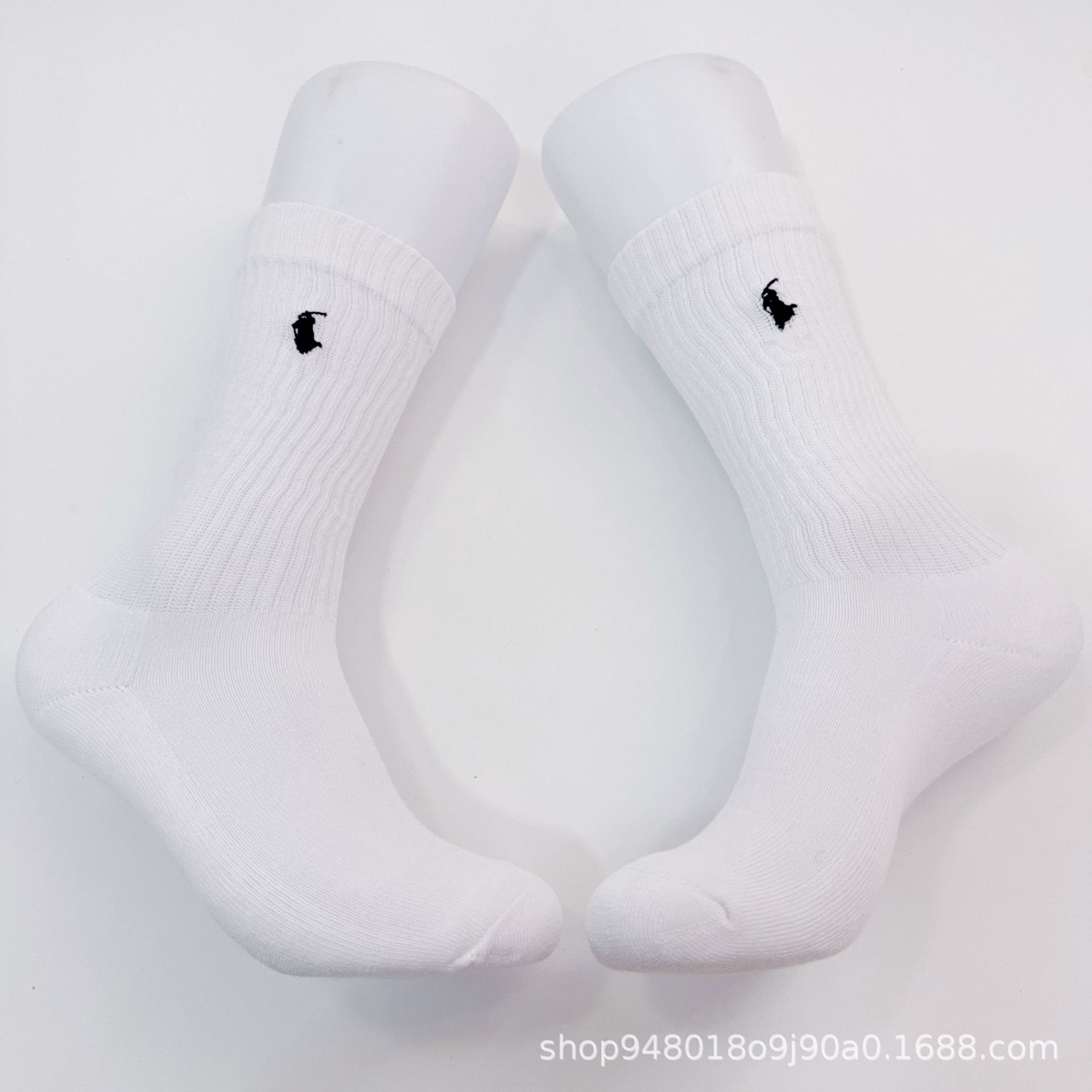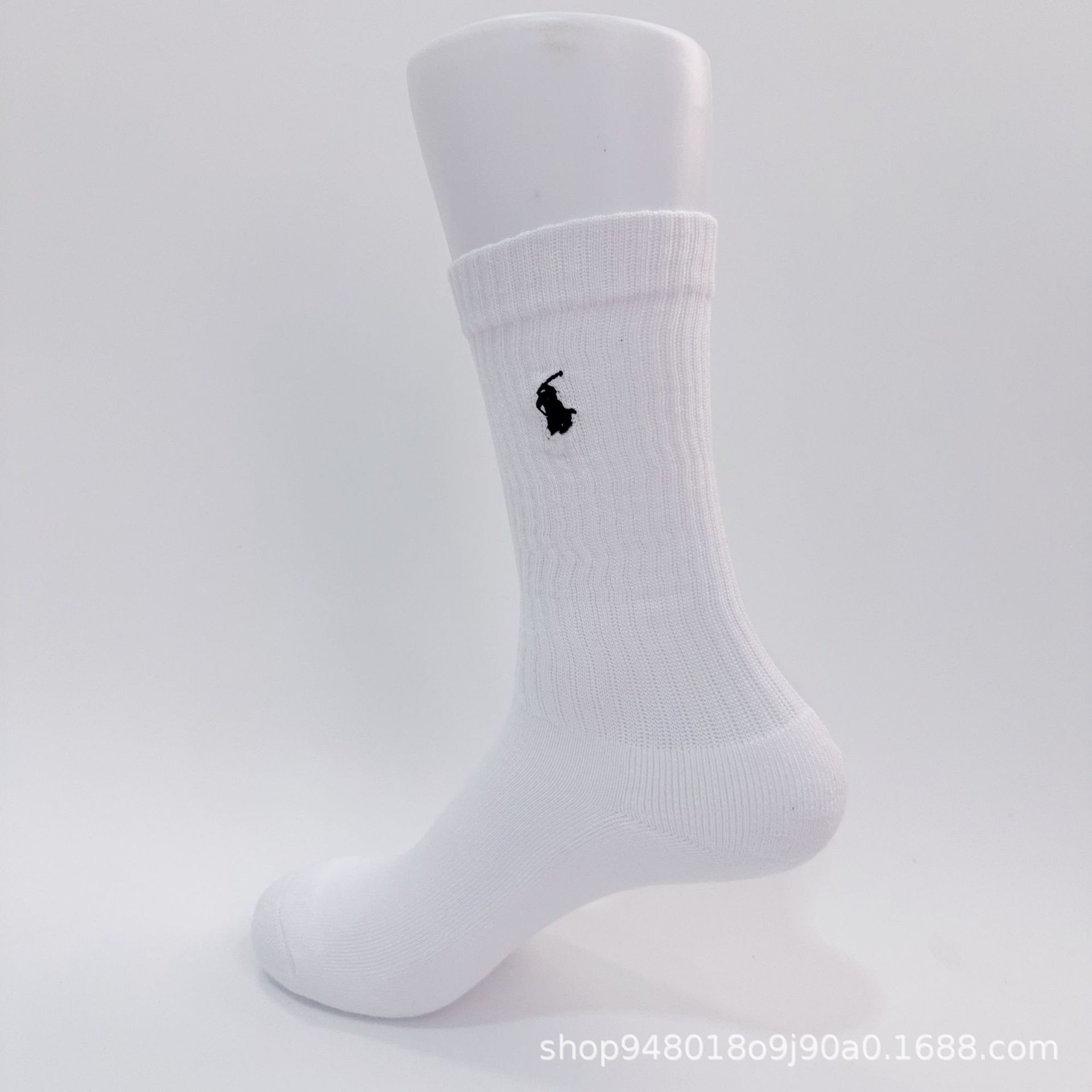 폴로 자수 긴 흑백 캐주얼 양말 비즈니스 스포츠 양말 남성용 통기성 테리 양말 국경 간 도매