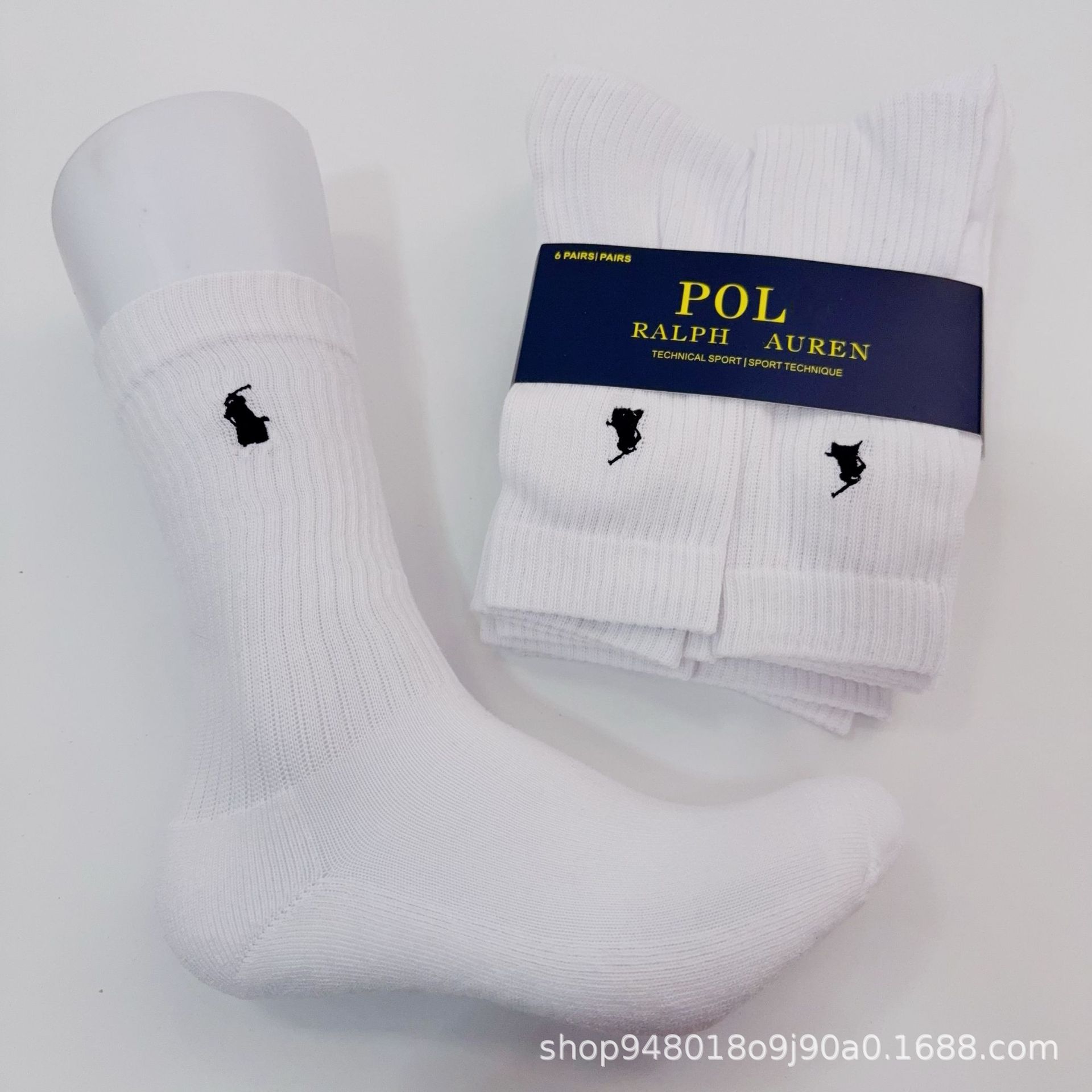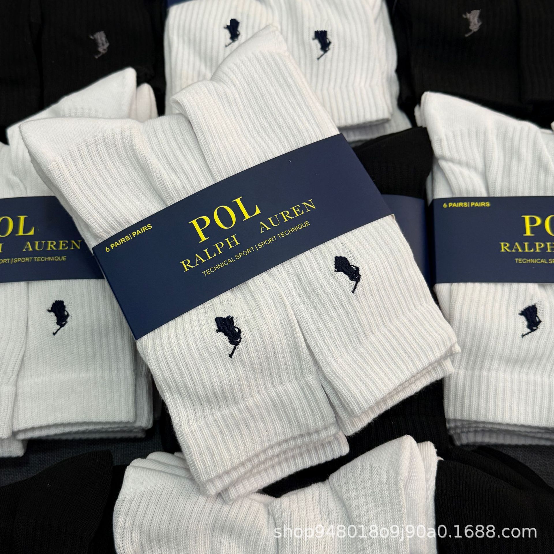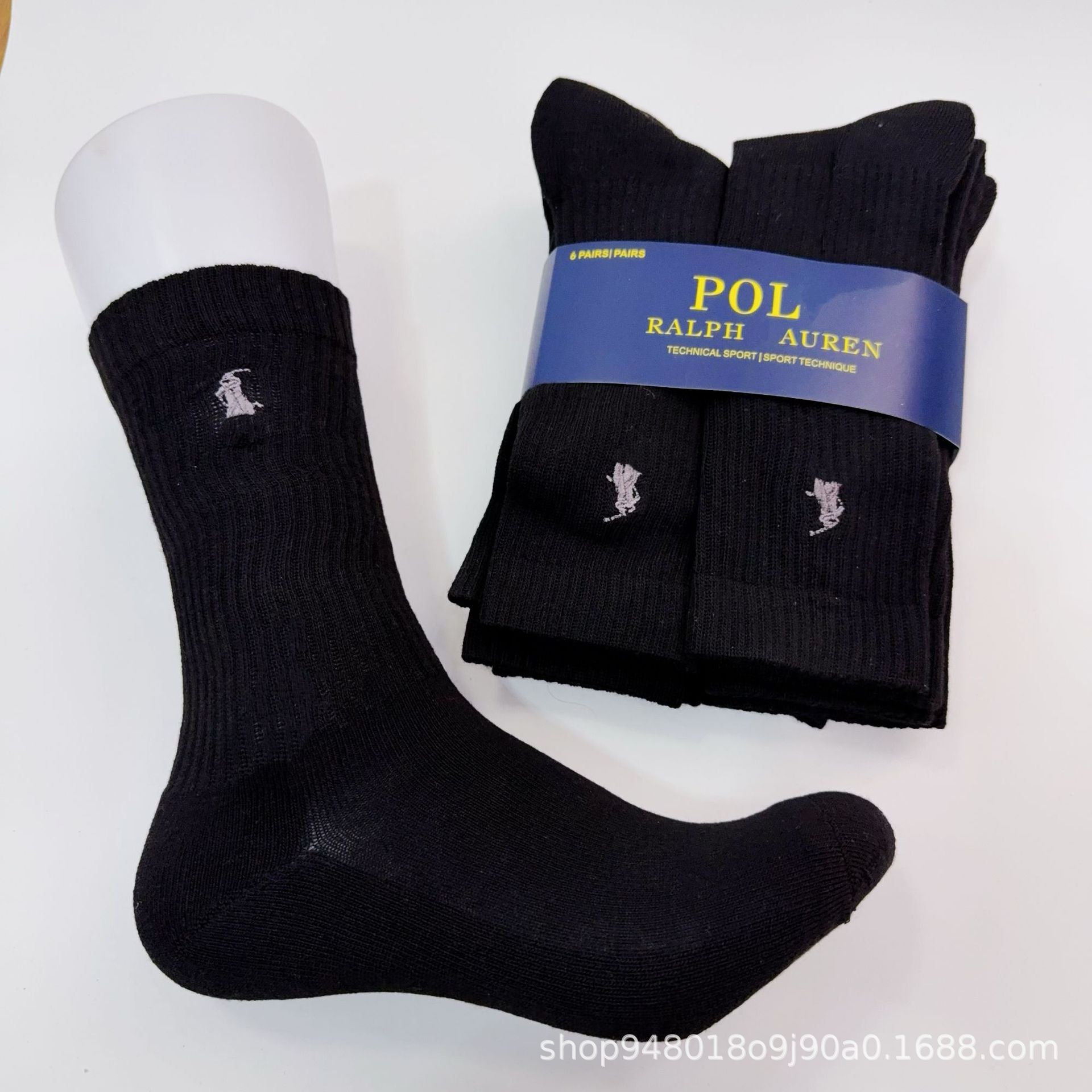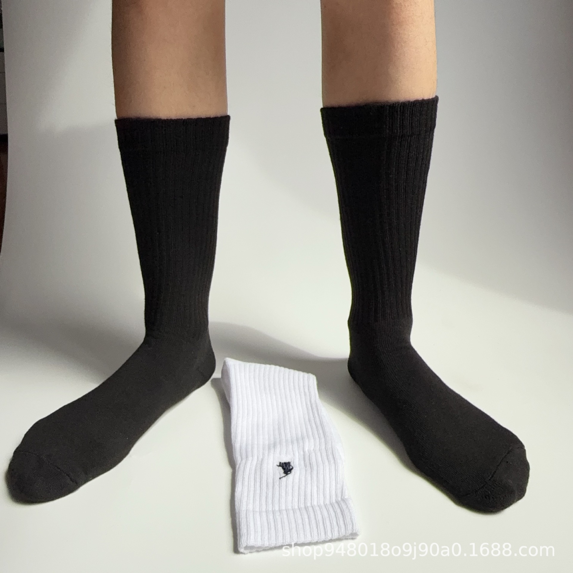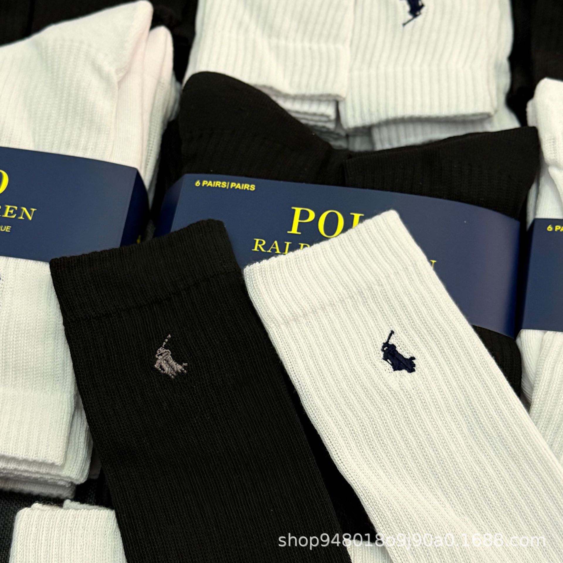 폴로 자수 긴 흑백 캐주얼 양말 비즈니스 스포츠 양말 남성용 통기성 테리 양말 국경 간 도매