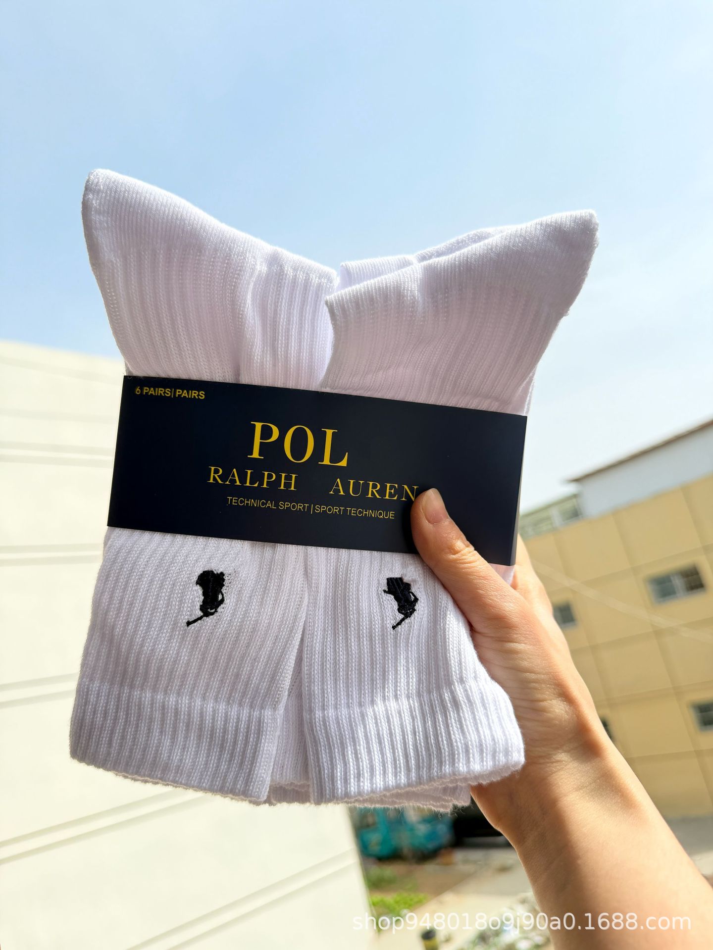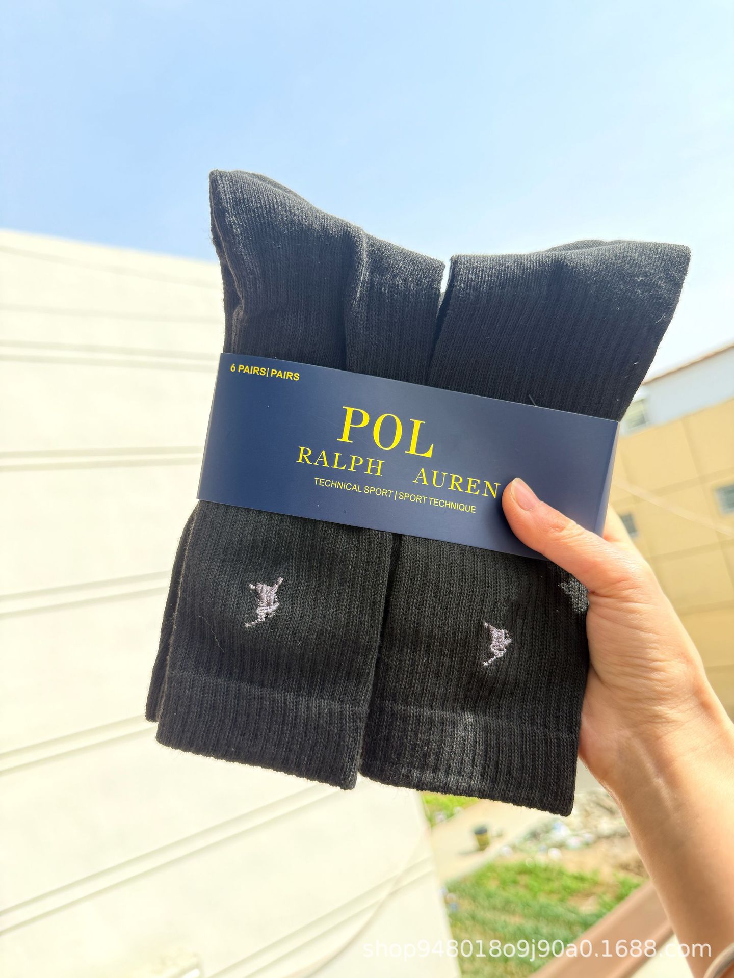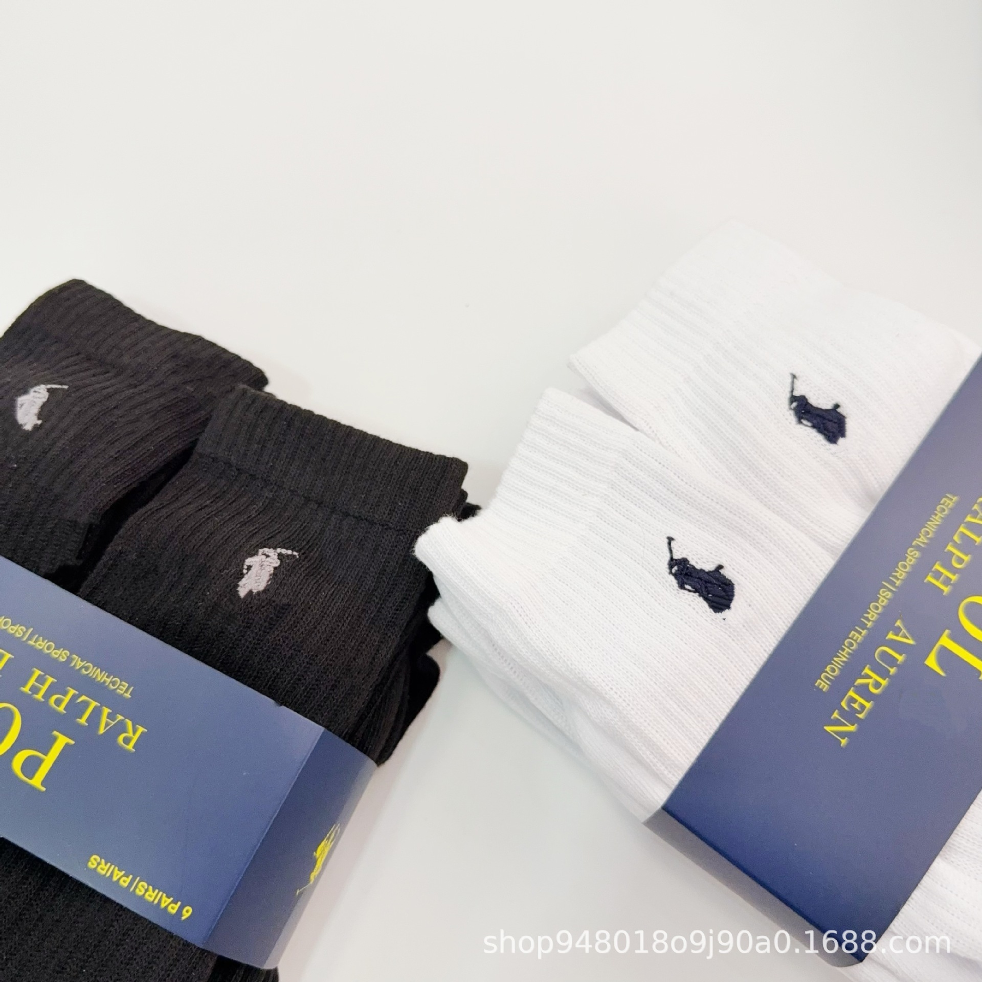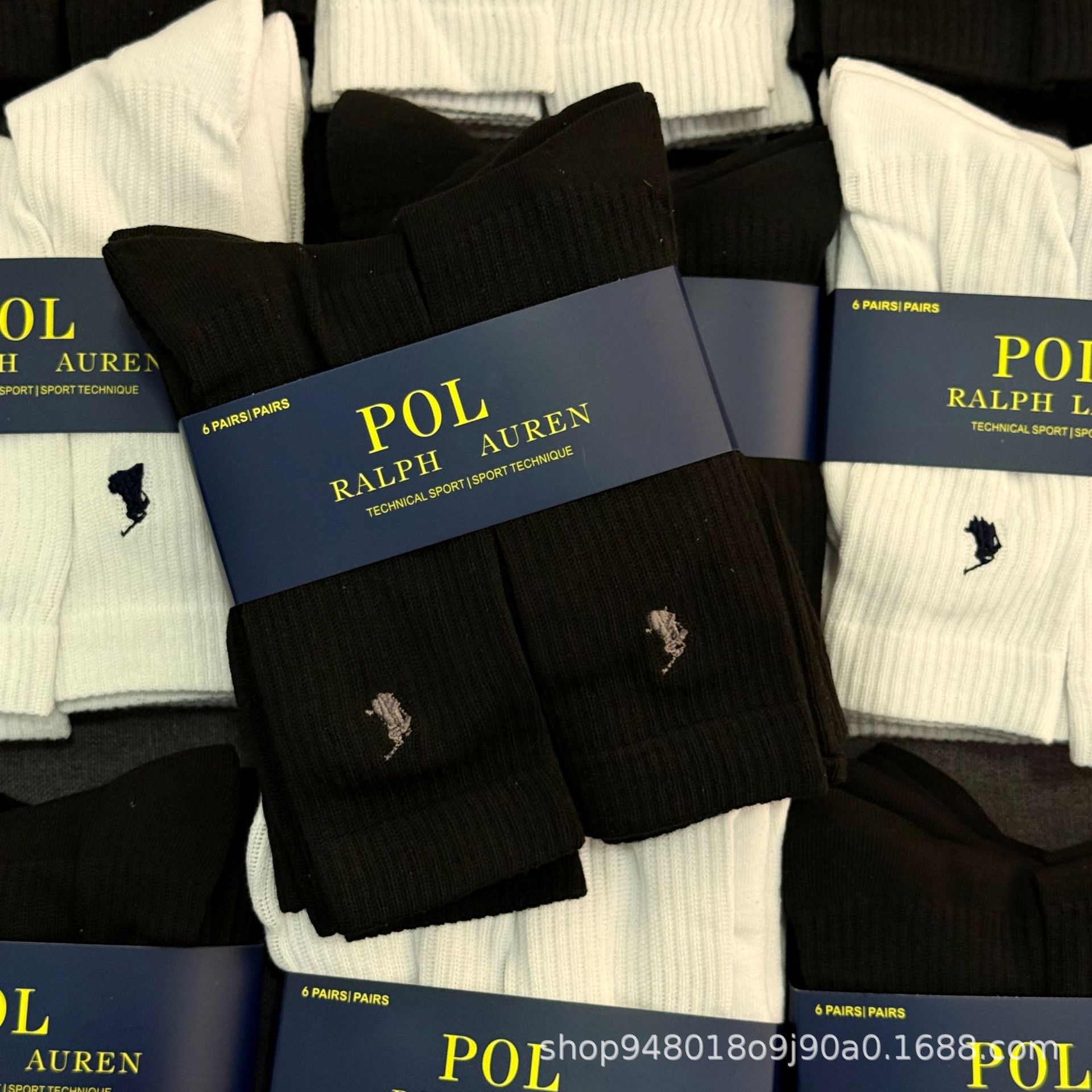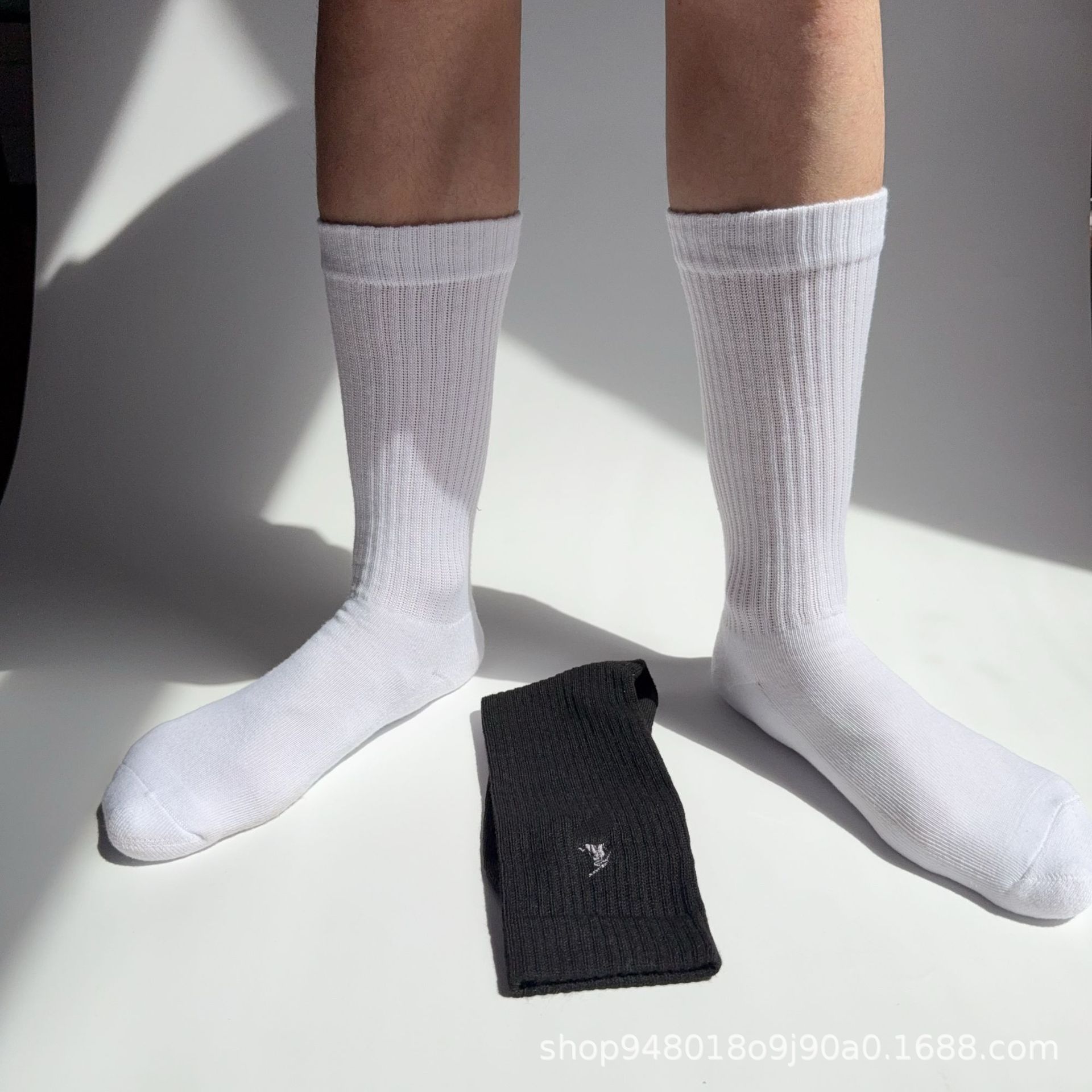 폴로 자수 긴 흑백 캐주얼 양말 비즈니스 스포츠 양말 남성용 통기성 테리 양말 국경 간 도매