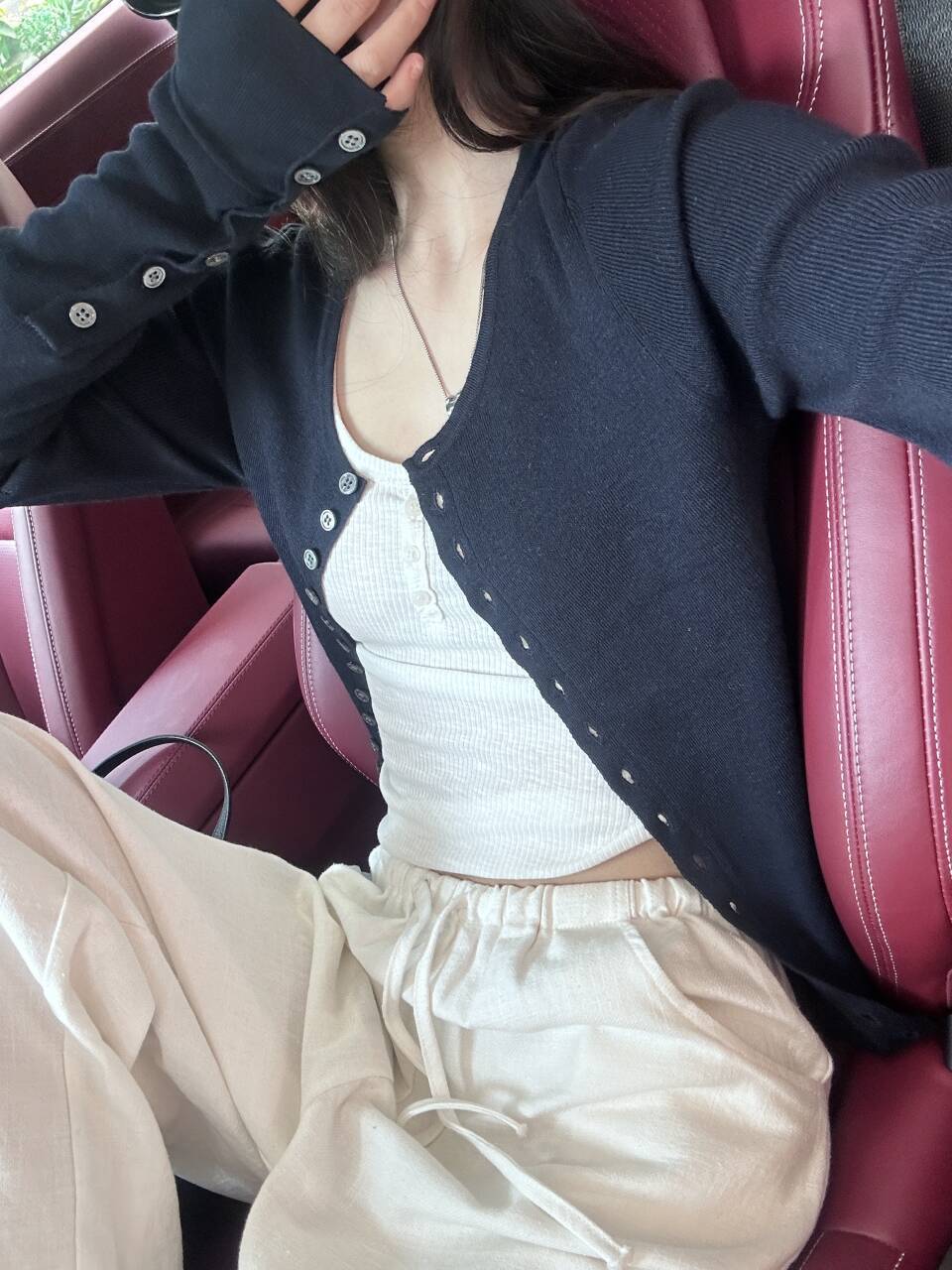 "27 버튼" 멀 베리 실크 울 대마 그레이 니트 카디건 슬림 슬리밍 선 스크린 니트 탑