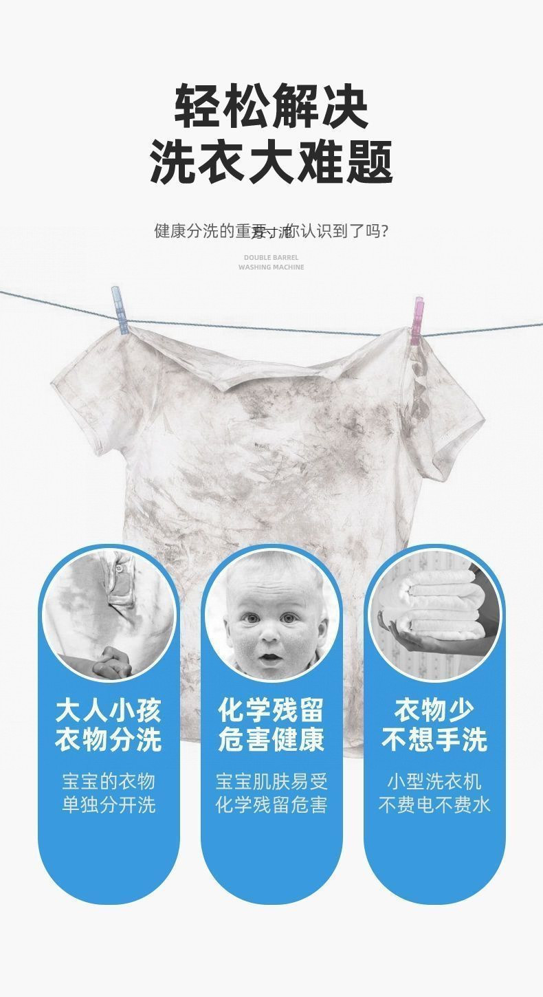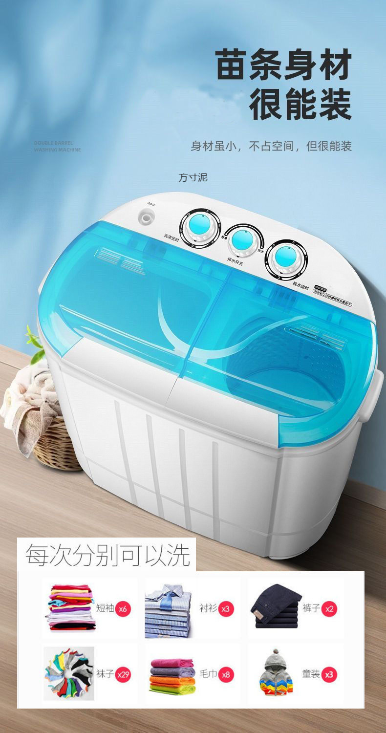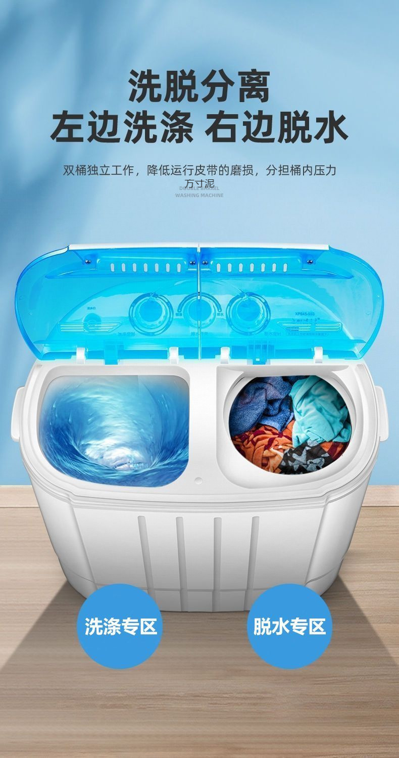 양말과 속옷을 세탁하고 탈수할 수 있는 소형 이중통 세탁기 가정용 미니 반자동 세탁기 건조 가능