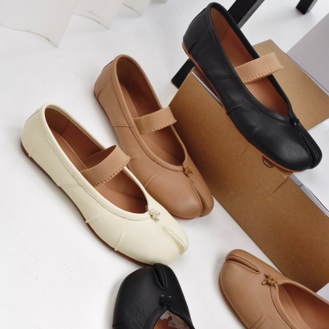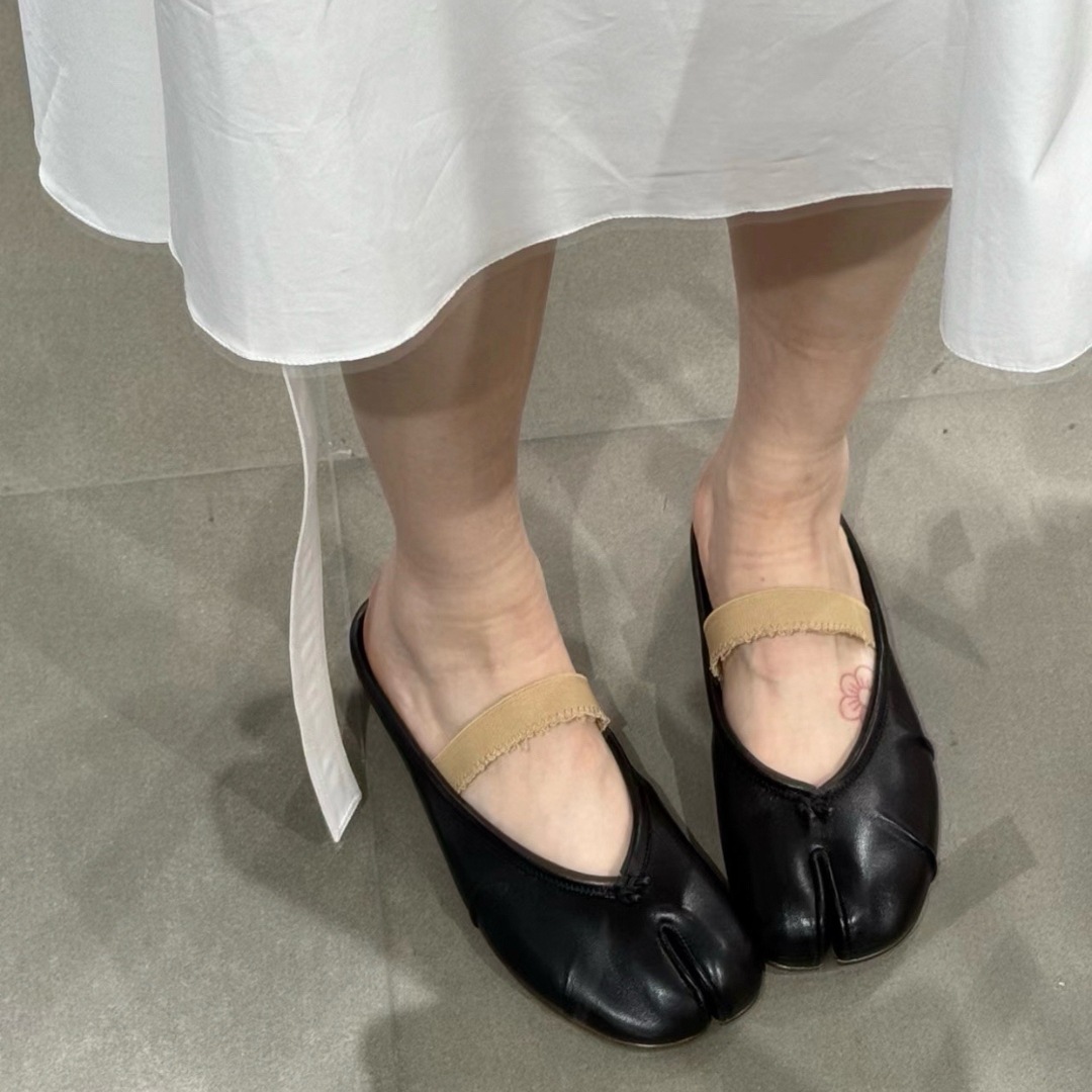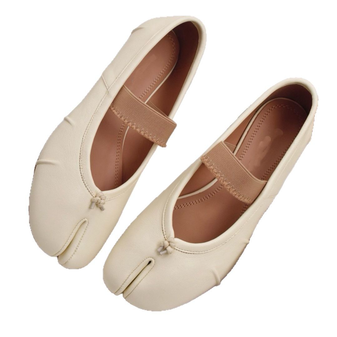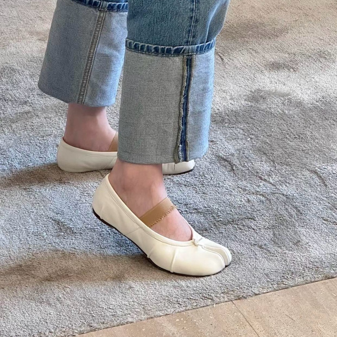 여성용 탑 버전 스트랩 스플릿 토 슈즈 2025 봄 신작 돼지 발톱 타비 플리츠 발레 슈즈 펌프스 플랫 슈즈