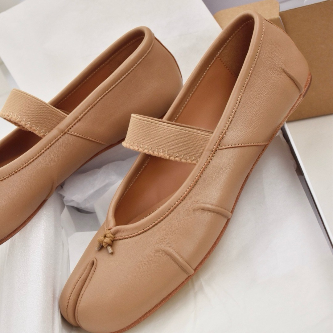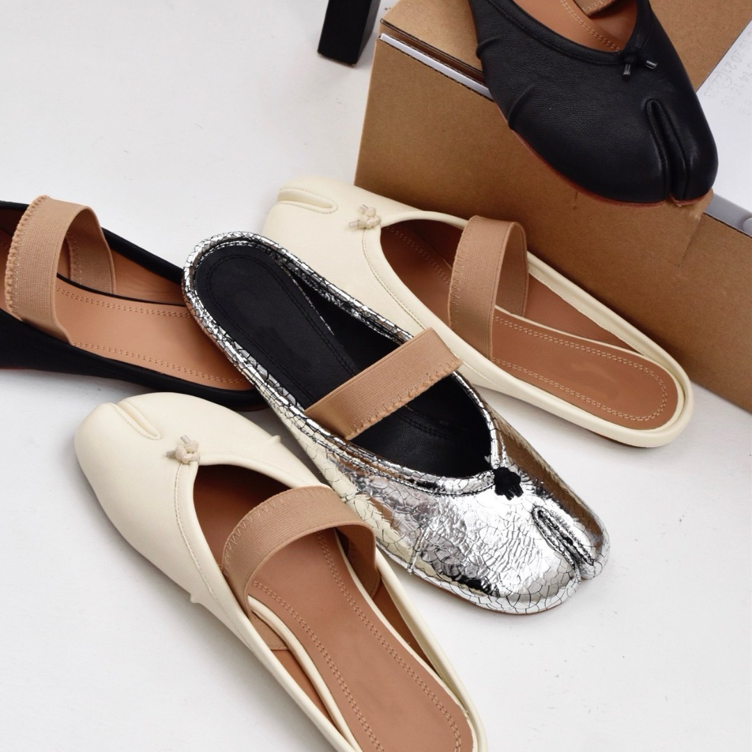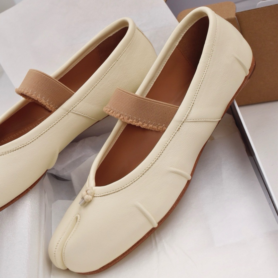 여성용 탑 버전 스트랩 스플릿 토 슈즈 2025 봄 신작 돼지 발톱 타비 플리츠 발레 슈즈 펌프스 플랫 슈즈