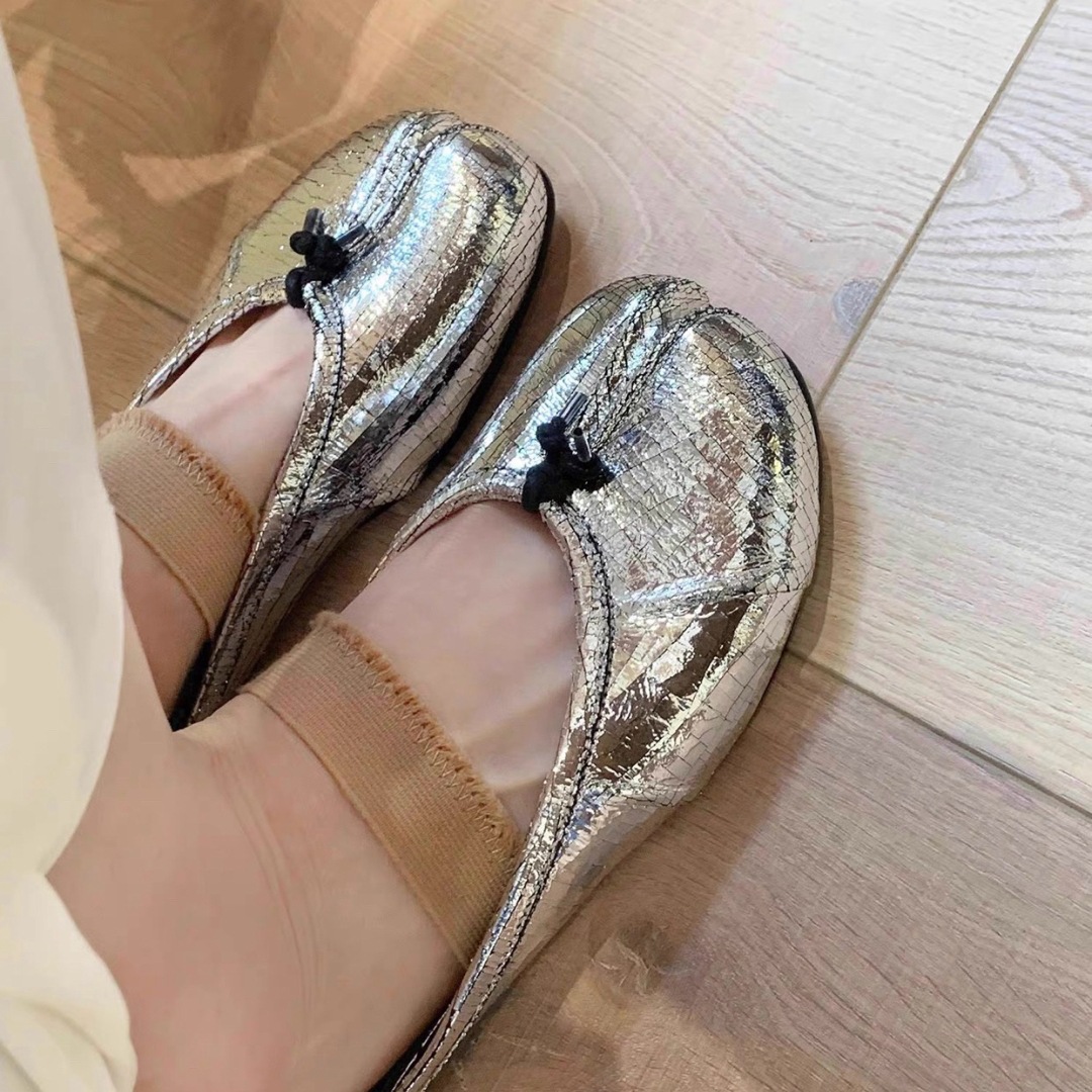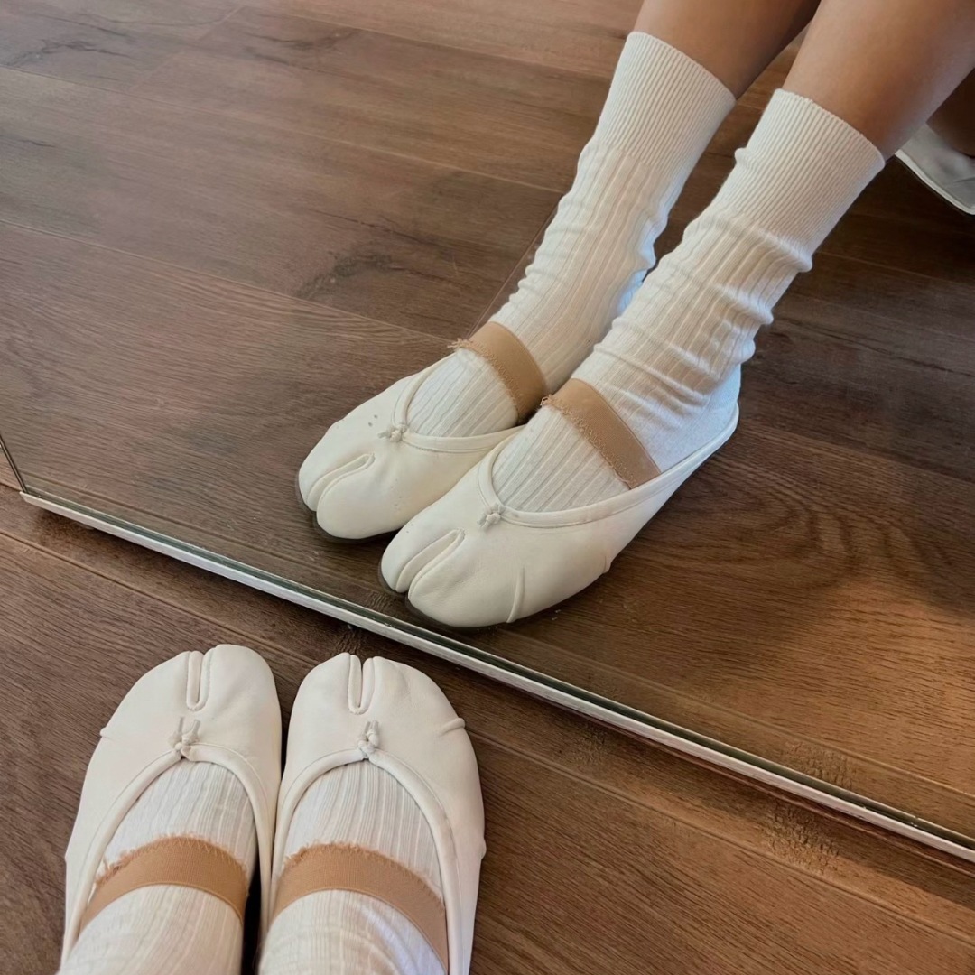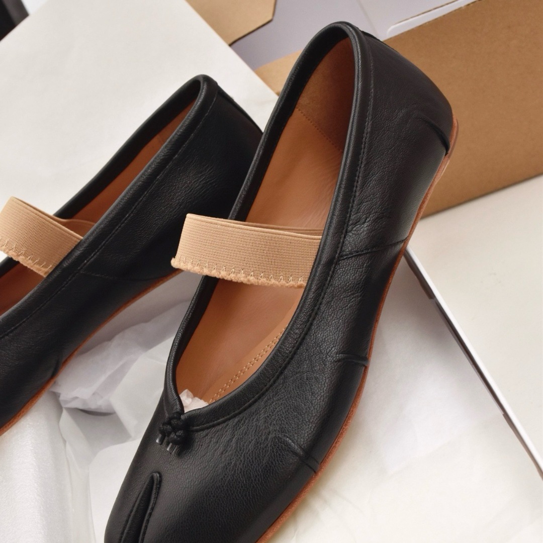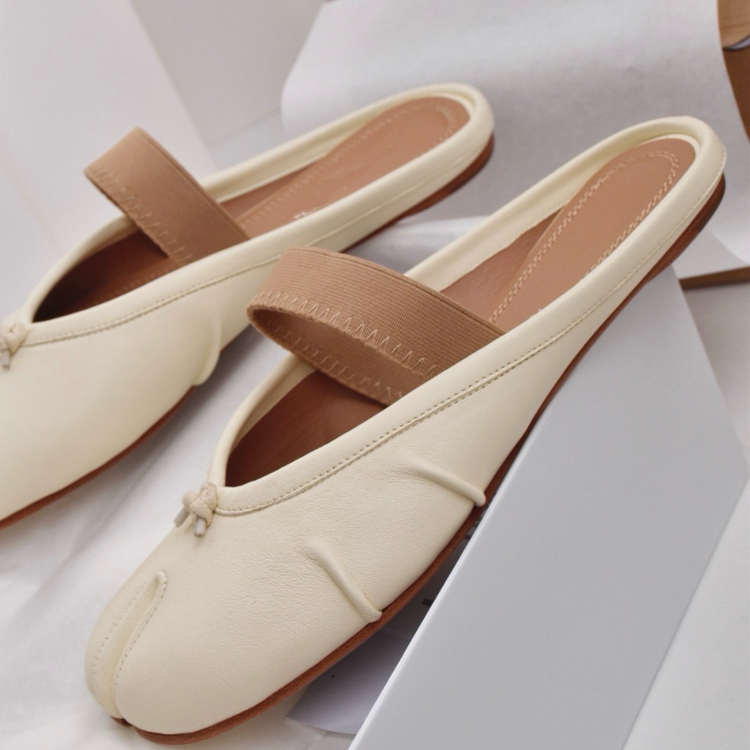 여성용 탑 버전 스트랩 스플릿 토 슈즈 2025 봄 신작 돼지 발톱 타비 플리츠 발레 슈즈 펌프스 플랫 슈즈
