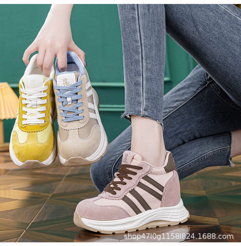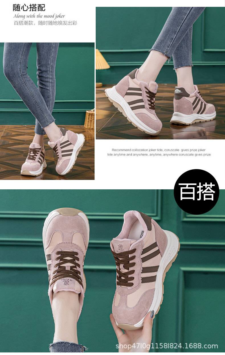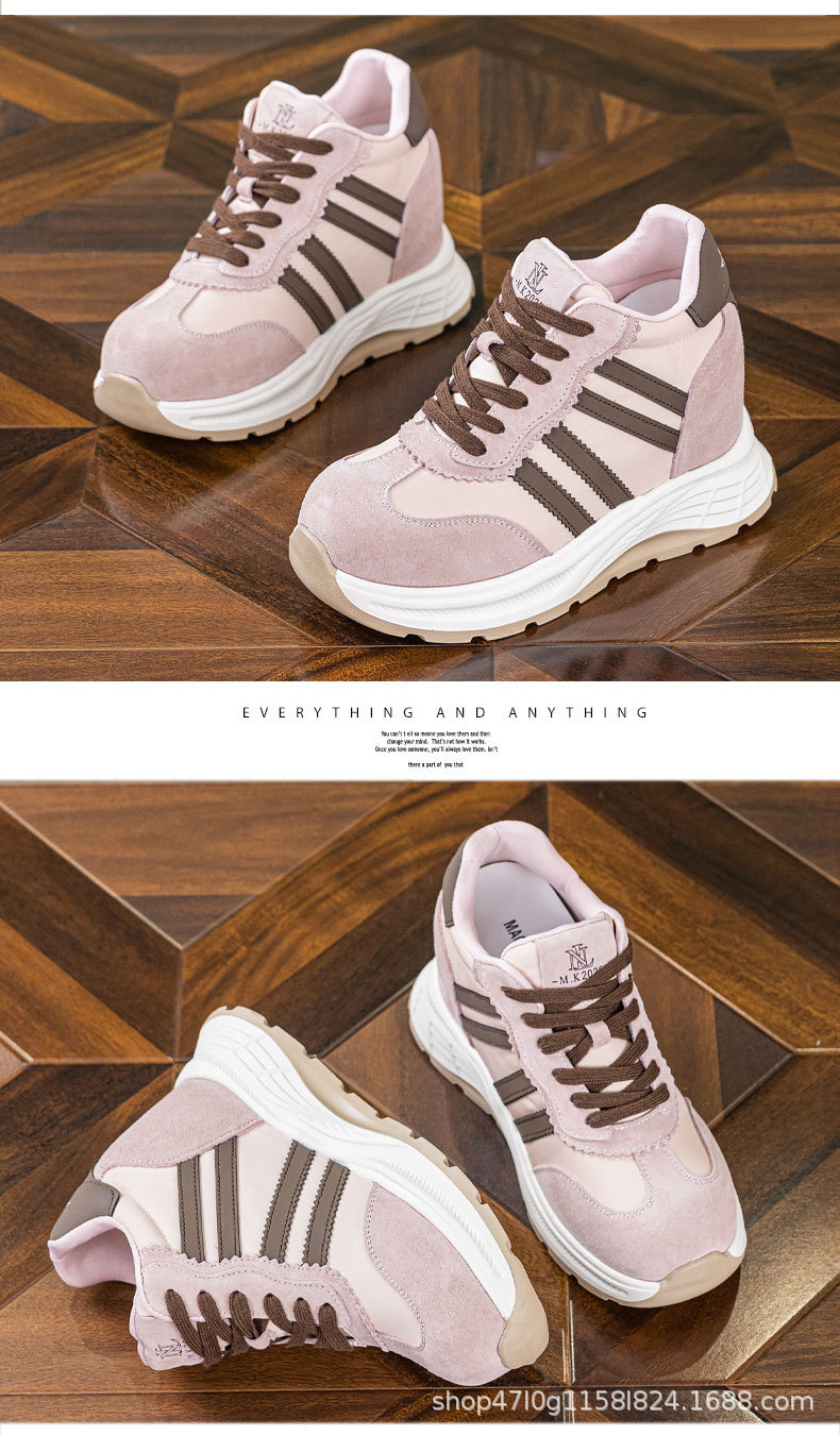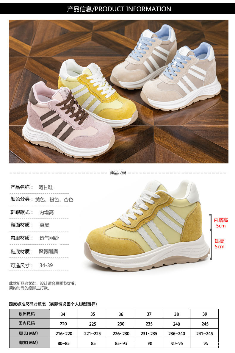 내부 높이 여성 신발 12cm 새로운 통기성 포레스트 검프 신발 두꺼운 단독 메쉬 작은 스포츠 캐주얼 신발 여성 A5016