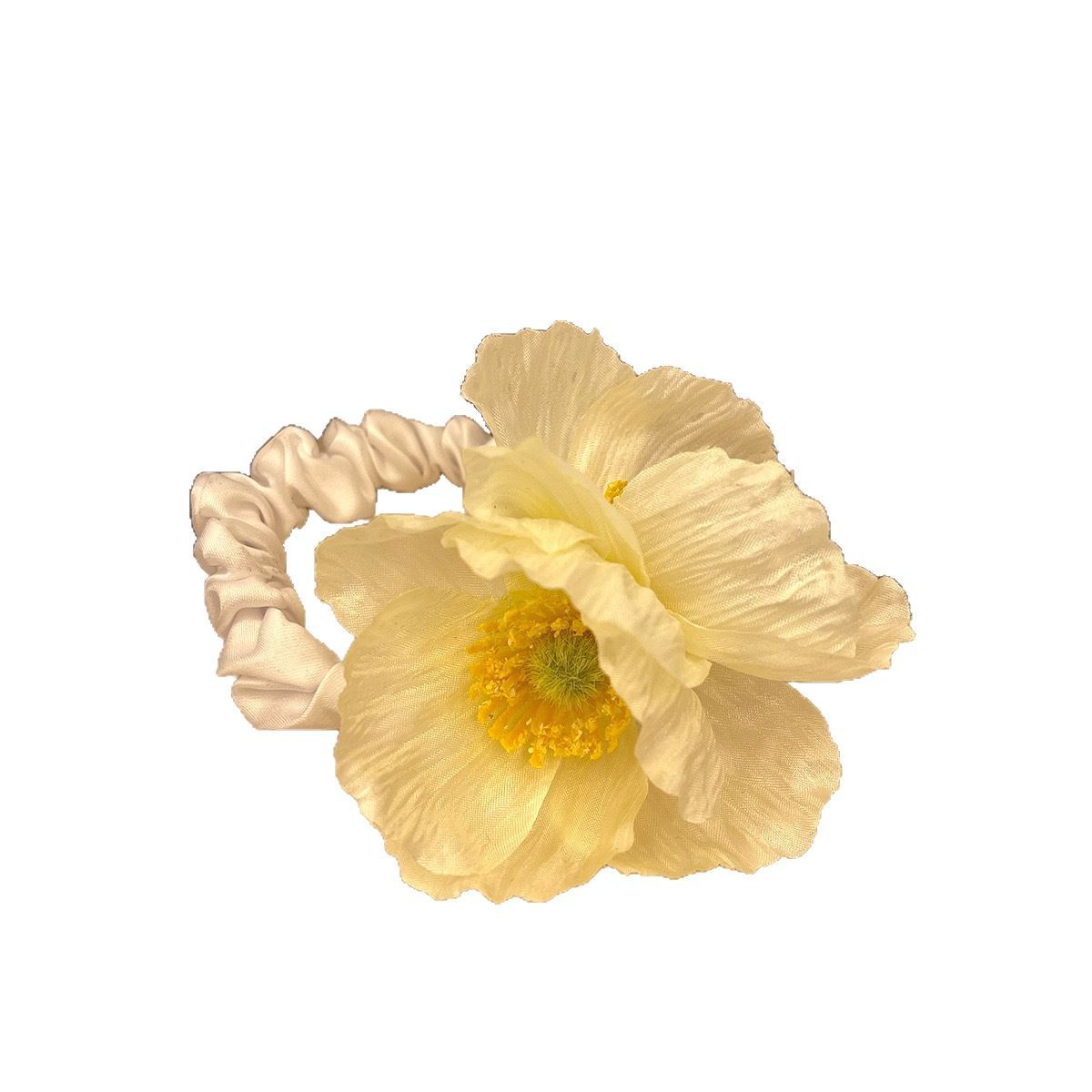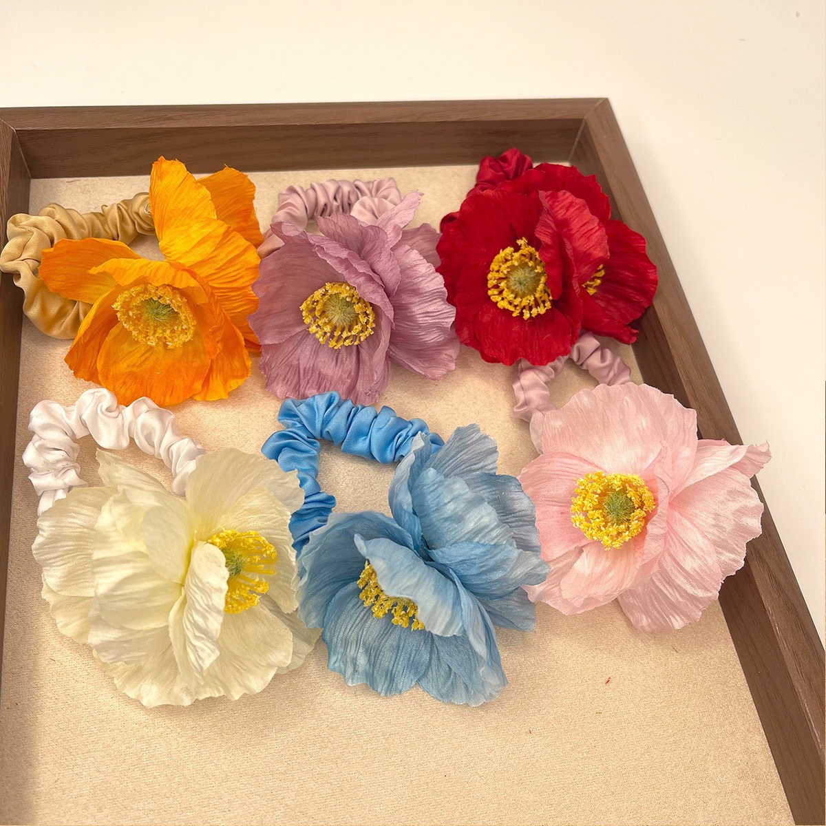 오렌지 양귀비 헤어 링 고급 센스 시뮬레이션 드라이 로즈 플라워 헤어 로프 고무 텐트 볼 헤어 액세서리 헤어 로프