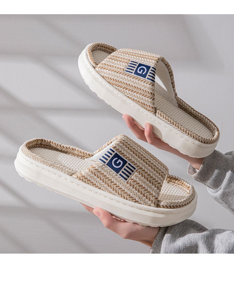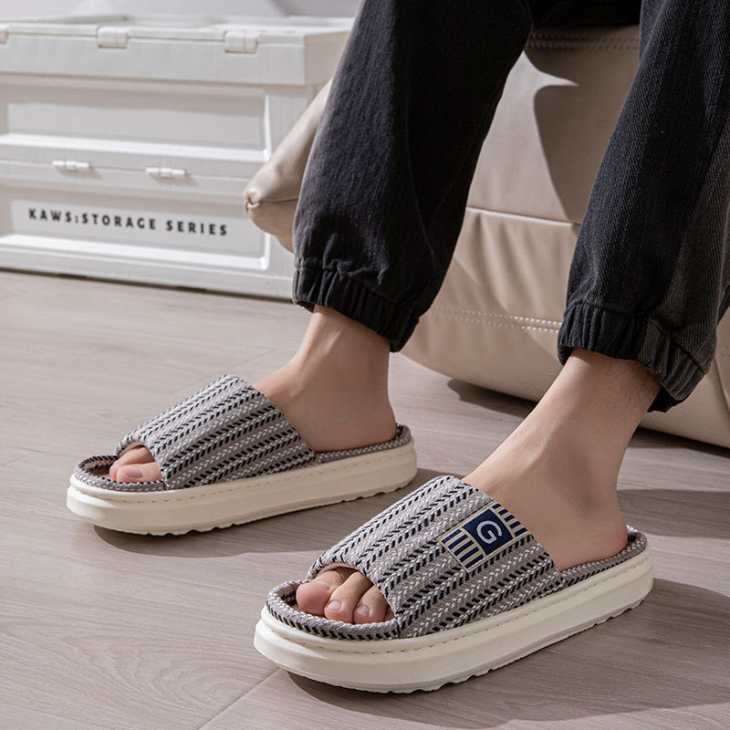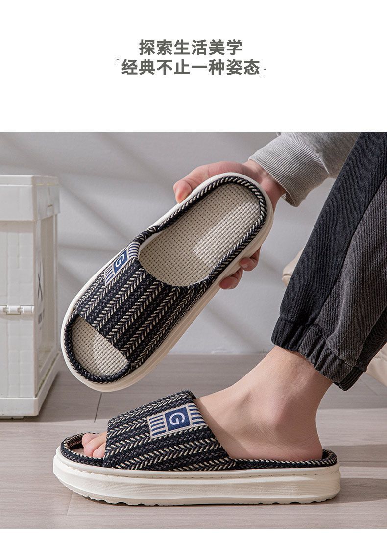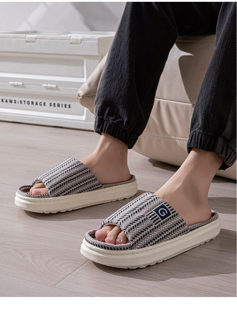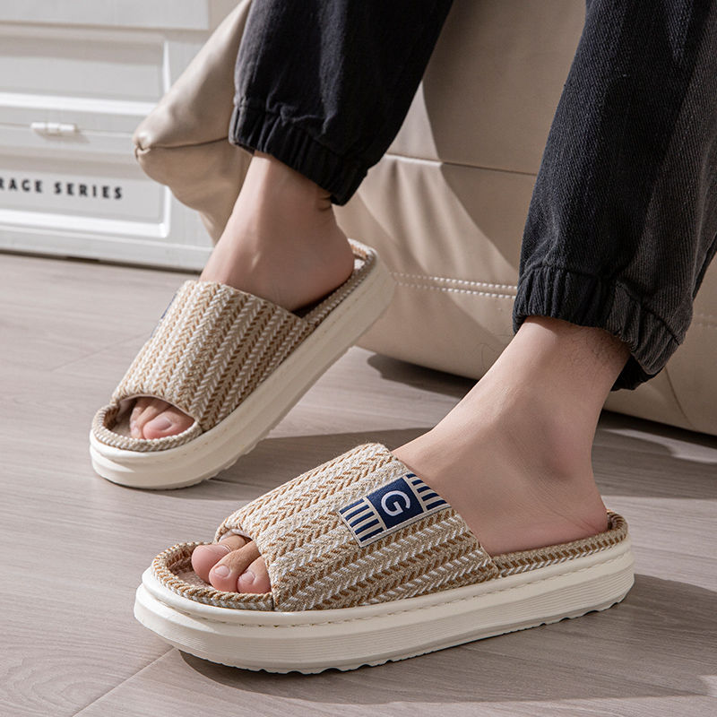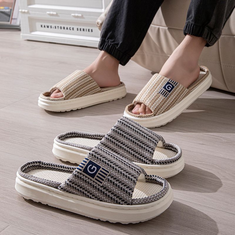 남성용 린넨 슬리퍼, 크로스보더 드롭쉬핑, 바닥 슬리퍼, 실내 미끄럼 방지 가정용 내마모성 봄, 가을 오픈 슬리퍼 도매