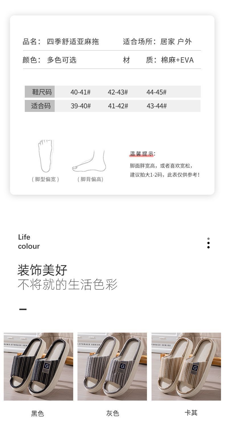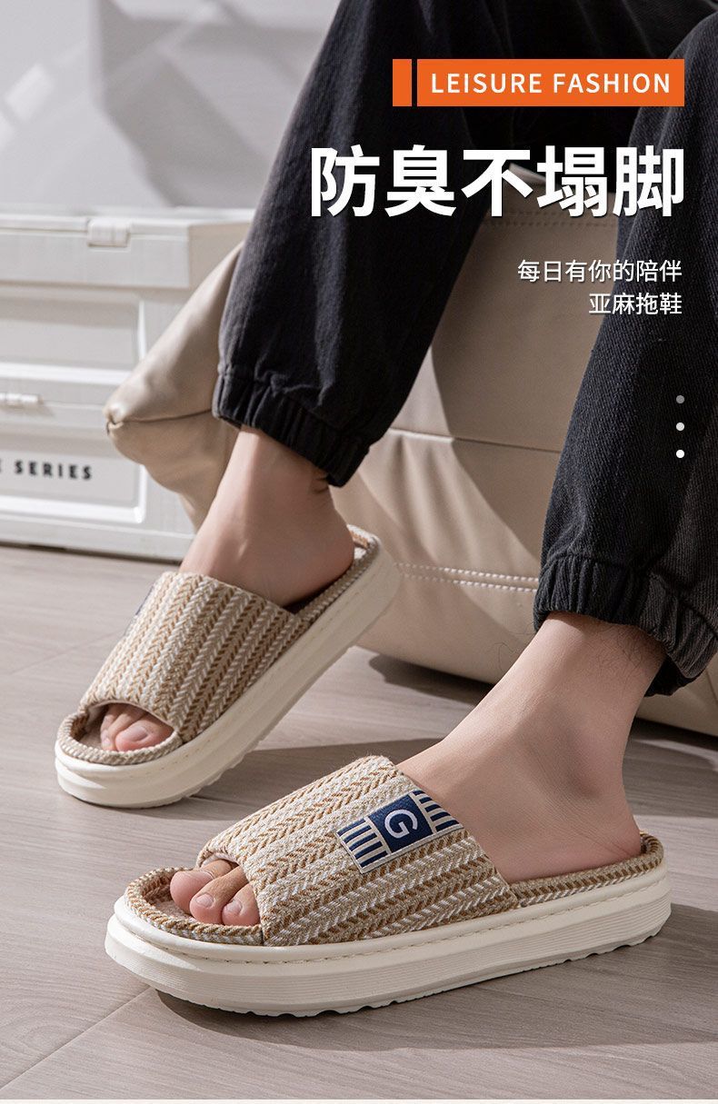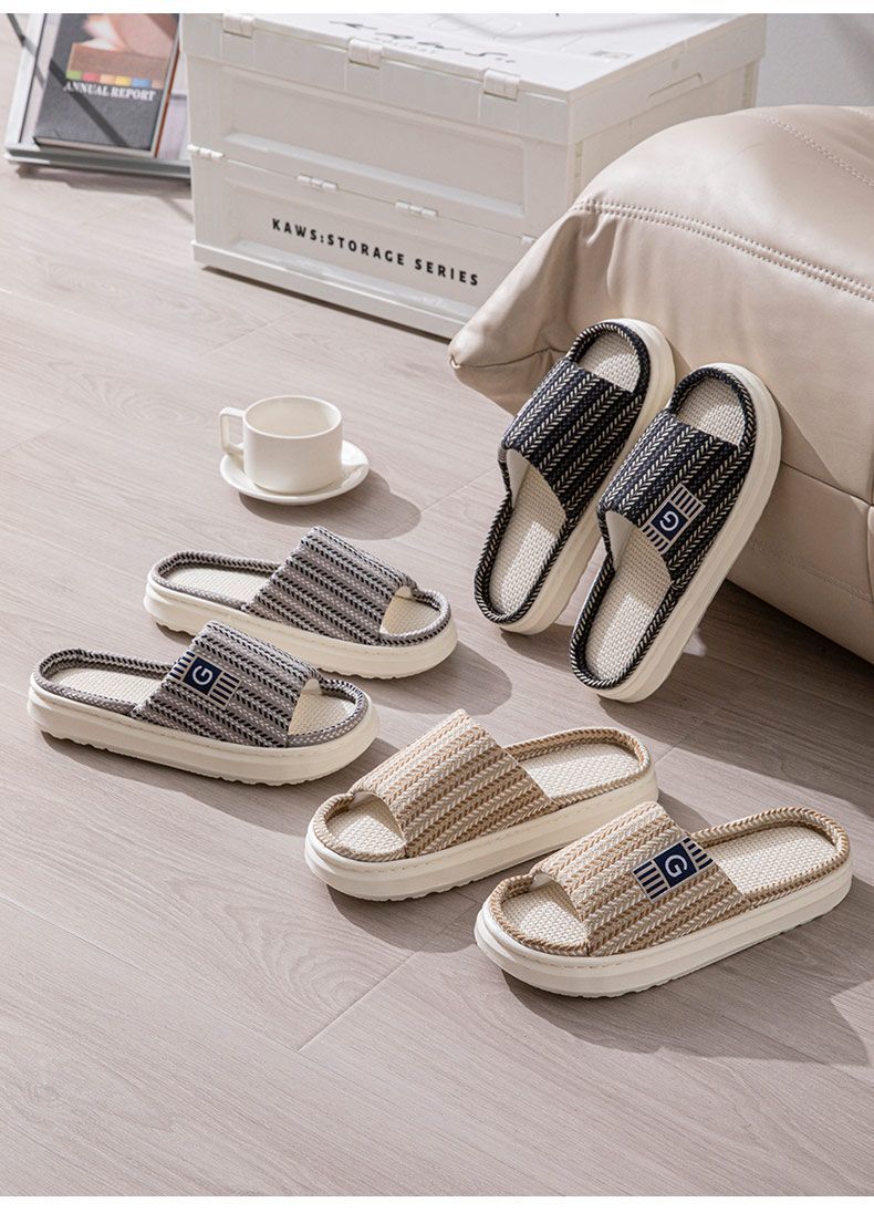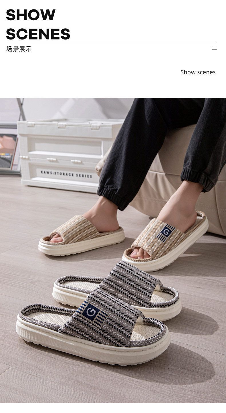 남성용 린넨 슬리퍼, 크로스보더 드롭쉬핑, 바닥 슬리퍼, 실내 미끄럼 방지 가정용 내마모성 봄, 가을 오픈 슬리퍼 도매