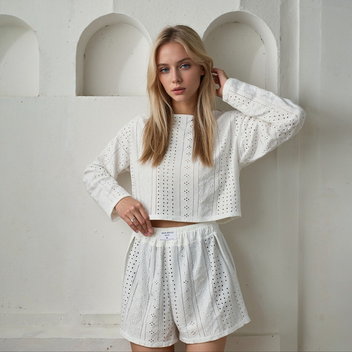 국경 간 2025 봄 여름 새로운 유럽과 미국 여성 정장 세련된 심플 스타일 슬림 루즈 풀오버 탑 반바지