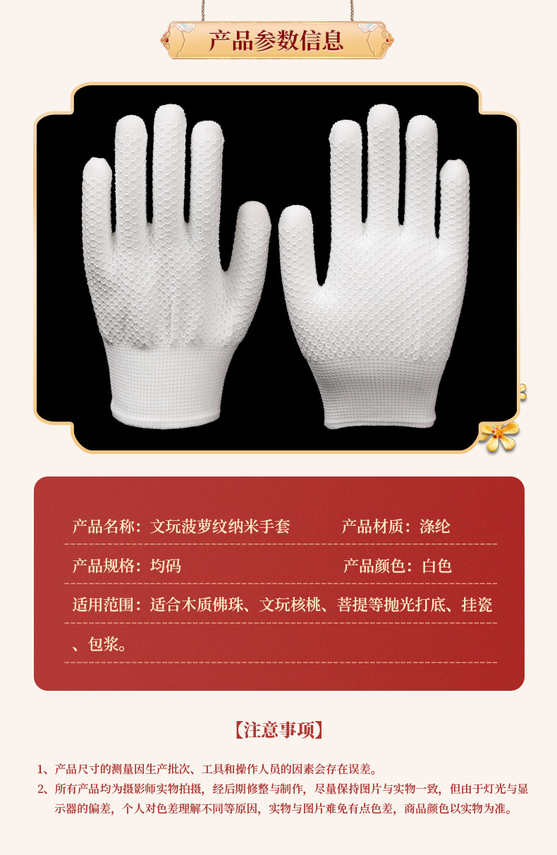 도매 파인애플 장갑 나노 장갑 통기성 내마모성 디스크 구슬 손 끈 세련된 호두 디스크 장갑