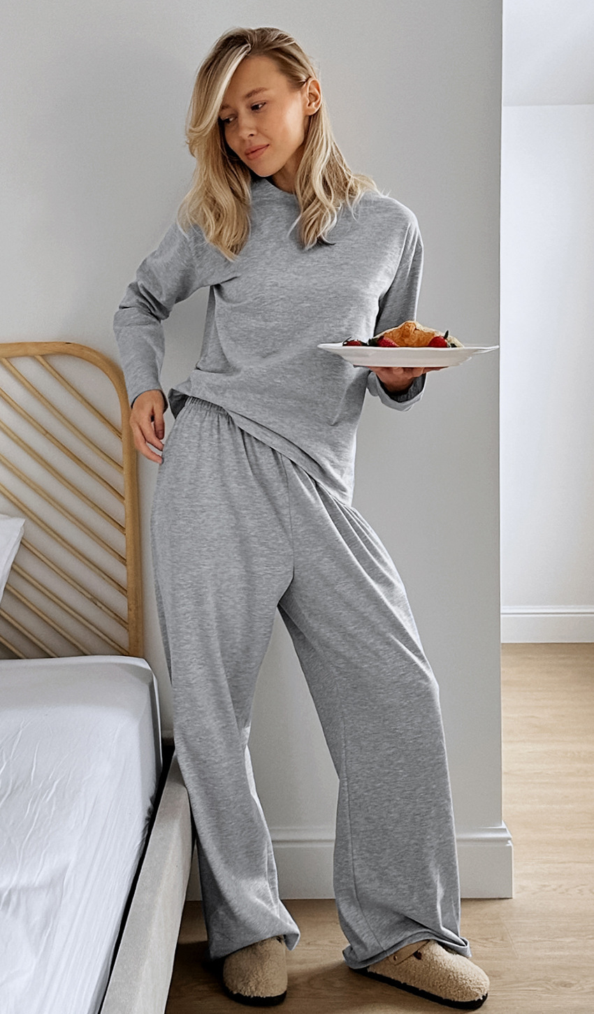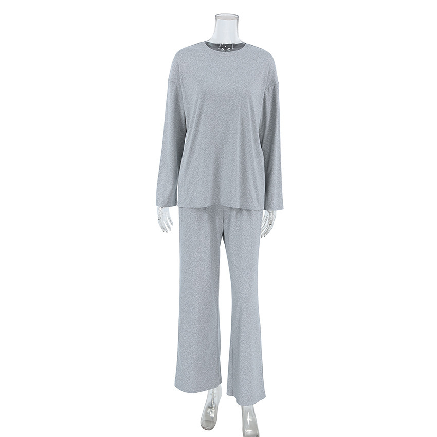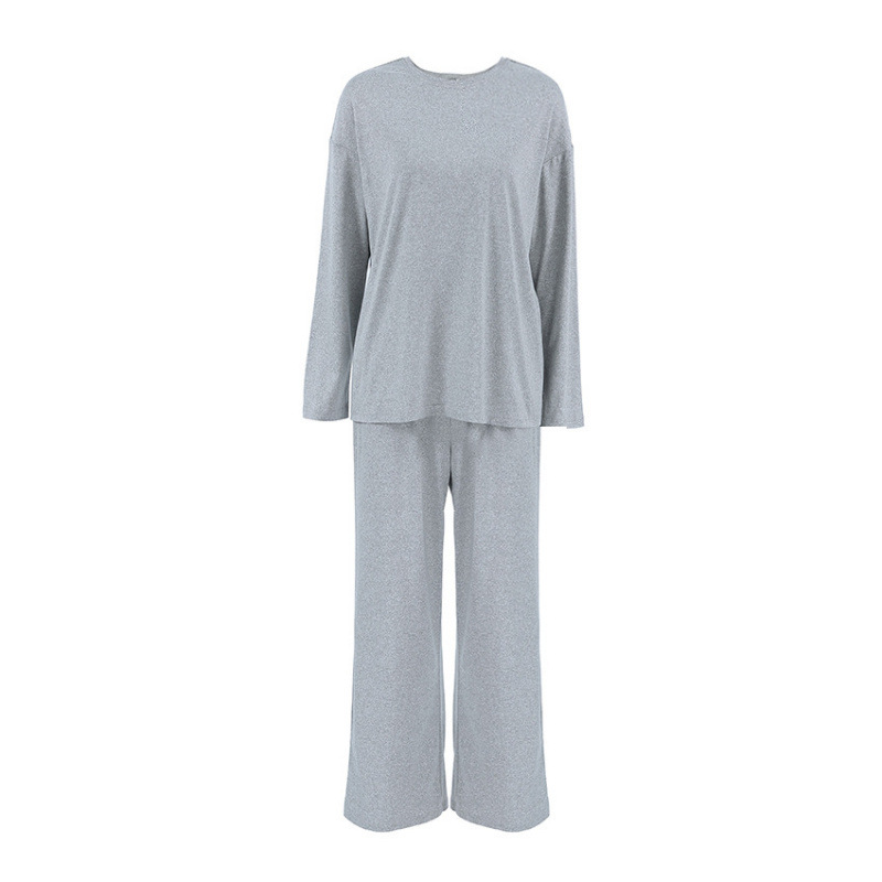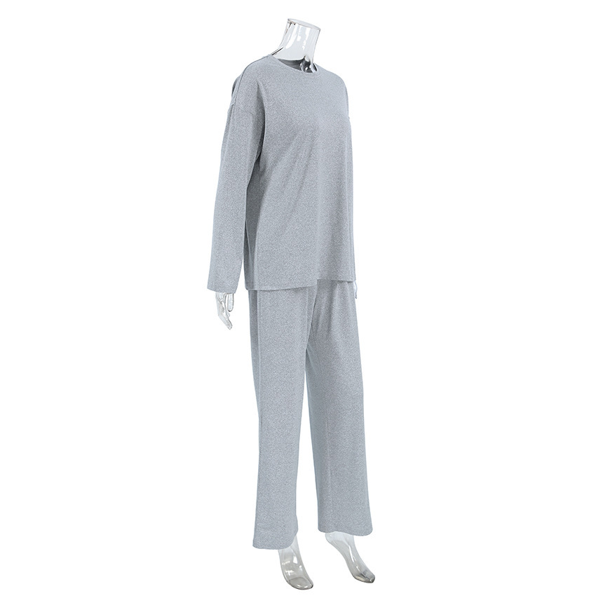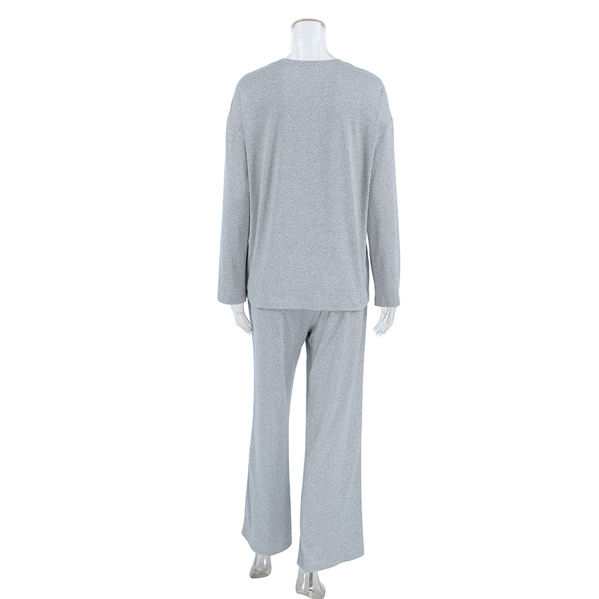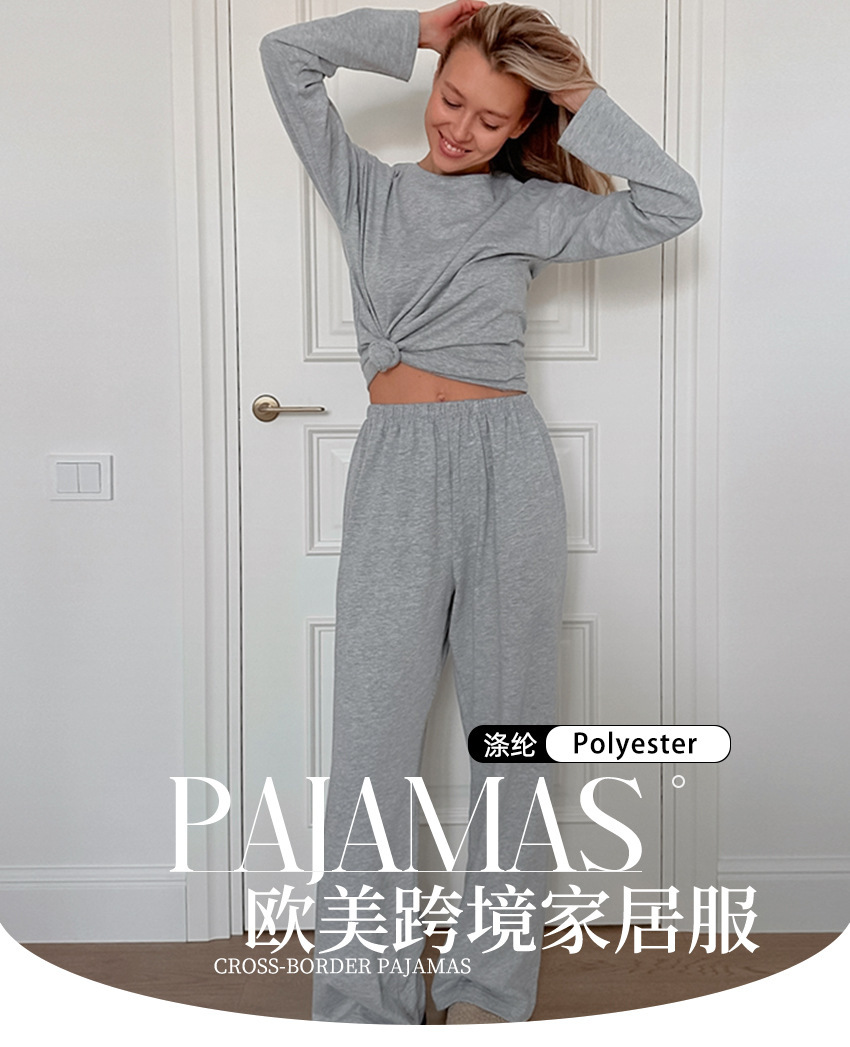 2025 유럽과 미국의 봄 새로운 스타일 편안한 캐주얼 라운드 넥 니트 홈웨어 긴팔 바지 루즈하고 밖에서 착용할 수 있는 잠옷