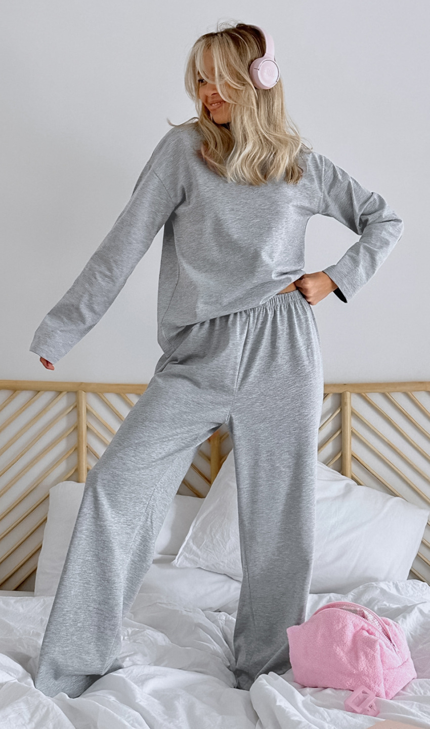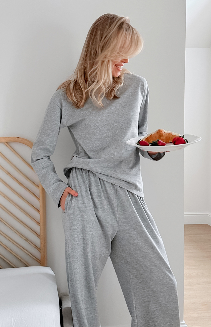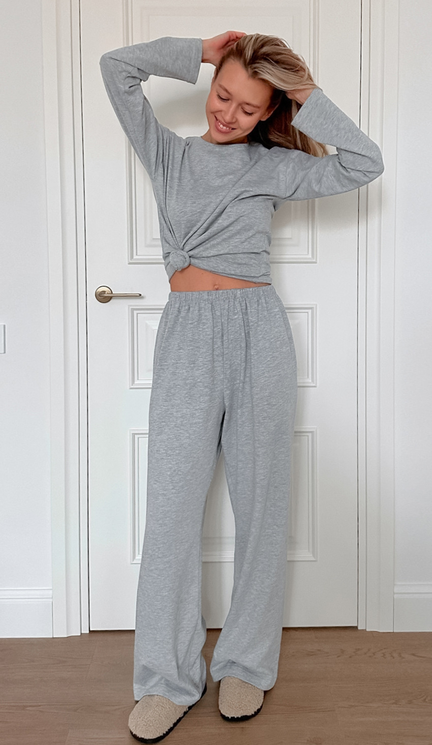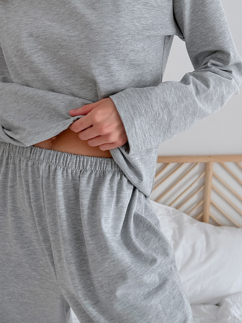 2025 유럽과 미국의 봄 새로운 스타일 편안한 캐주얼 라운드 넥 니트 홈웨어 긴팔 바지 루즈하고 밖에서 착용할 수 있는 잠옷