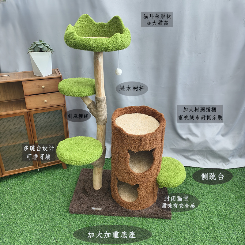 원목 고양이 클라이밍 프레임, 고양이 둥지, 고양이 트리, 일체형, 공간 절약형, 사이잘라 고양이 점프 플랫폼, 고양이 장난감, 나무 구멍 시리즈