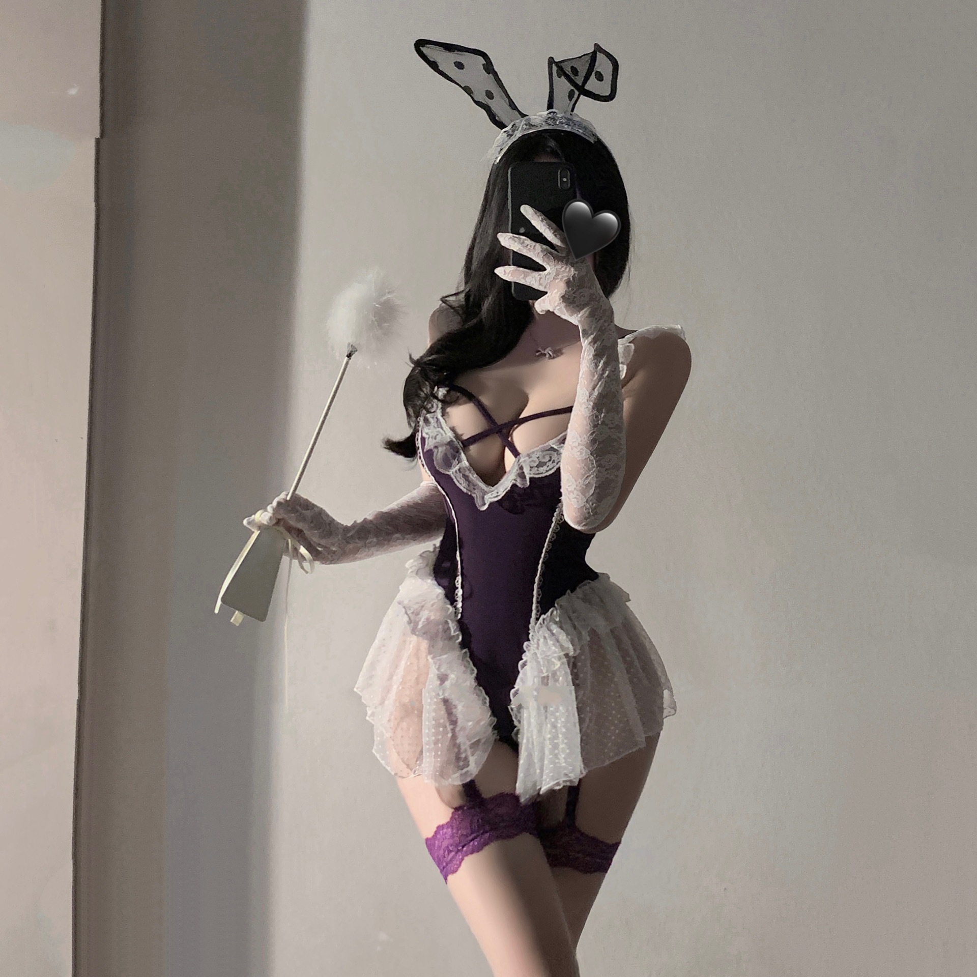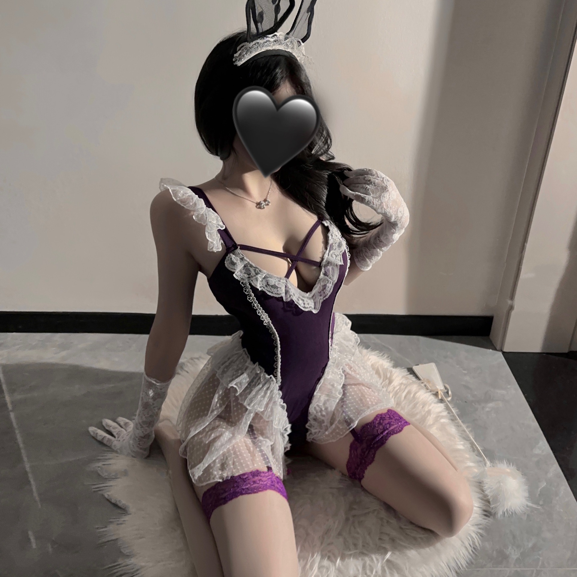 섹시 란제리 순수한 욕망 보라색 섹시한 원피스 스커트 프렌치 레이스 허리 잠옷 세트 탈착 불가 유니폼 유혹 24