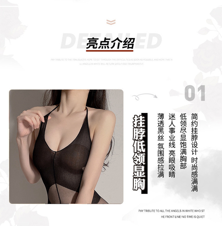 여성 섹시 잠옷, 섹시한 열정적인 속옷, 유니폼 세트, 작은 가슴을 유혹하고 푸쉬업하여 더 크게 보이게 하고 유방을 노출시키는 오픈 팬티 스타킹