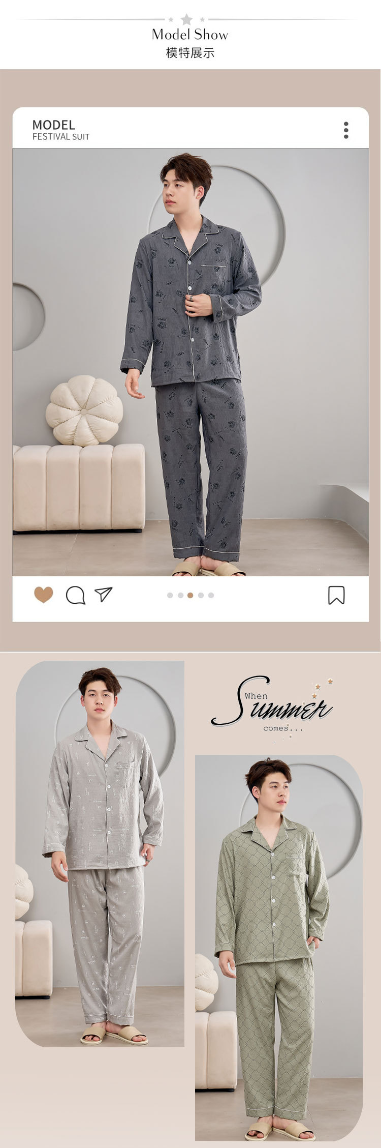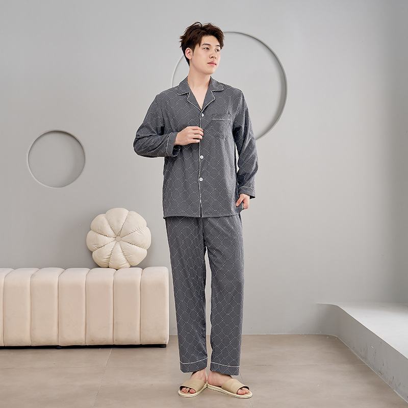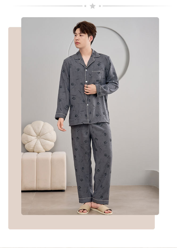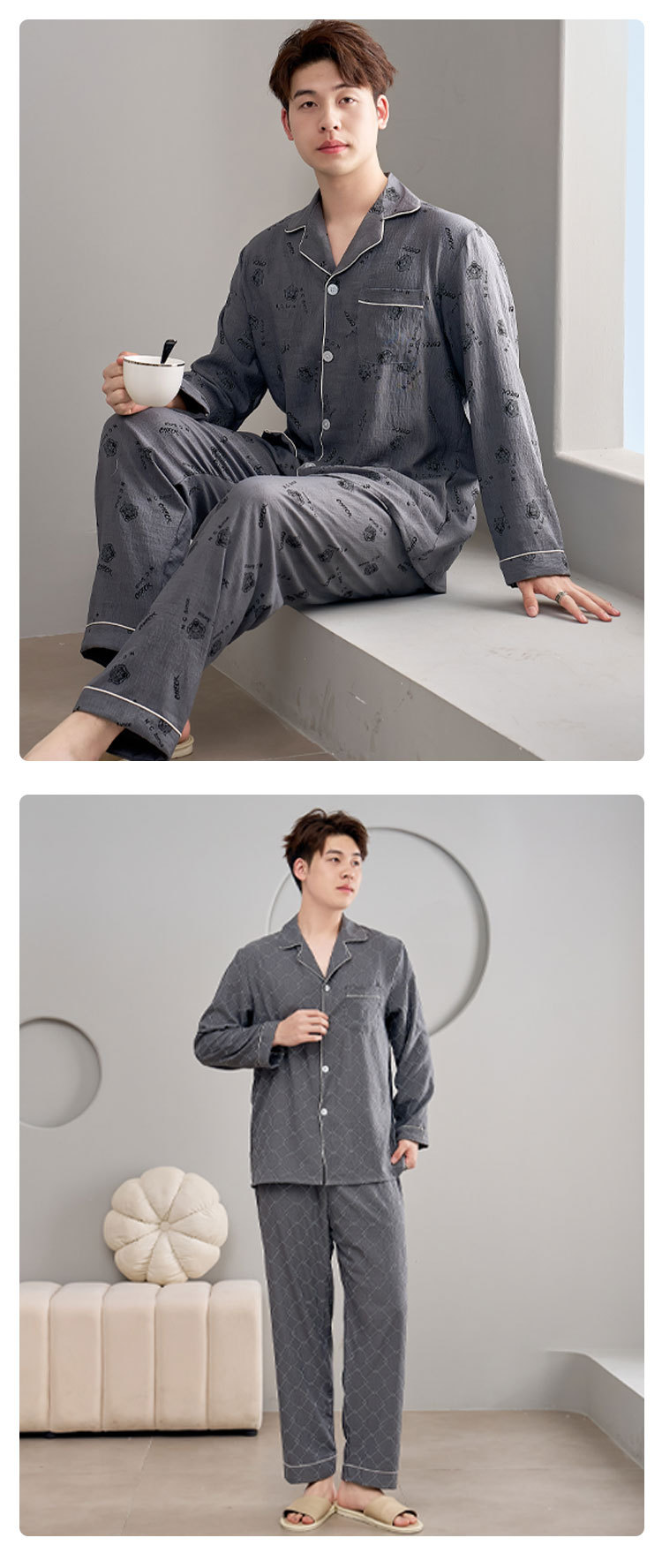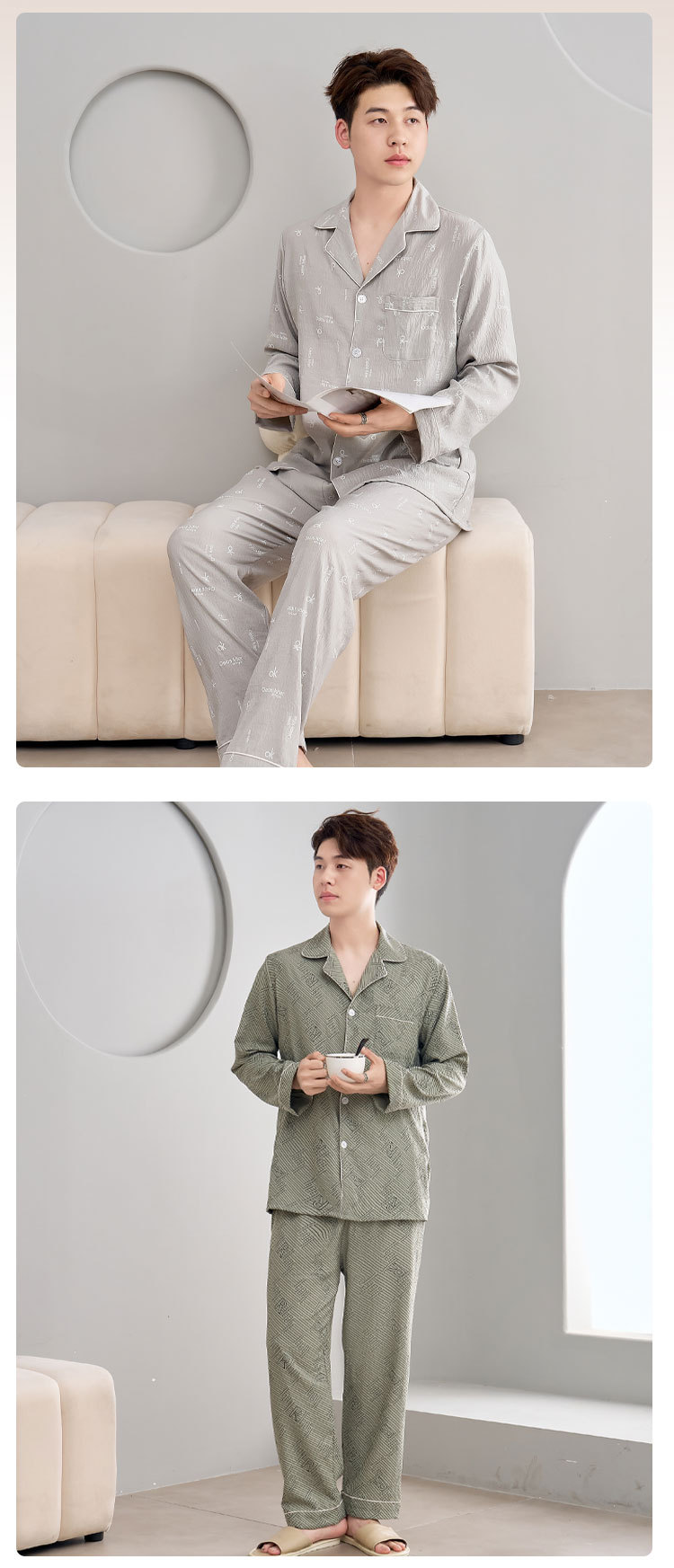 2026년 신상 클라우드 코튼 남성 잠옷 가디건 긴팔 긴바지 라펠 카라 대형 사이즈 캐주얼 홈웨어 외출복으로도 가능