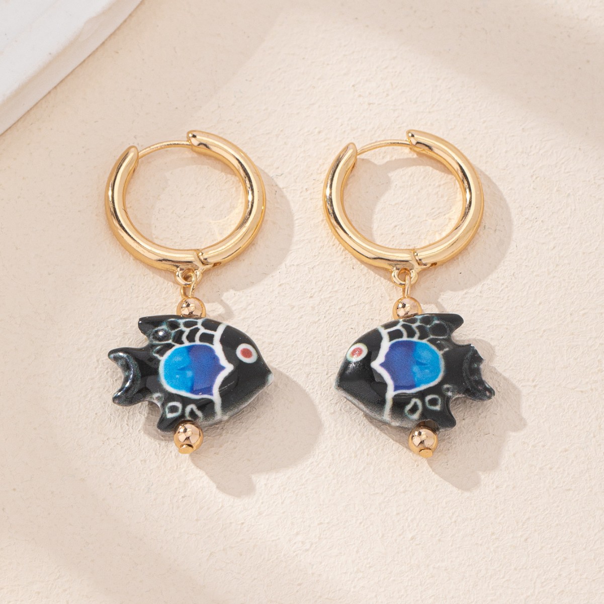 국경 간 뜨거운 판매 세라믹 손으로 그린 귀여운 색 물고기 귀 버클 휴일 스타일 맞춤형 청도 대외 무역 보석 귀걸이