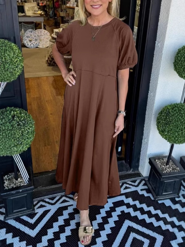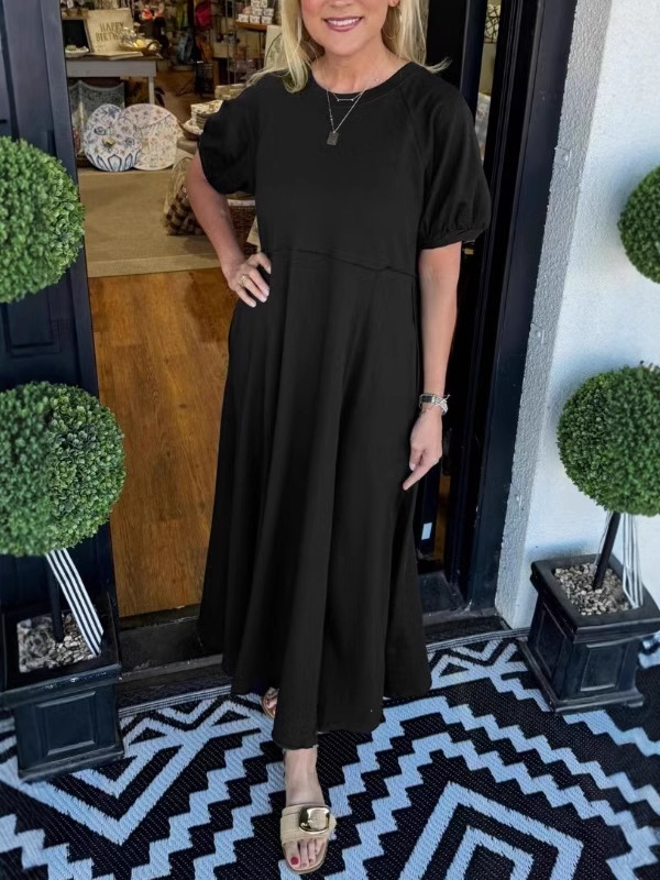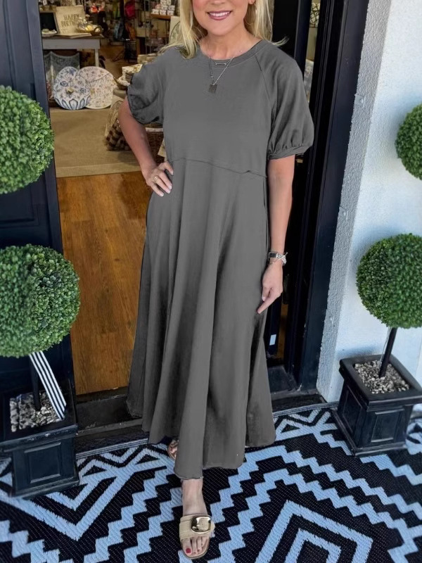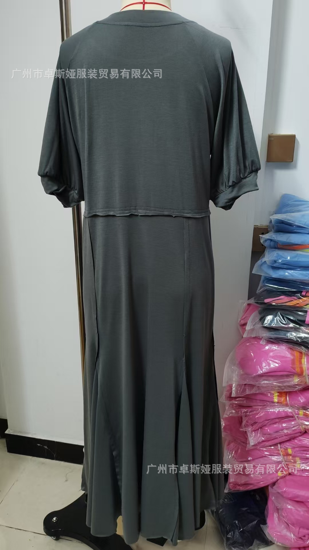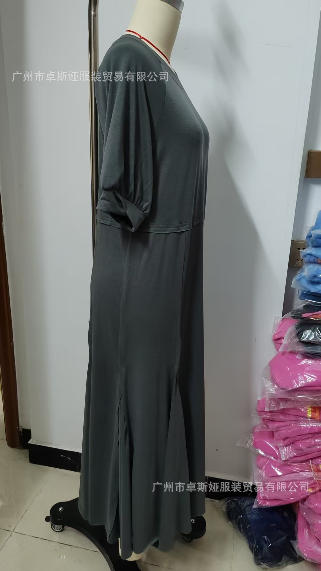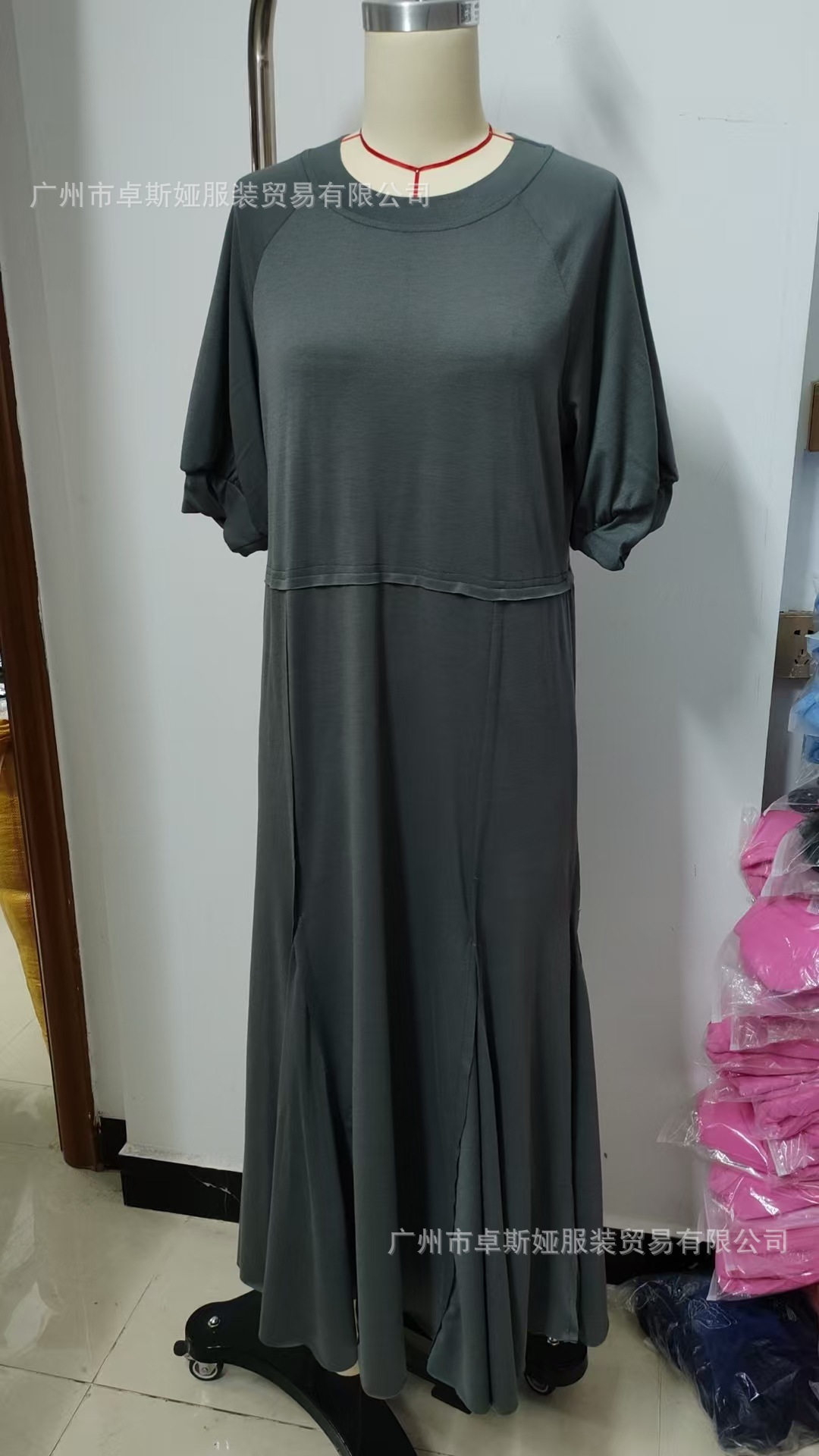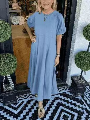 2025 새로운 유럽과 미국의 의류 국경 대외 무역 아마존 여성 폭발성 니트 반팔 대형 진자 원피스