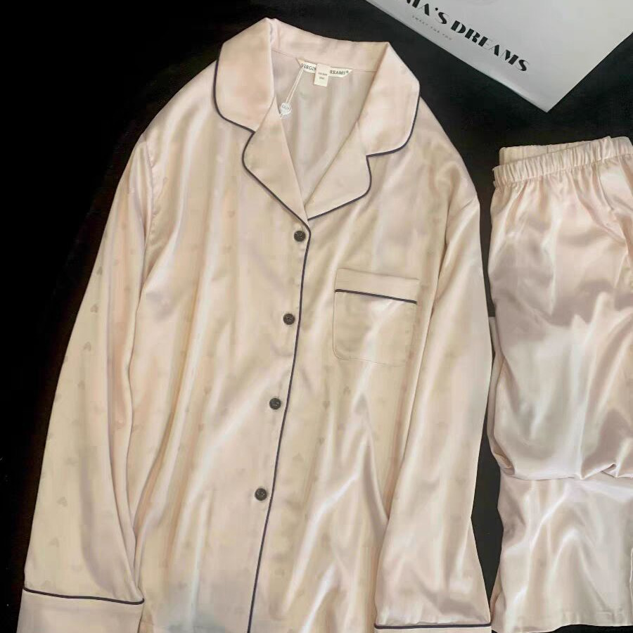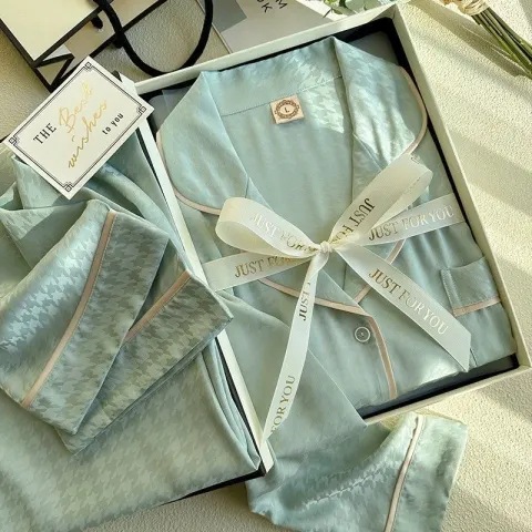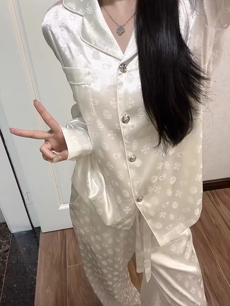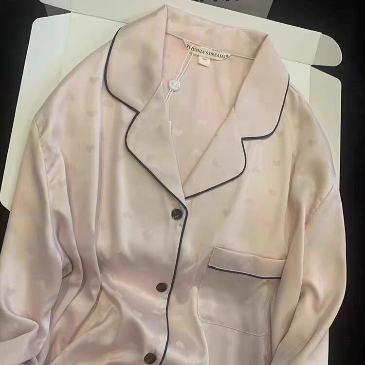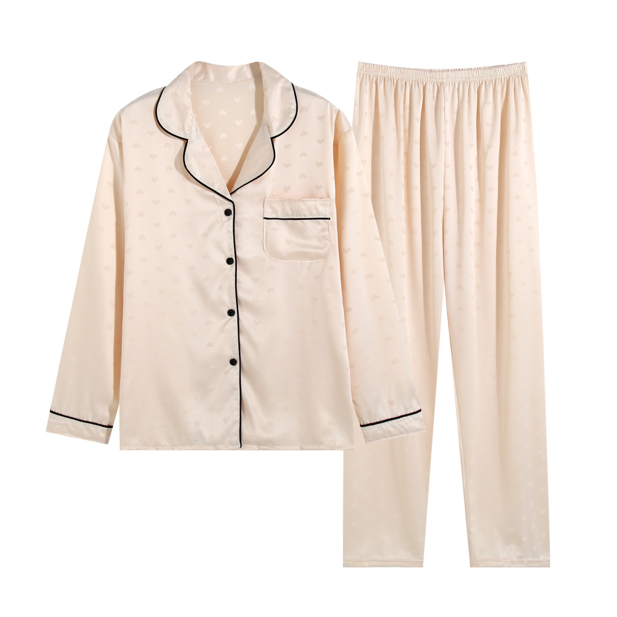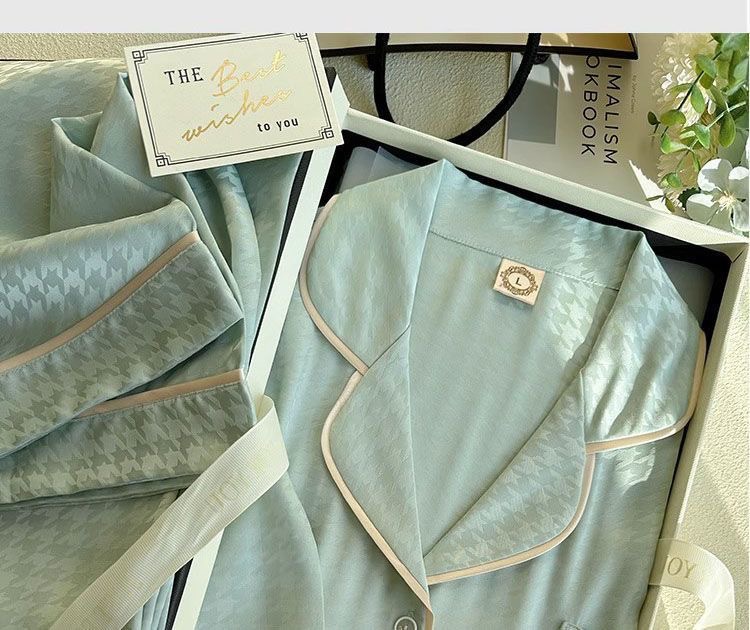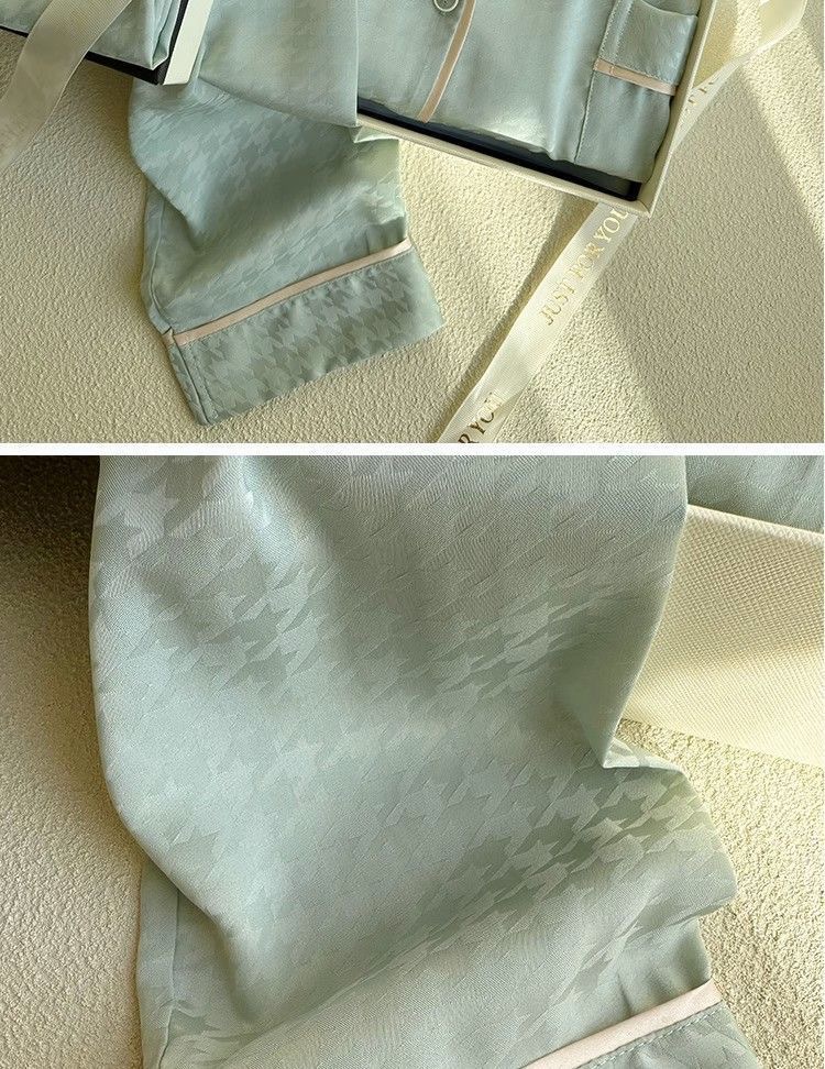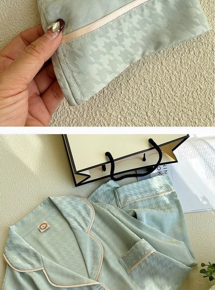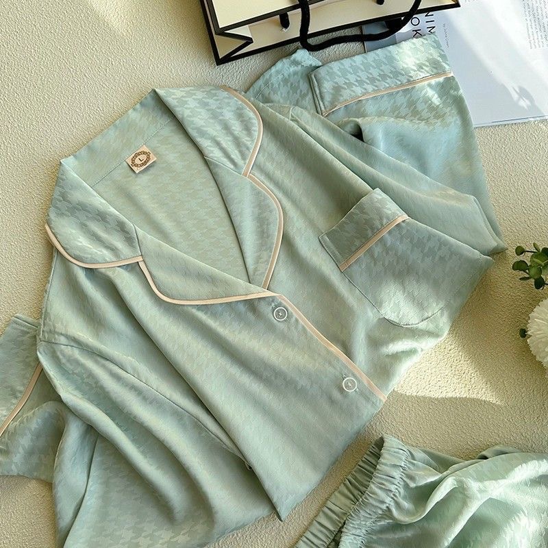 여성용 하이 엔드 봄, 여름 자카드 모조 실크 잠옷 카디건 긴팔 바지 라이트 럭셔리 스타일 홈웨어 세트