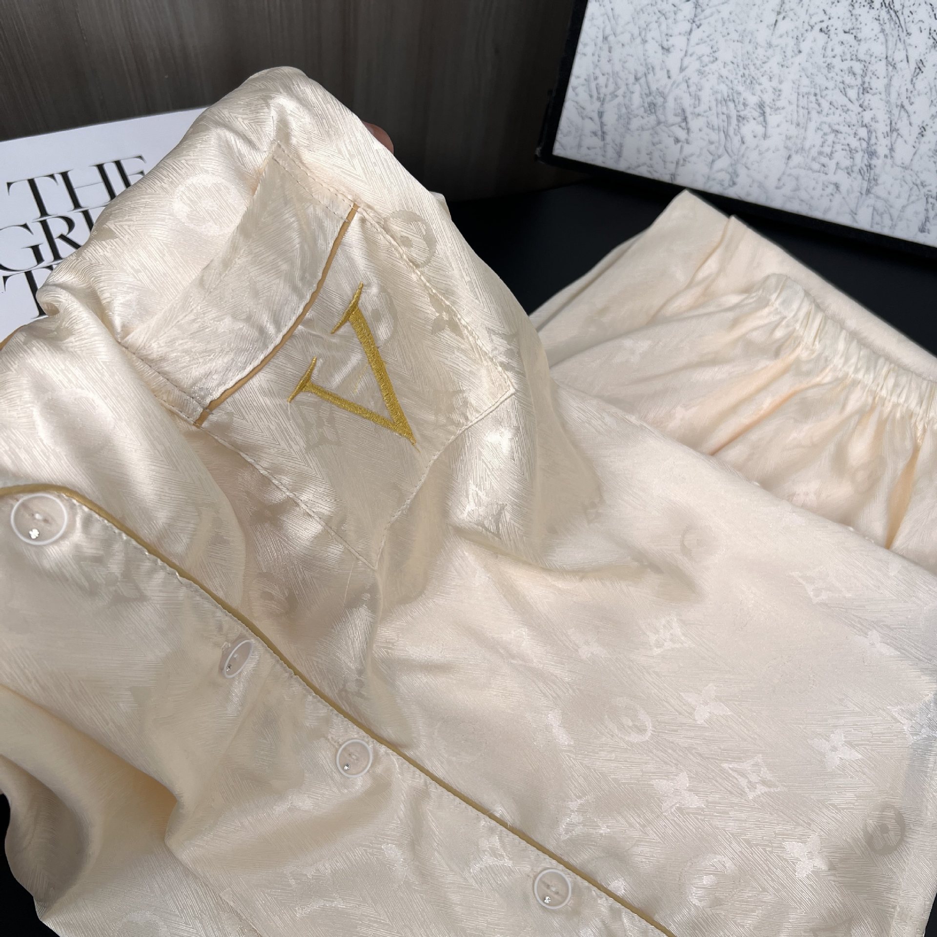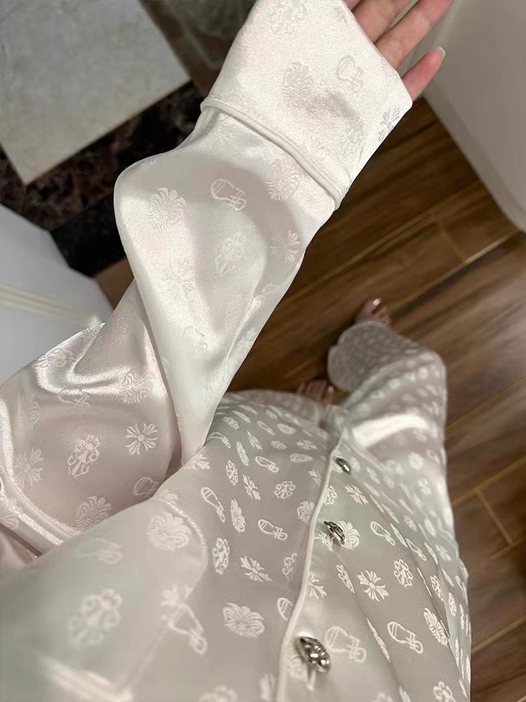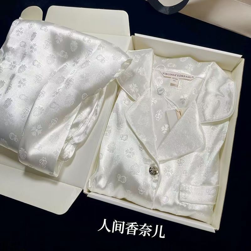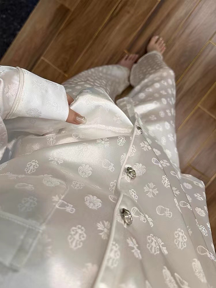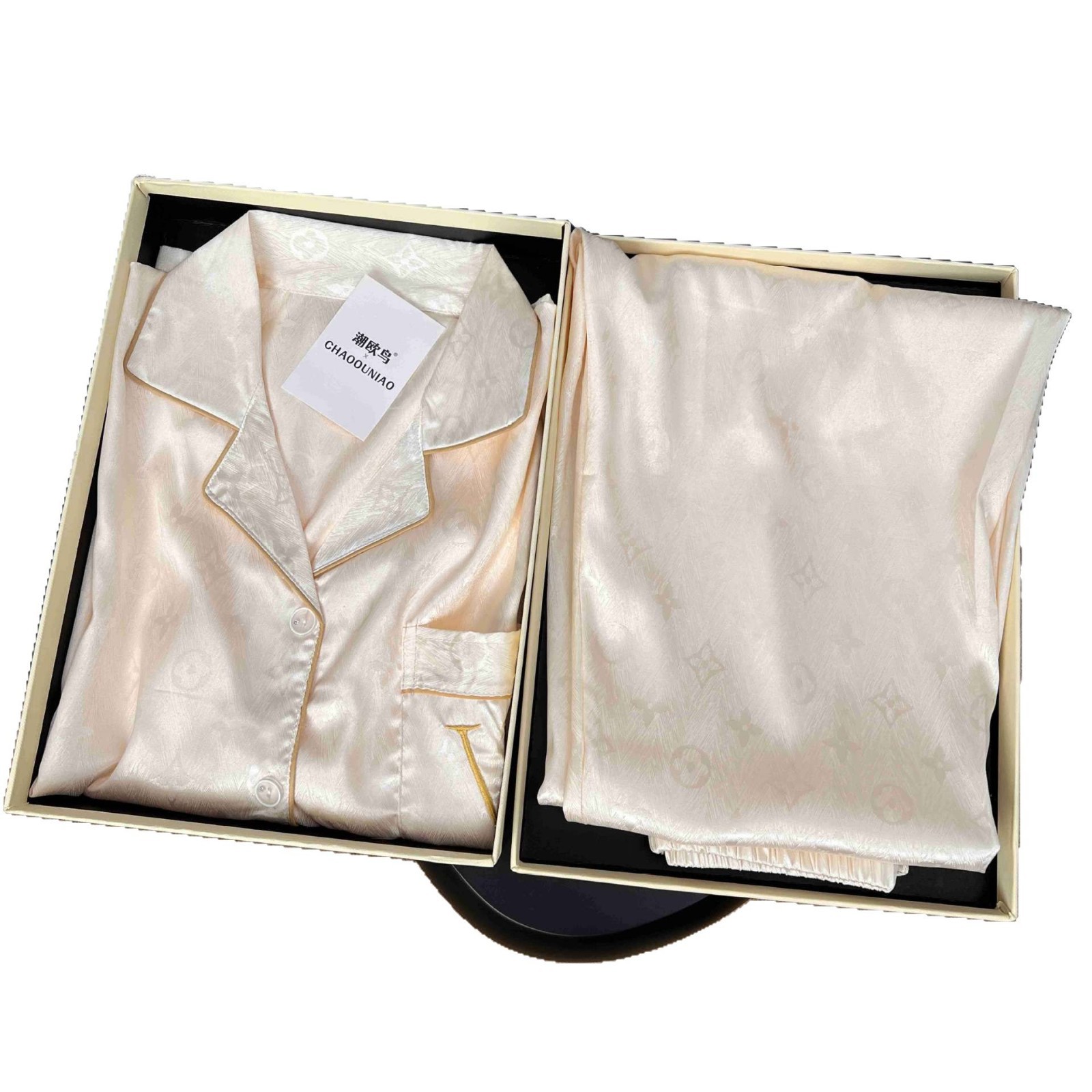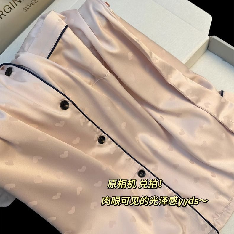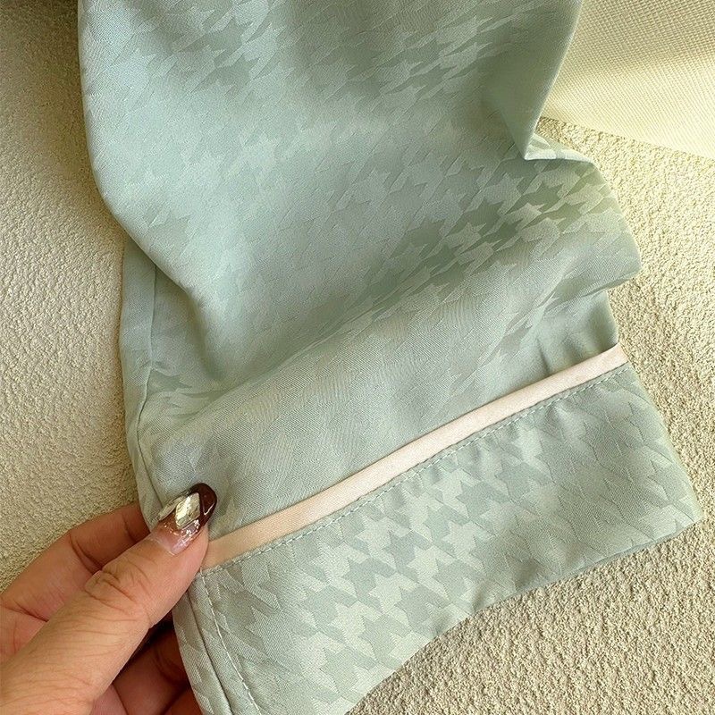 여성용 하이 엔드 봄, 여름 자카드 모조 실크 잠옷 카디건 긴팔 바지 라이트 럭셔리 스타일 홈웨어 세트
