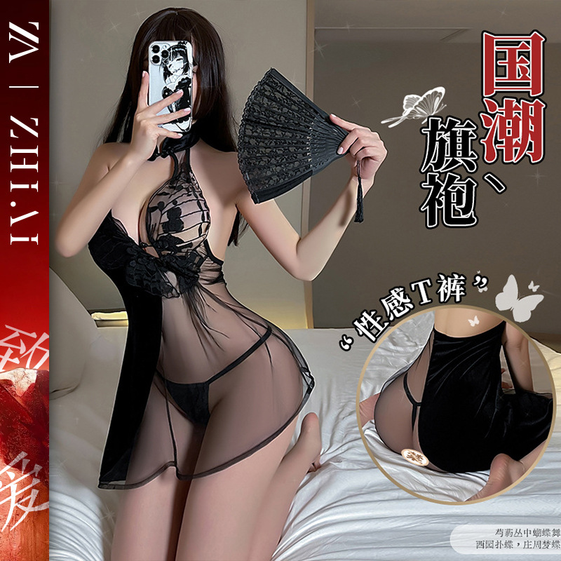 섹시한 속옷, 섹시한 새로운 중국 스타일 치파오, 중국 스타일 벨벳 잠옷, 열정적인 탈착 불가 시스루 의상, 재미있는 유혹 유니폼