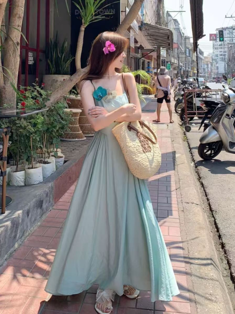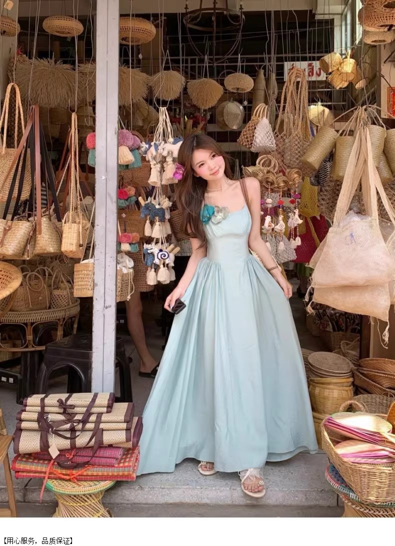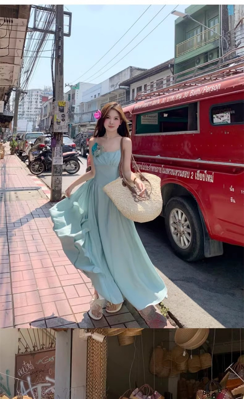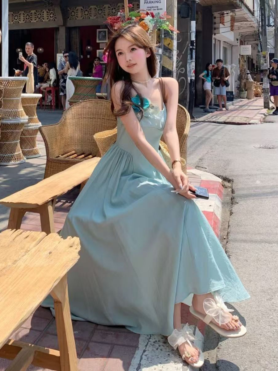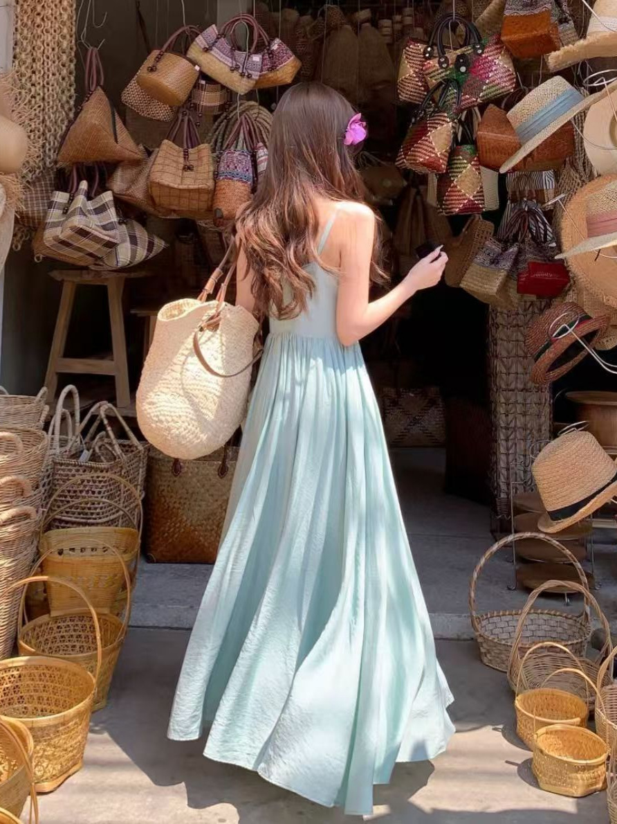 프렌치 블루 슬링 원피스 여성 여름 하이 엔드 슈퍼 잘 생긴 발라 민 아름다운 해변 해변 원피스