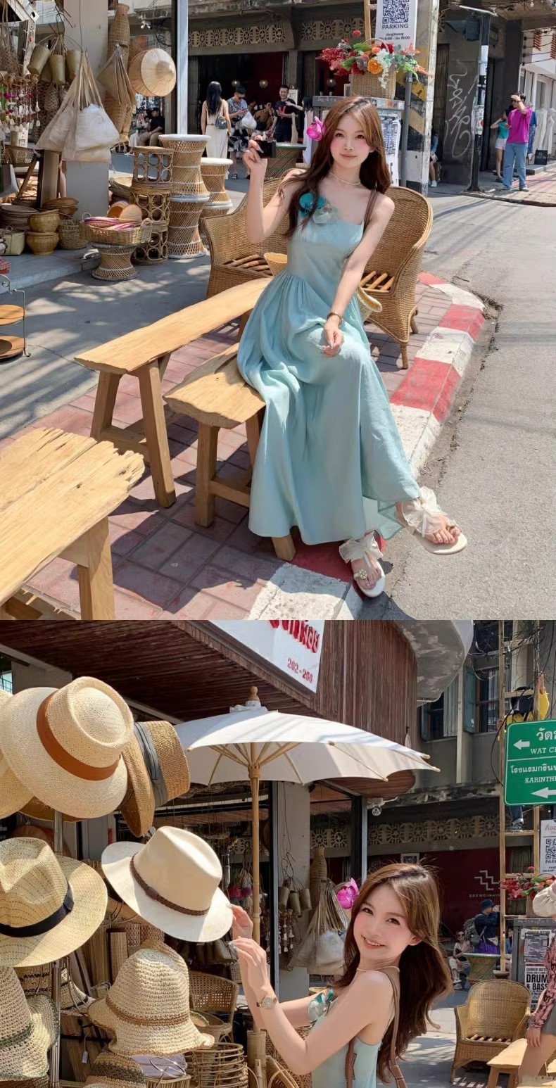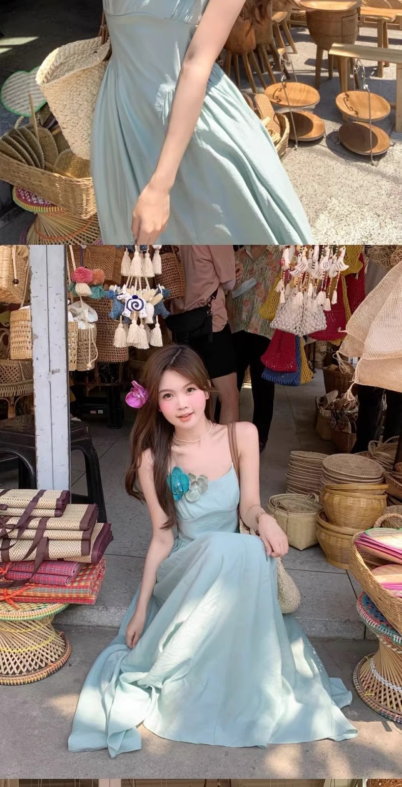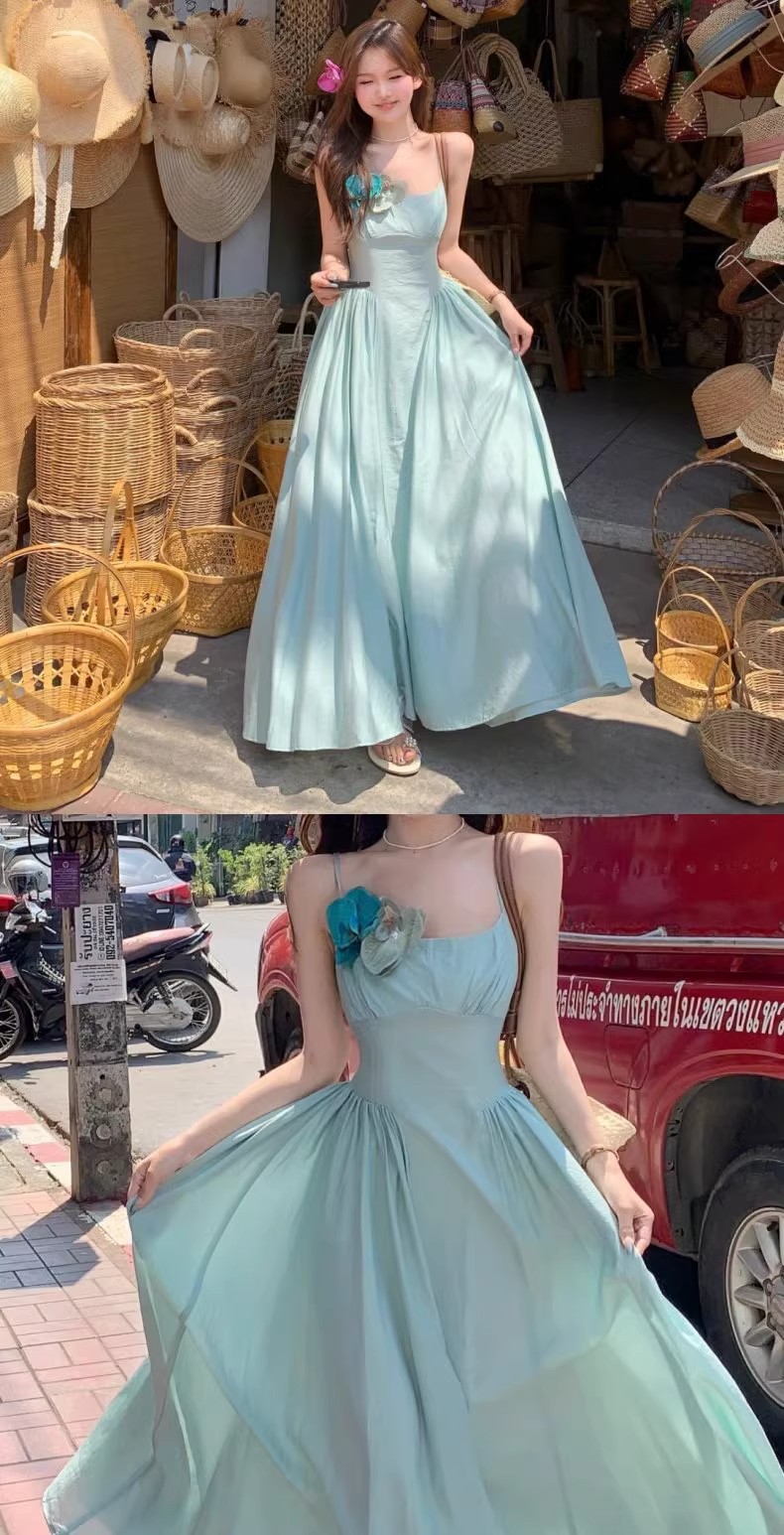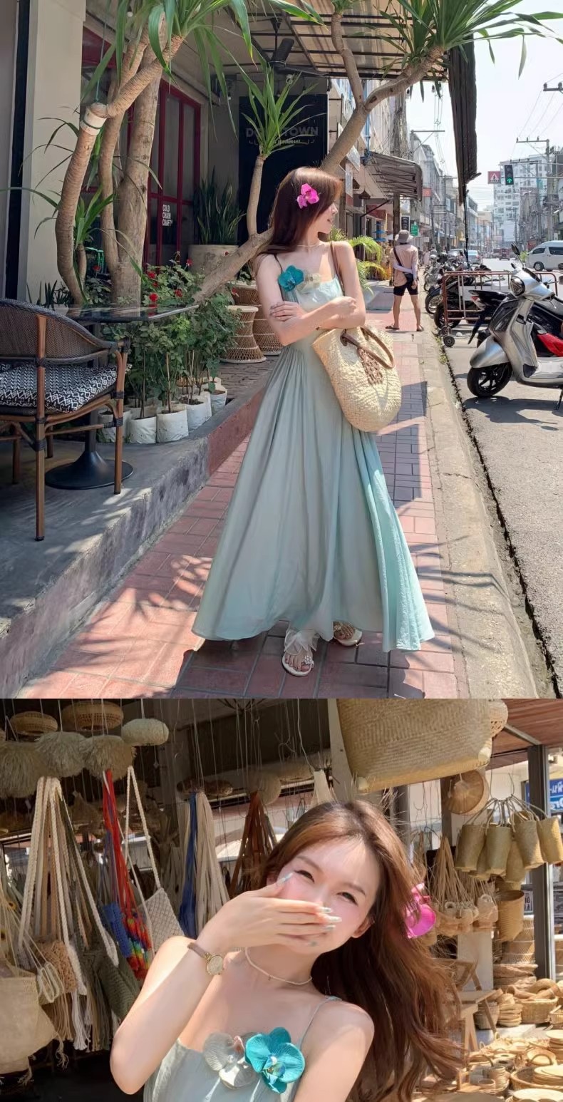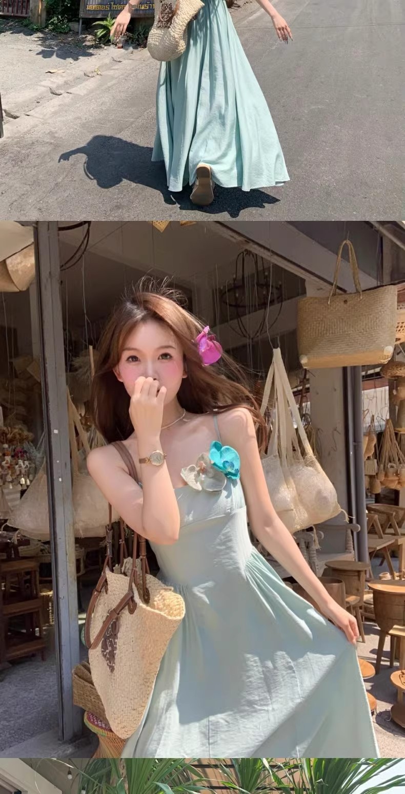 프렌치 블루 슬링 원피스 여성 여름 하이 엔드 슈퍼 잘 생긴 발라 민 아름다운 해변 해변 원피스
