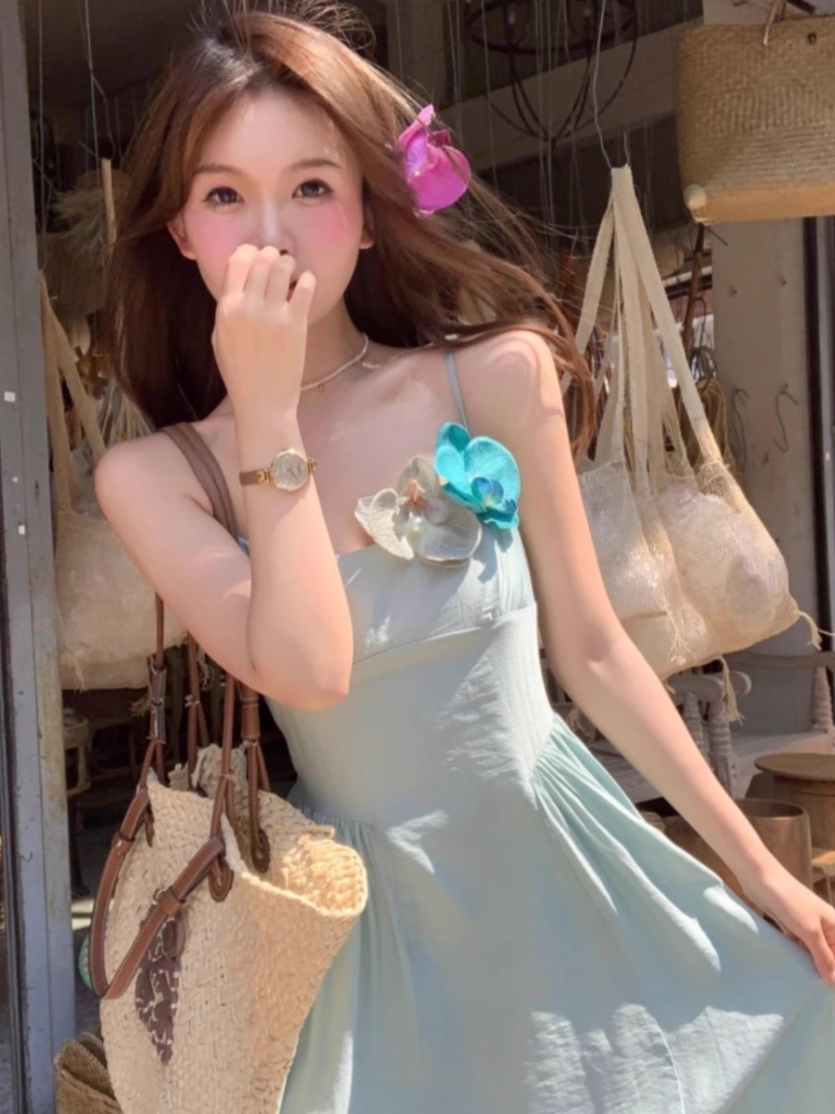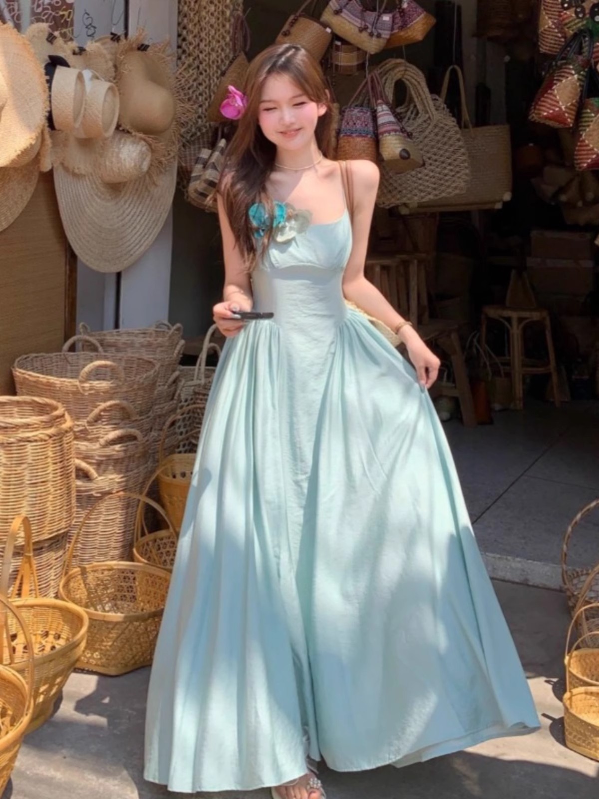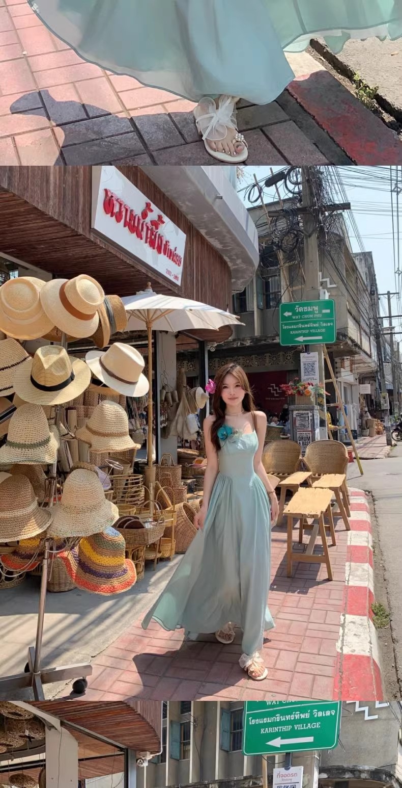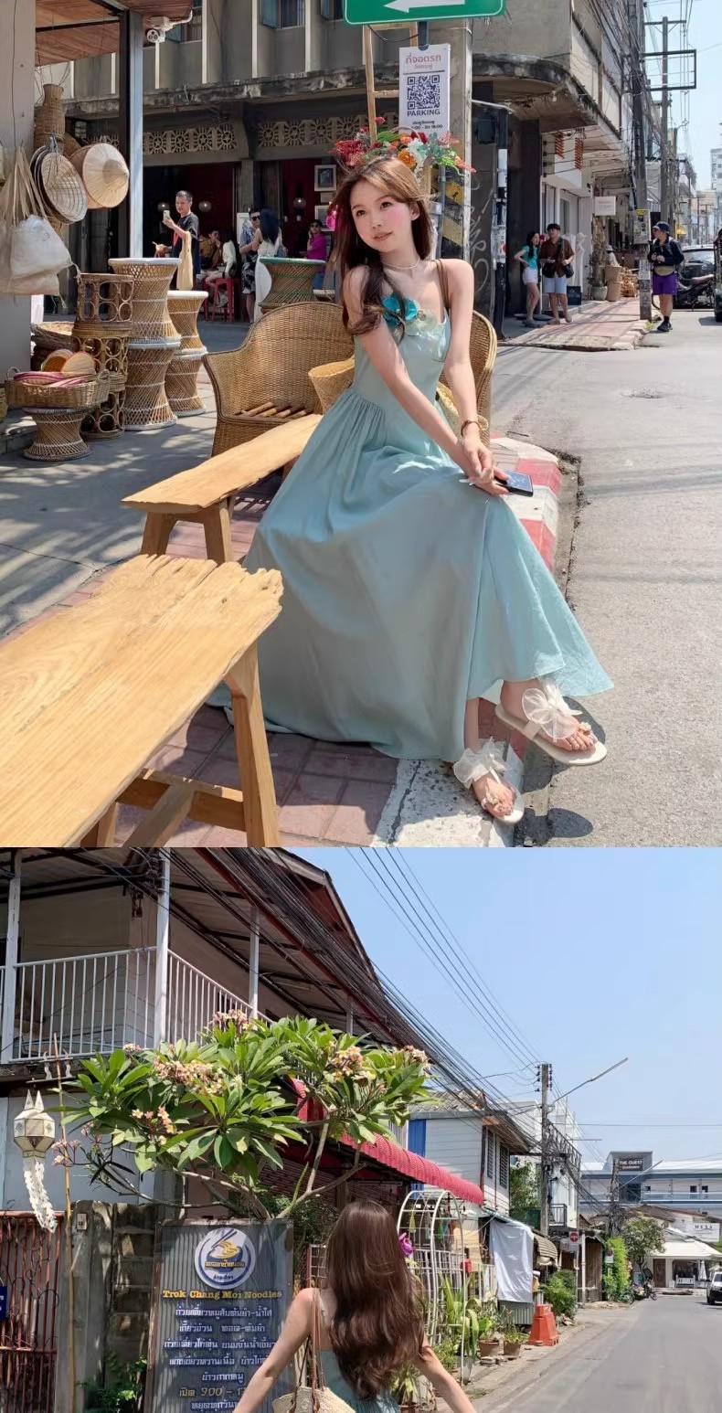 프렌치 블루 슬링 원피스 여성 여름 하이 엔드 슈퍼 잘 생긴 발라 민 아름다운 해변 해변 원피스