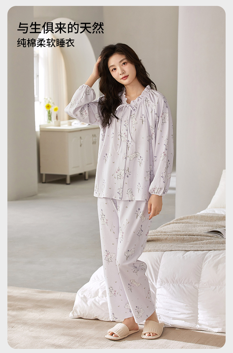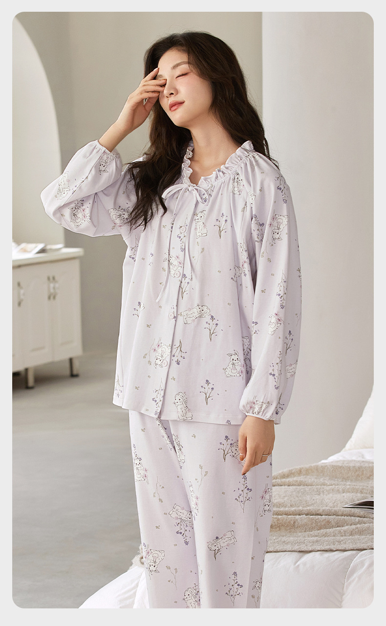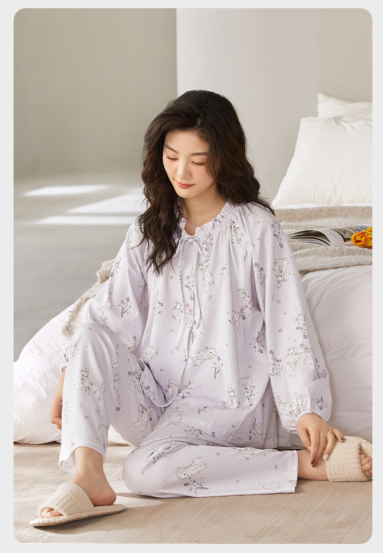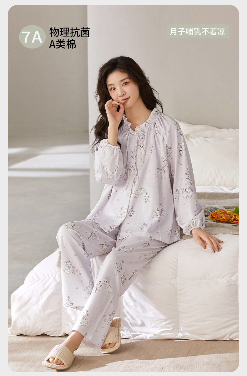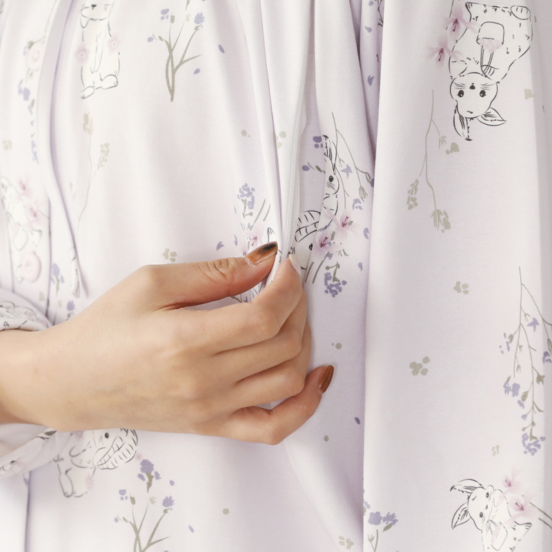 새로운 봄, 여름 순면 감금 의류 클래스 A 항균 출산 지퍼 수유 의류 간호 잠옷 세트 얇은 섹션