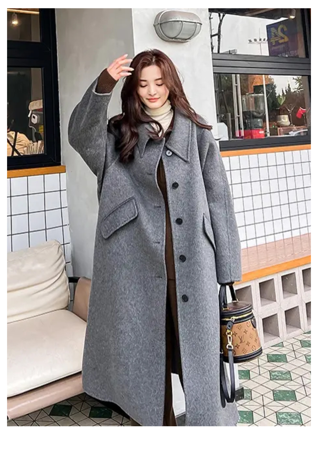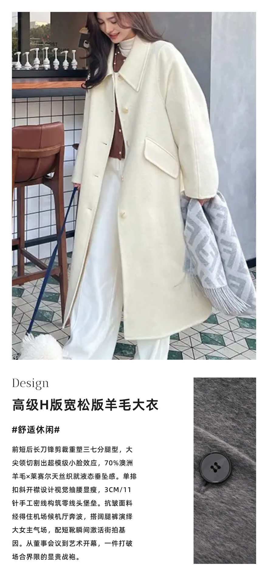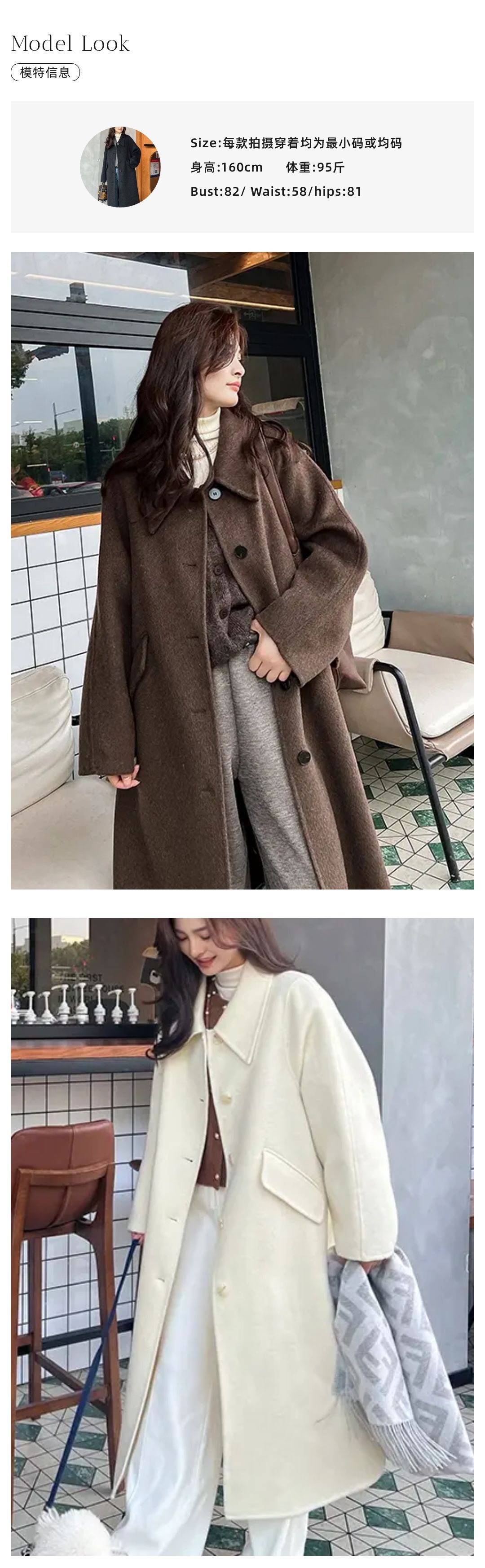 양면 울 수제 한국 스타일 코트, 캐주얼하고 여유로운 루즈핏, 봄, 가을, 겨울용 중간 길이, 다용도, 편안하고 세련된 디자인