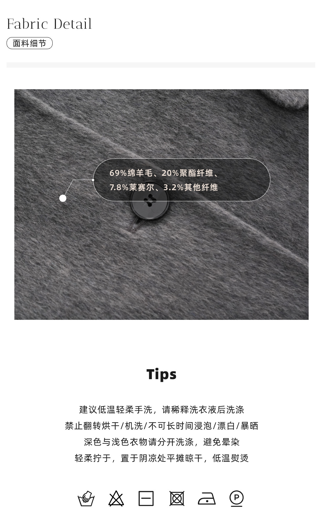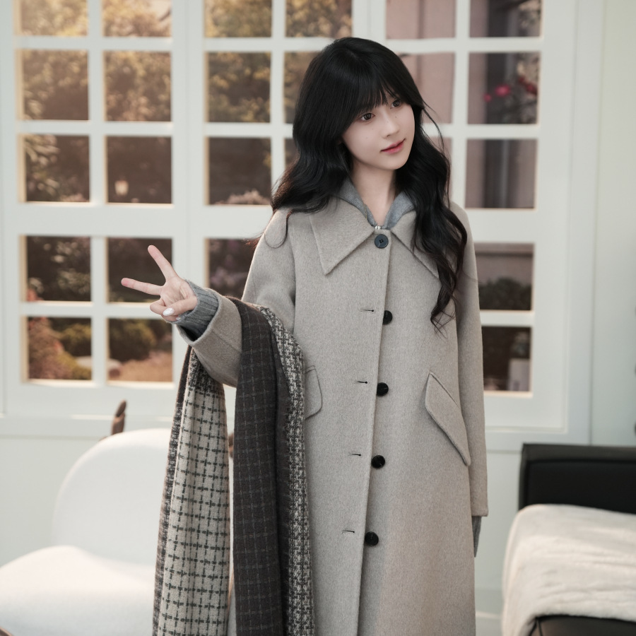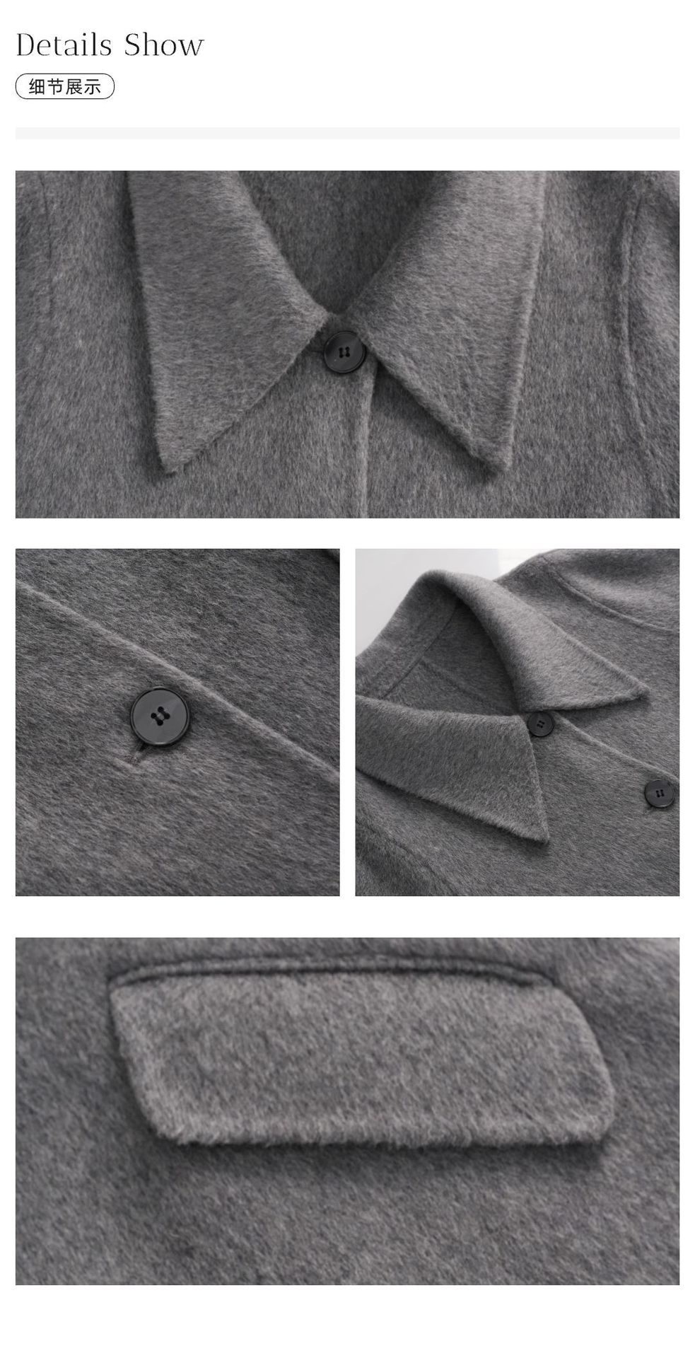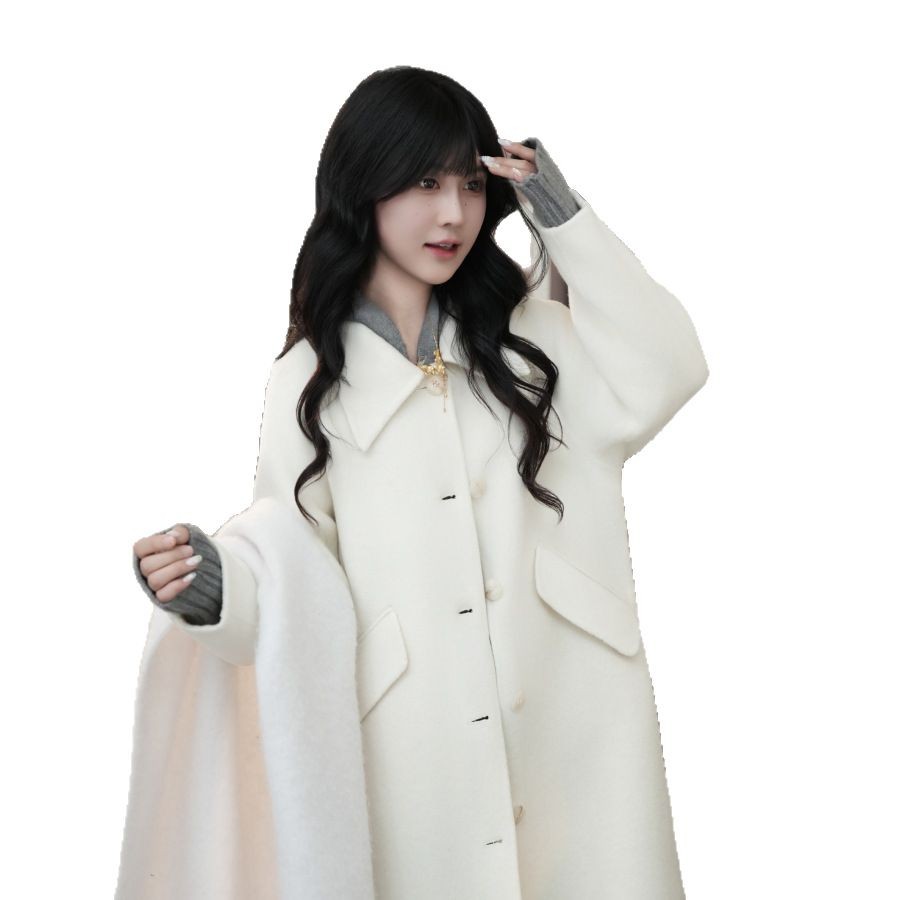 양면 울 수제 한국 스타일 코트, 캐주얼하고 여유로운 루즈핏, 봄, 가을, 겨울용 중간 길이, 다용도, 편안하고 세련된 디자인