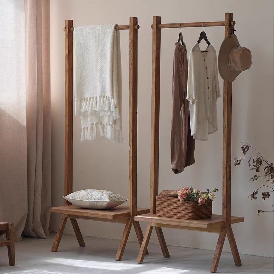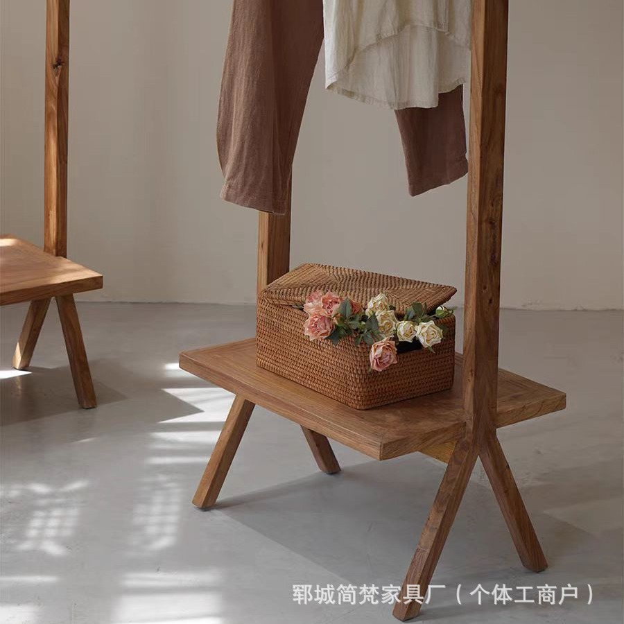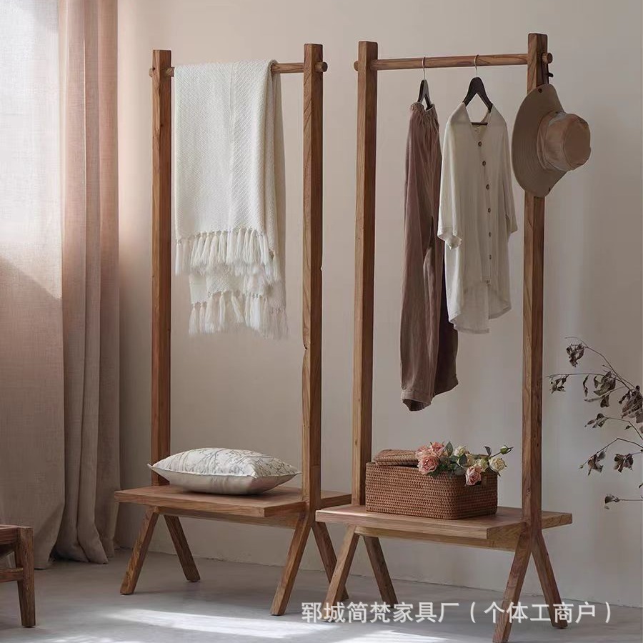 가정용 원목 옷걸이, 발코니 건조대, 옷걸이 봉, 오래된 느릅나무 바닥형 수납 선반, 코트 및 배낭 걸이